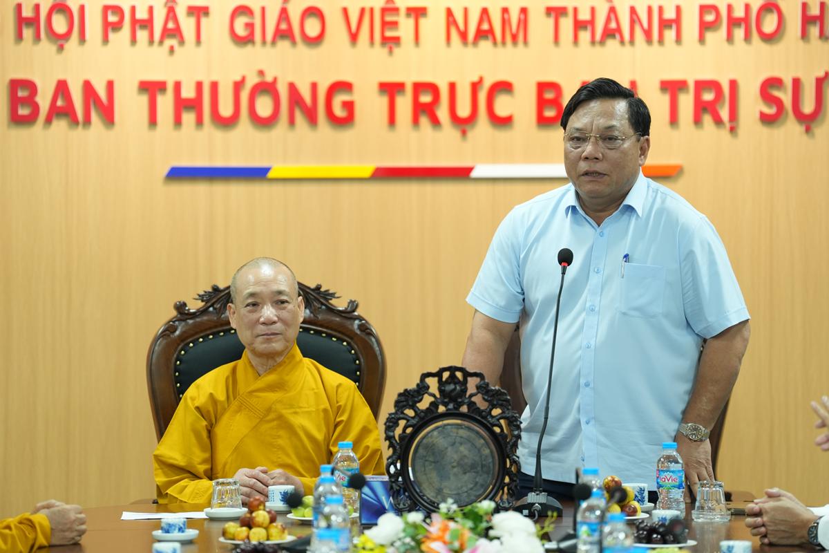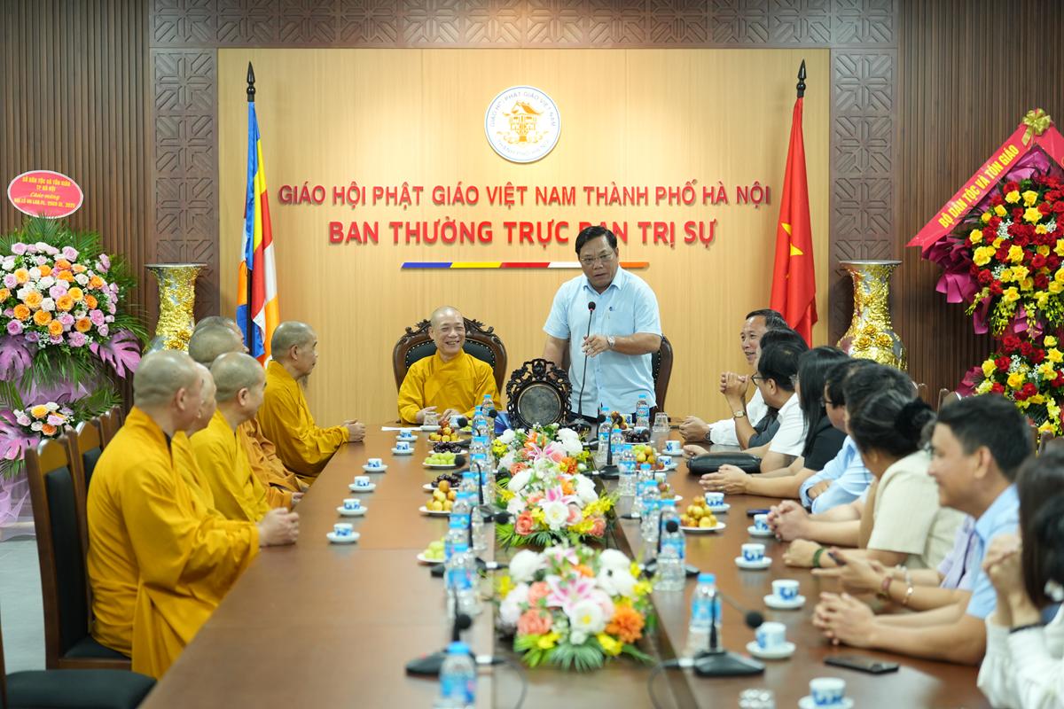 Thay mặt Ban Trị sự, Hòa thượng Thích Bảo Nghiêm bày tỏ lòng tri ân trước sự quan tâm của lãnh đạo Bộ Dân tộc và Tôn giáo, cũng như Ban Tôn giáo Chính phủ và các cơ quan ban ngành đã luôn đồng hành, hỗ trợ, tạo điều kiện cho các hoạt động Phật sự của Thủ đô thành tựu viên mãn. Dịp này, Hòa thượng cũng chia sẻ về kết quả các công tác Phật sự trọng điểm thời gian qua – minh chứng cho sự gắn bó mật thiết giữa đạo pháp và dân tộc.