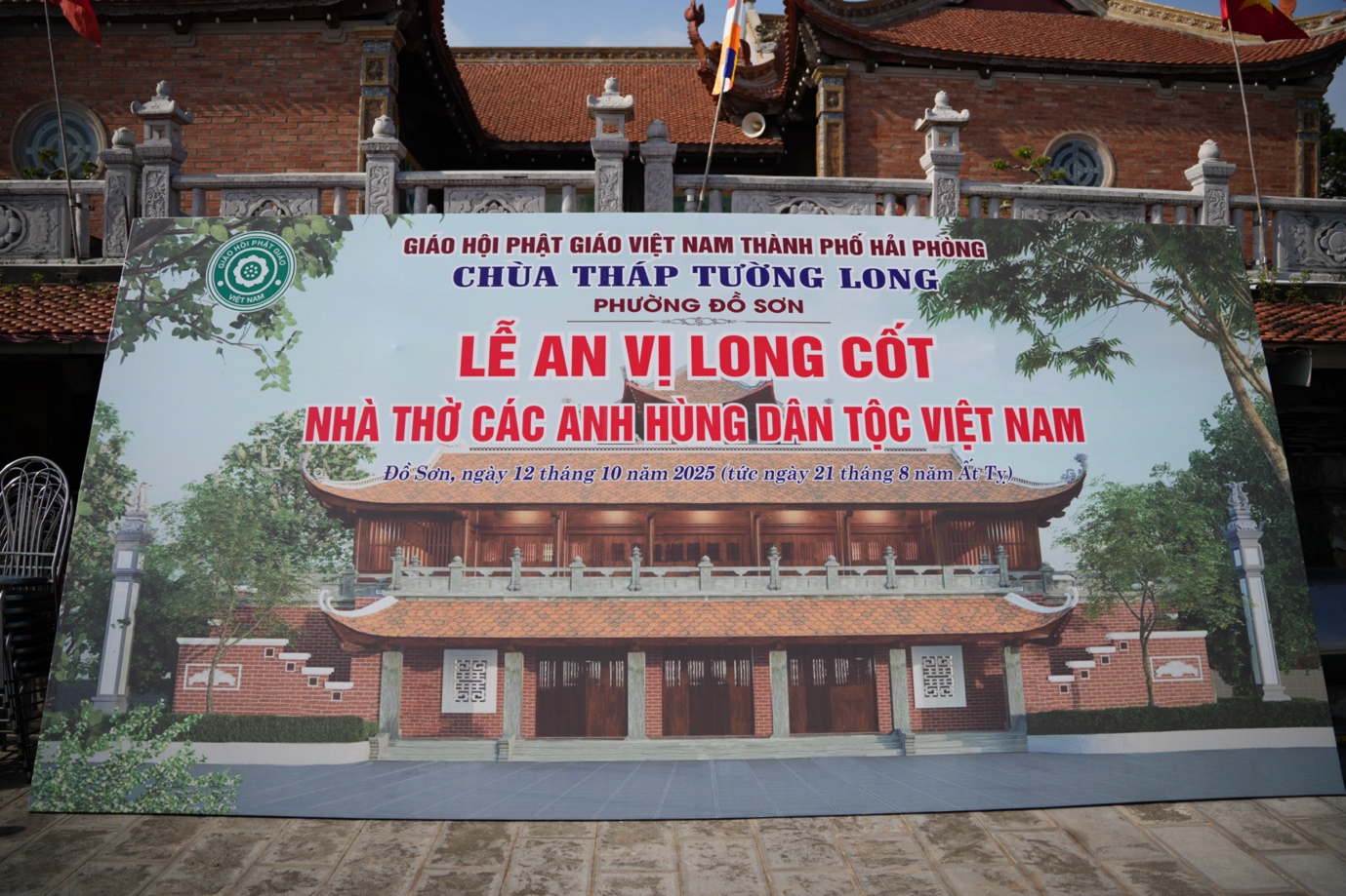 Sáng ngày 12/10/2025 (nhằm 21/08 năm Ất Tỵ), tại chùa Tháp Tường Long, phường Đồ Sơn, TP. Hải Phòng trang nghiêm diễn ra lễ An vị Long Cốt (cất nóc) nhà thờ các Anh hùng dân tộc Việt Nam sau 3 tháng khởi công.