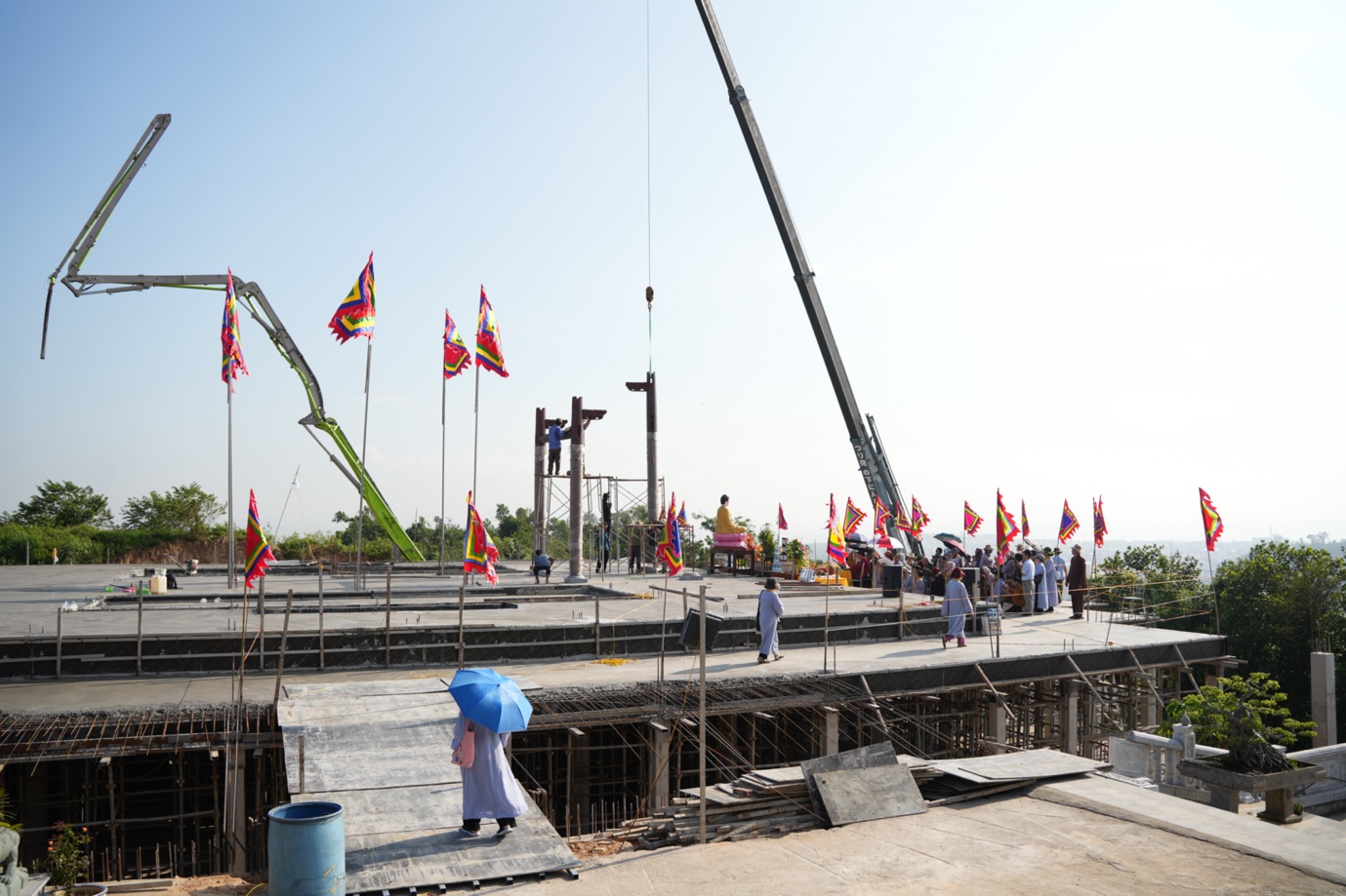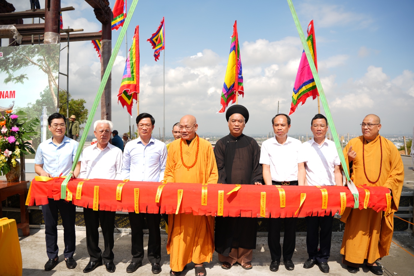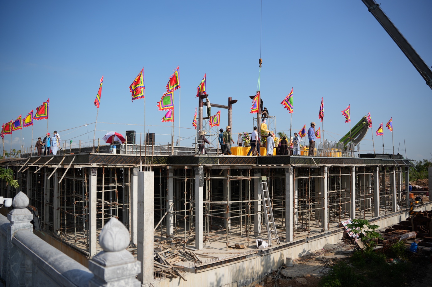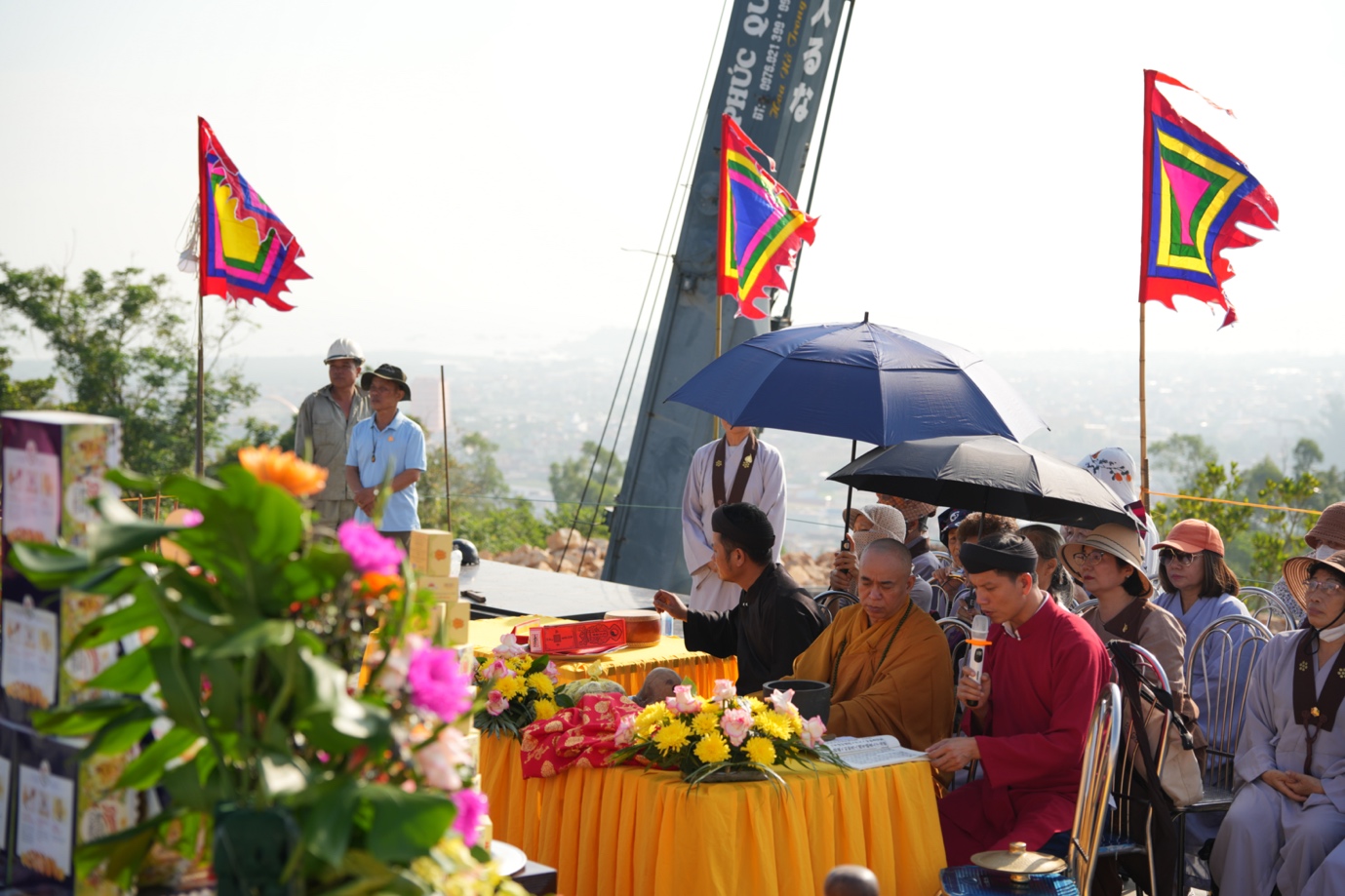 Trong không khí thiêng liêng và đầy đạo vị, chư Tôn đức Tăng Ni đã cùng quý đại biểu, nhân dân, Phật tử cử hành nghi thức niêm hương, bạch Phật, chú nguyện, chính thức an vị Long cốt (cất nóc), đánh dấu bước tiến quan trọng trong tiến trình kiến tạo ngôi đền tâm linh tiêu biểu tại miền biển Đông Bắc.