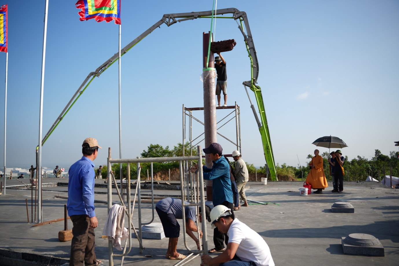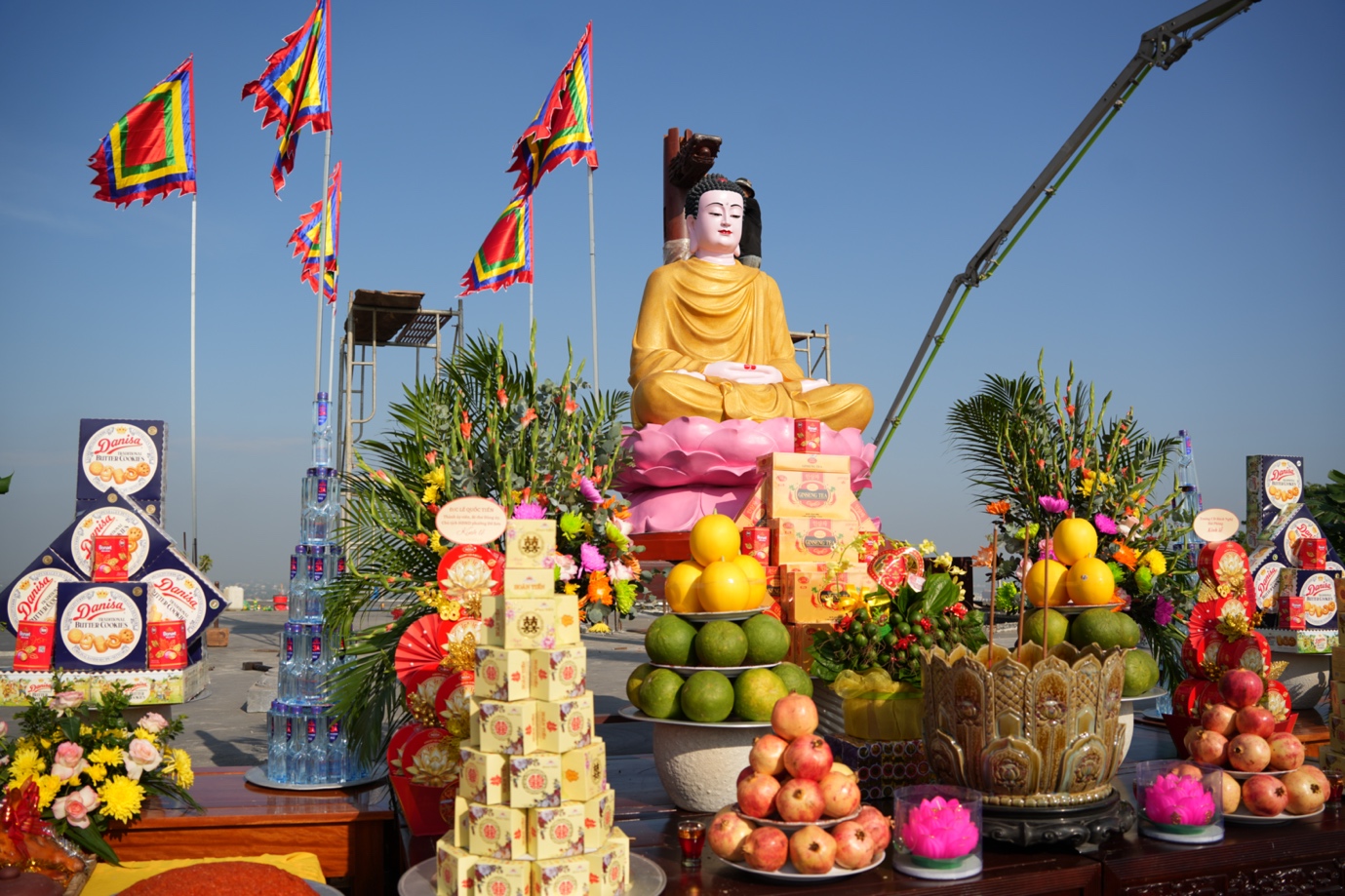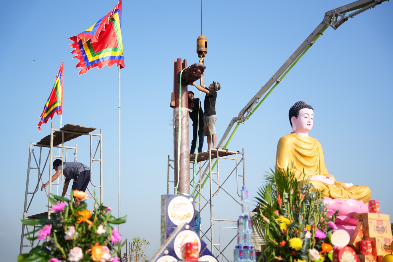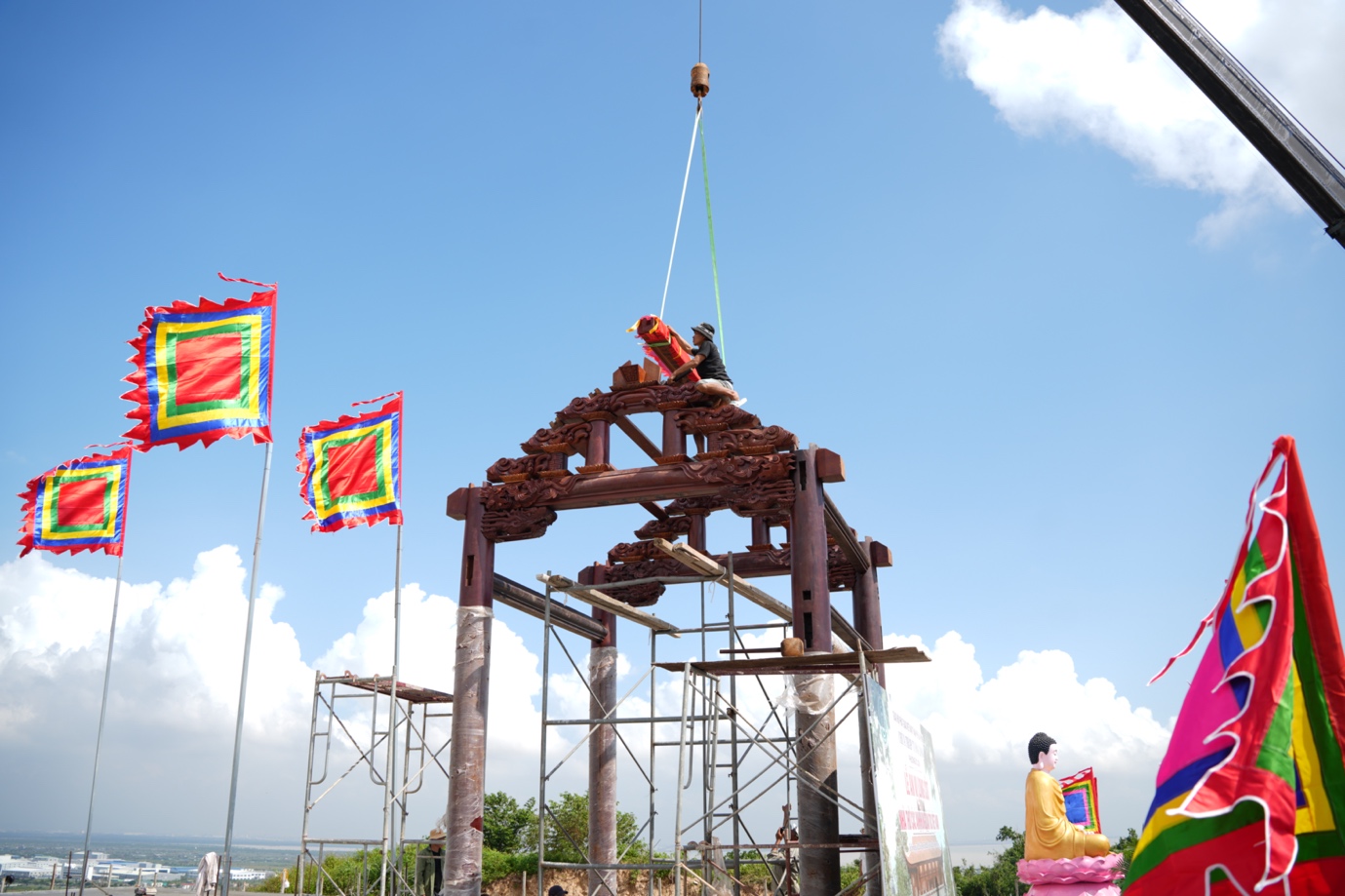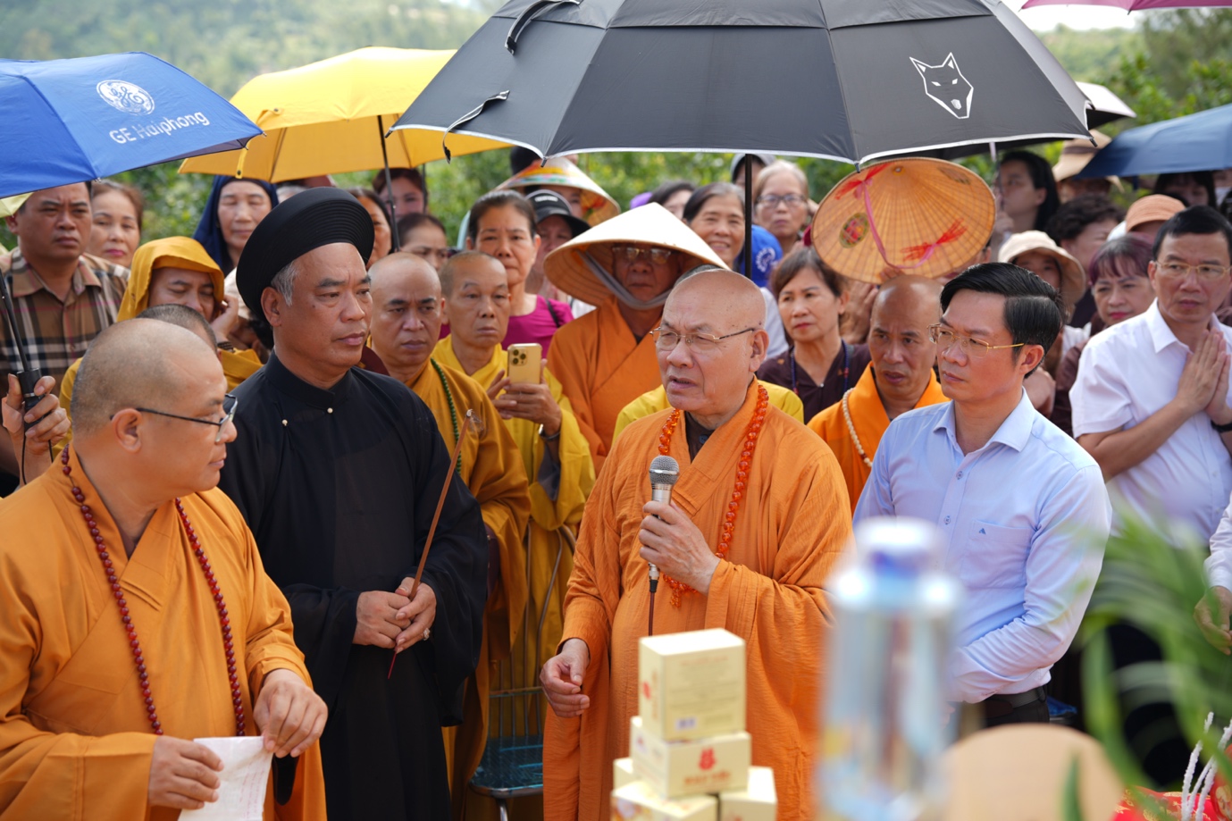 Trong không khí thiêng liêng và đầy đạo vị, chư Tôn đức Tăng Ni đã cùng quý đại biểu, nhân dân, Phật tử cử hành nghi thức niêm hương, bạch Phật, chú nguyện, chính thức an vị Long cốt (cất nóc), đánh dấu bước tiến quan trọng trong tiến trình kiến tạo ngôi đền tâm linh tiêu biểu tại miền biển Đông Bắc.