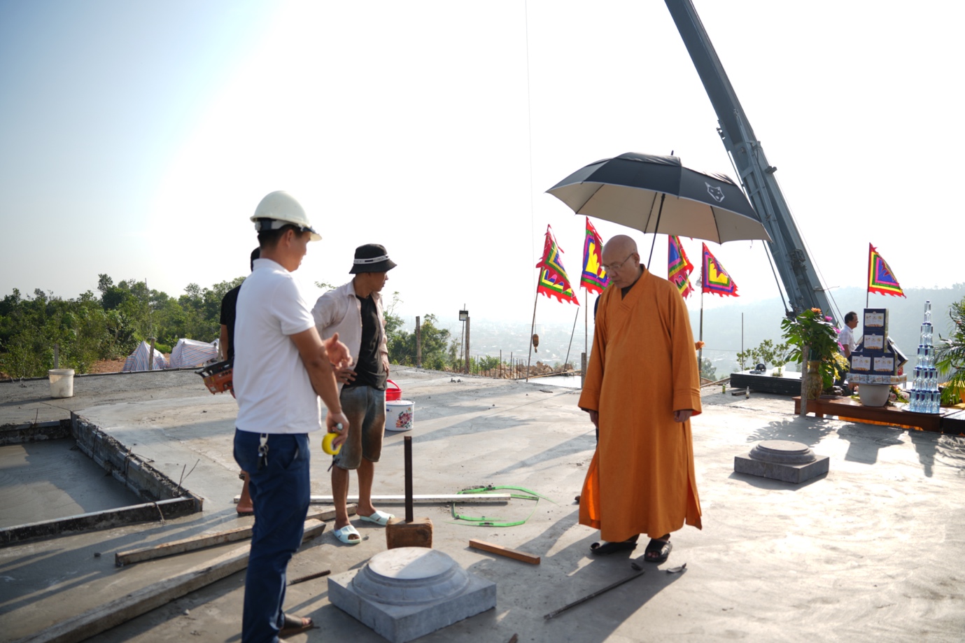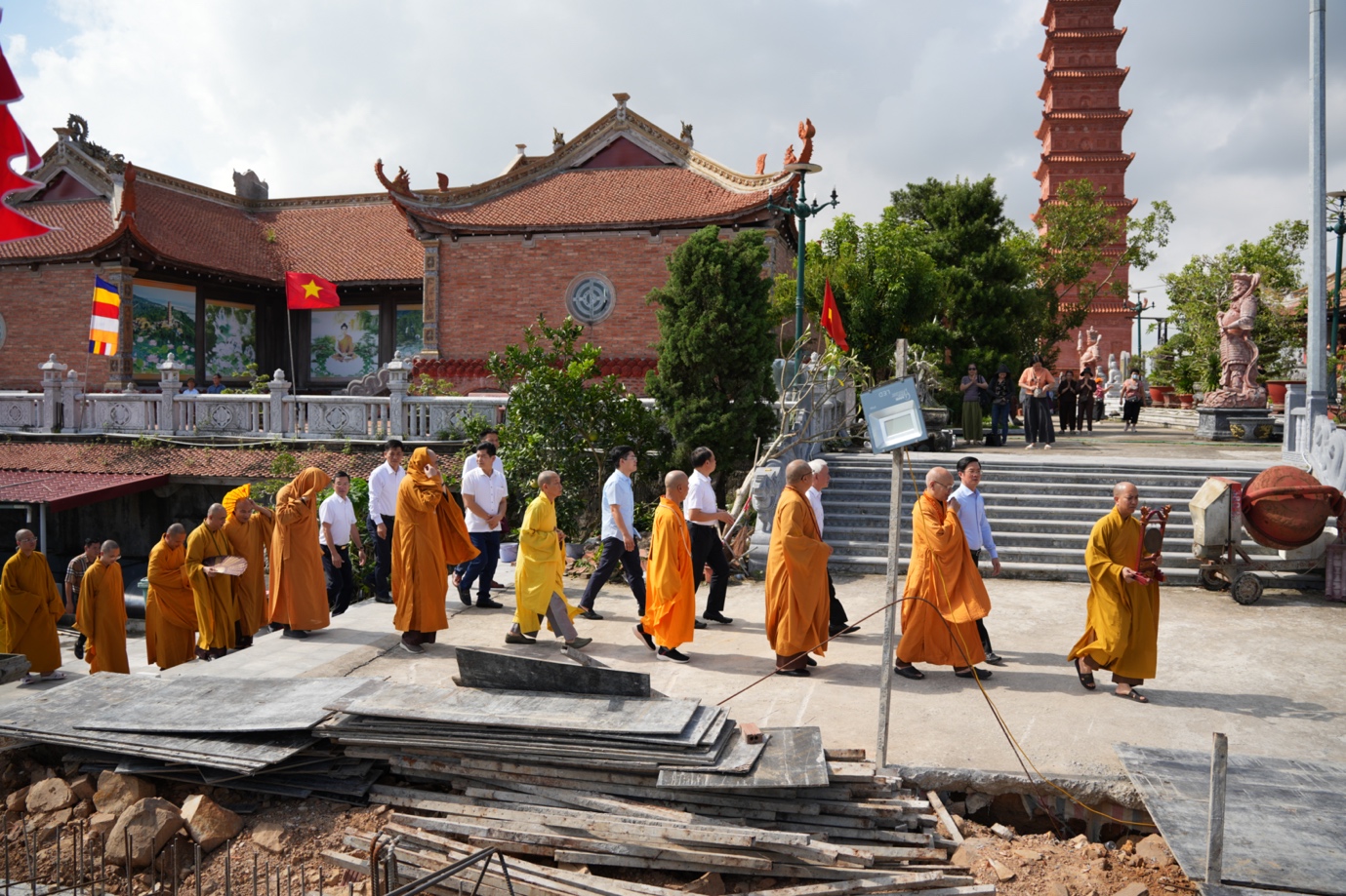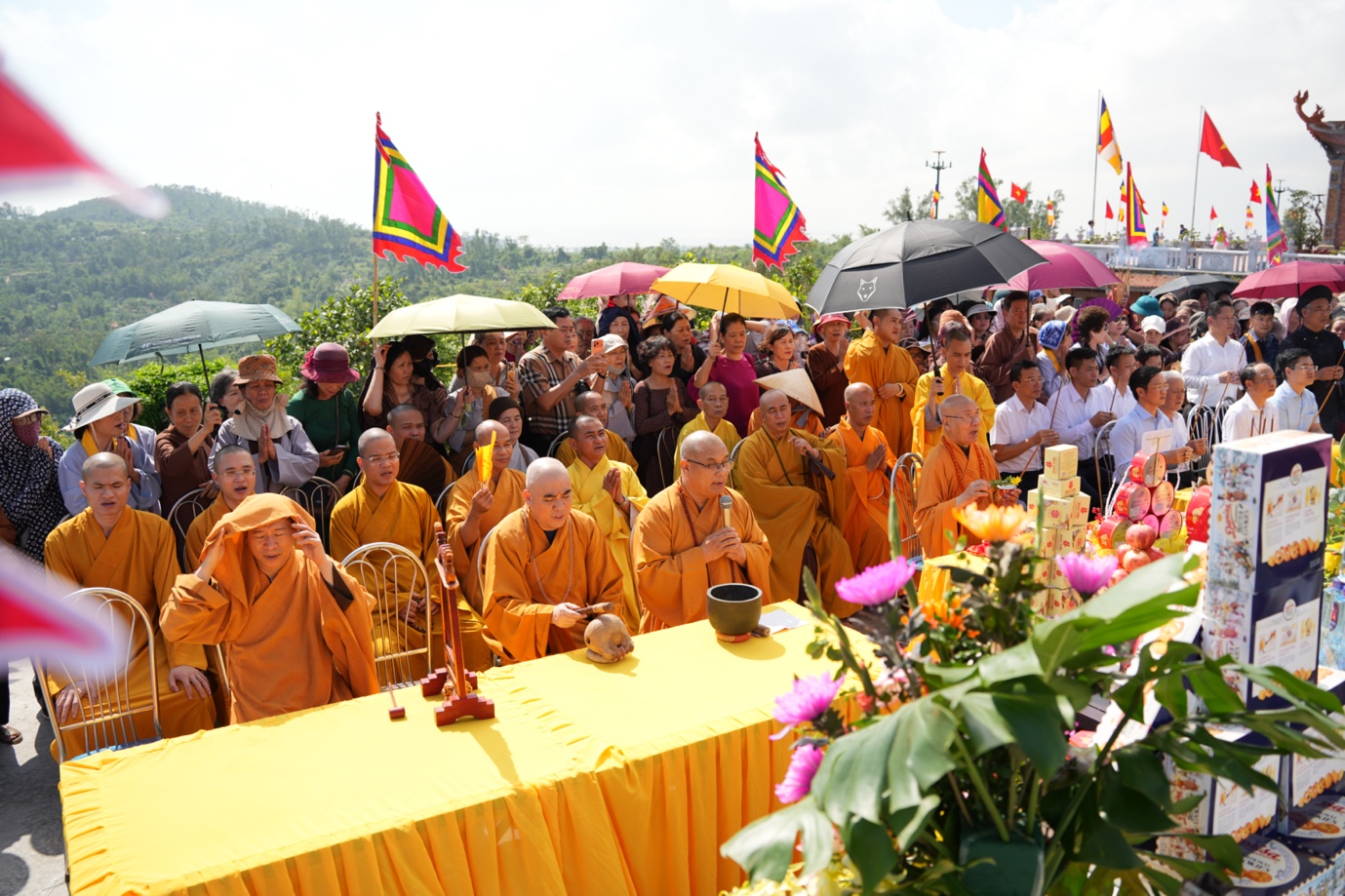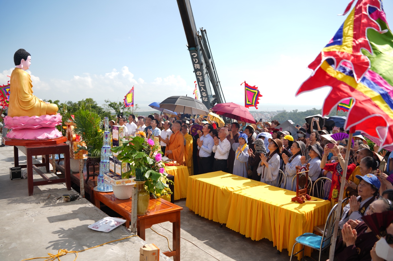 Trong không khí thiêng liêng và đầy đạo vị, chư Tôn đức Tăng Ni đã cùng quý đại biểu, nhân dân, Phật tử cử hành nghi thức niêm hương, bạch Phật, chú nguyện, chính thức an vị Long cốt (cất nóc), đánh dấu bước tiến quan trọng trong tiến trình kiến tạo ngôi đền tâm linh tiêu biểu tại miền biển Đông Bắc.
