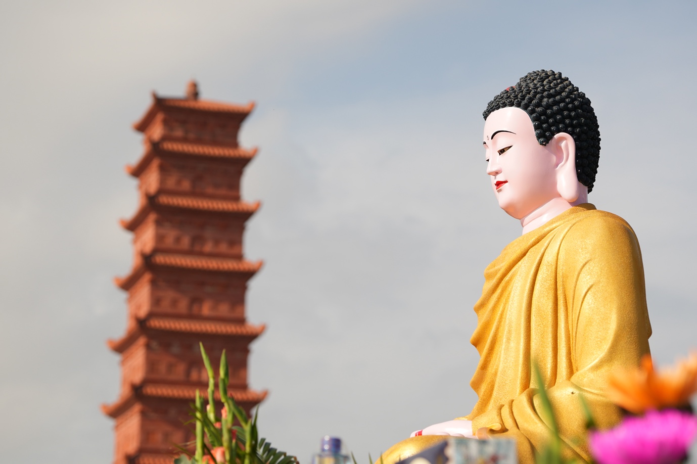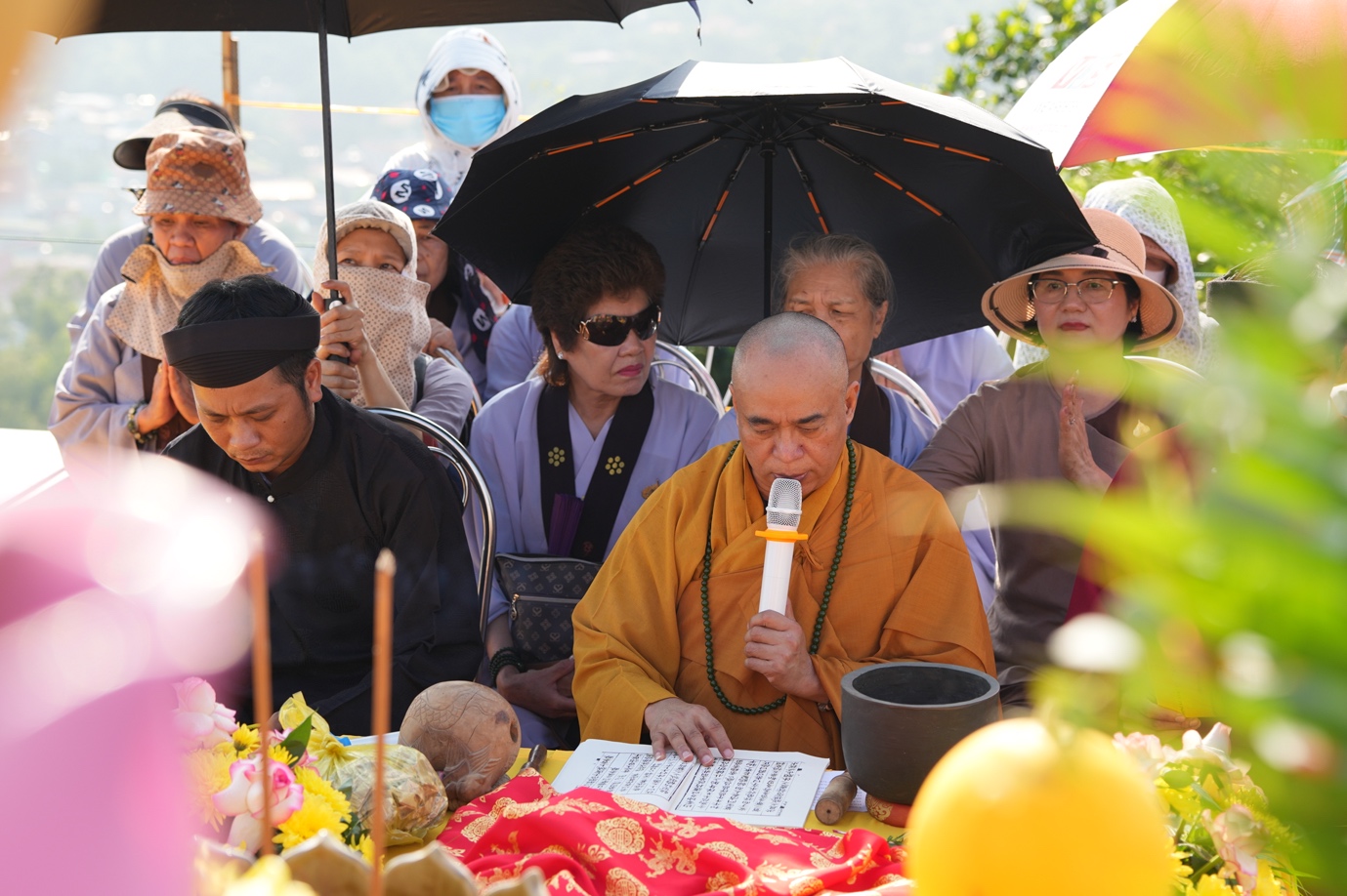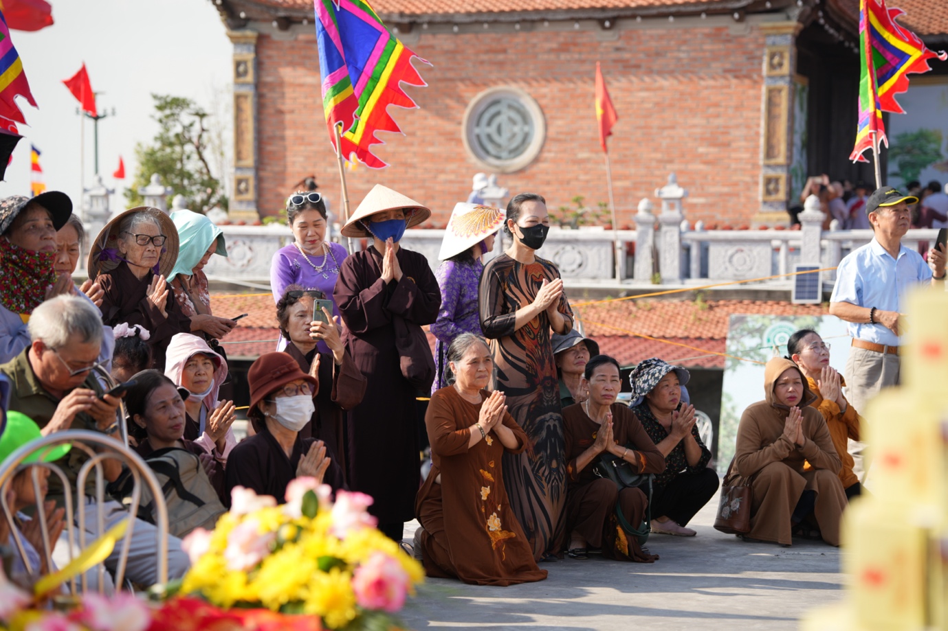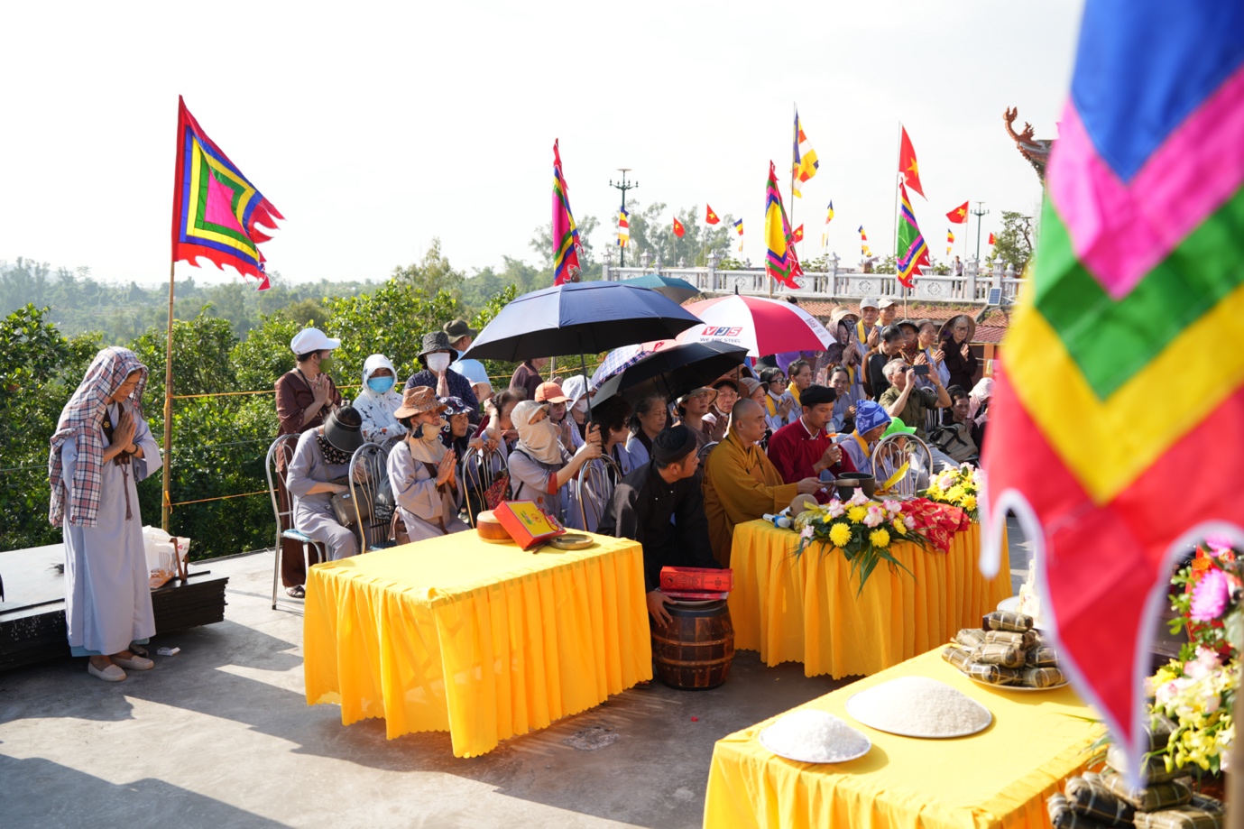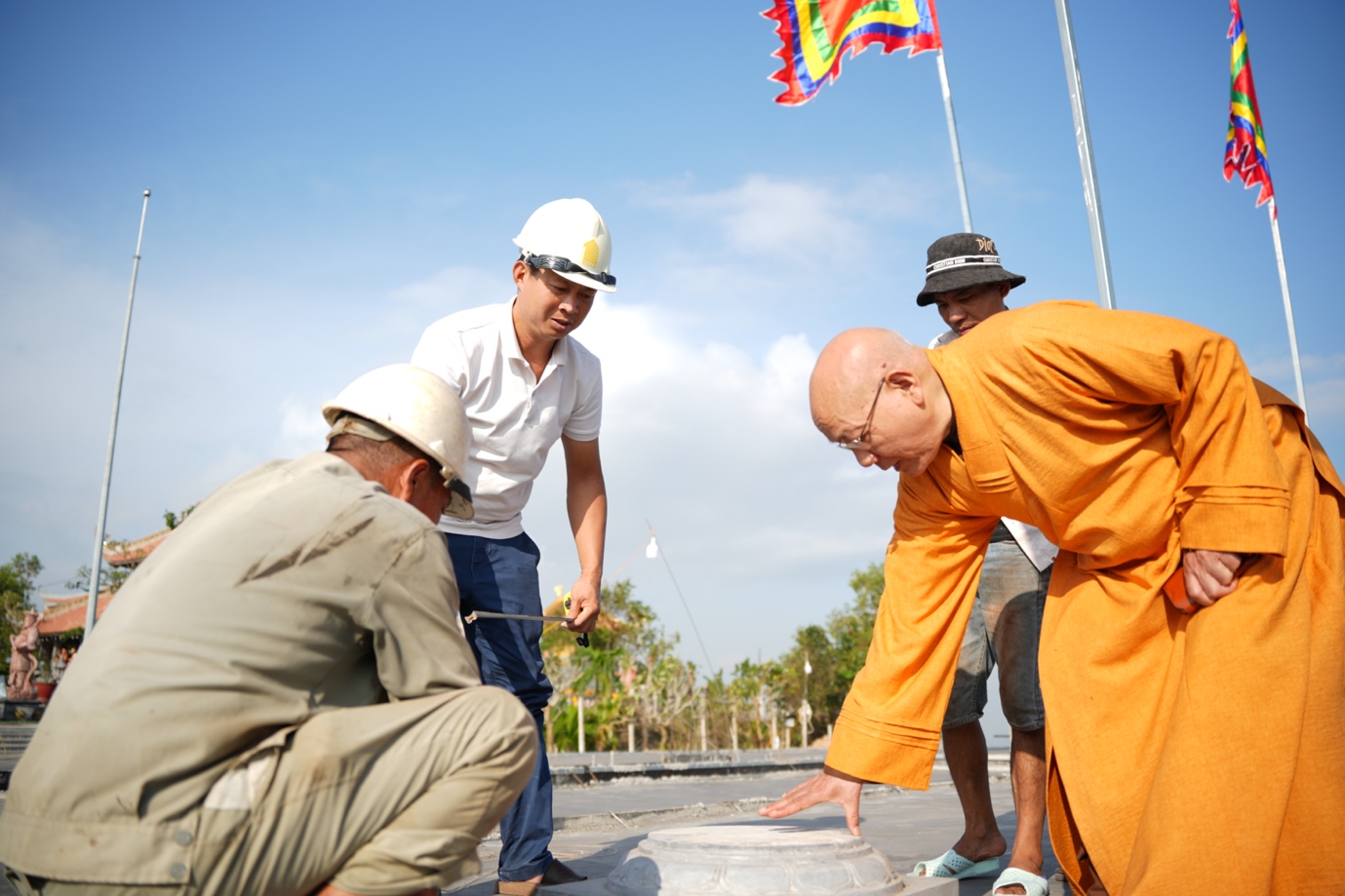 Trong không khí thiêng liêng và đầy đạo vị, chư Tôn đức Tăng Ni đã cùng quý đại biểu, nhân dân, Phật tử cử hành nghi thức niêm hương, bạch Phật, chú nguyện, chính thức an vị Long cốt (cất nóc), đánh dấu bước tiến quan trọng trong tiến trình kiến tạo ngôi đền tâm linh tiêu biểu tại miền biển Đông Bắc.