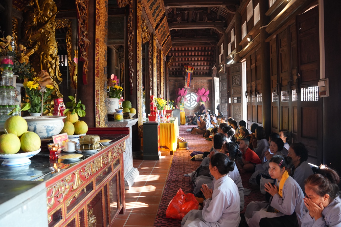 Từ sáng sớm, chư Tôn đức Tăng Ni cùng đông đảo Phật tử, nhân dân địa phương và thiện nam tín nữ từ các tỉnh thành đã vân tập về chùa, đồng tâm hiệp lực hướng về buổi lễ thiêng liêng, thực hiện nghi thức lễ Phật, cúng Tổ trong không khí thành kính và trang nghiêm.