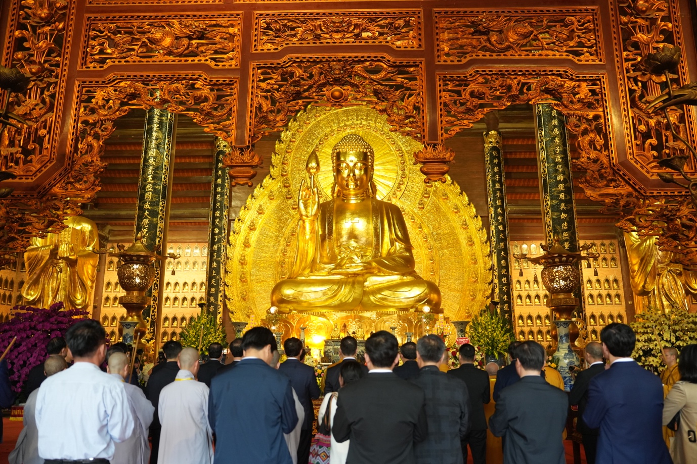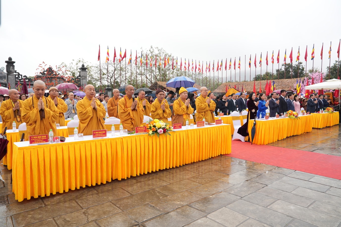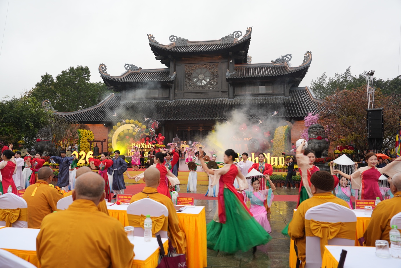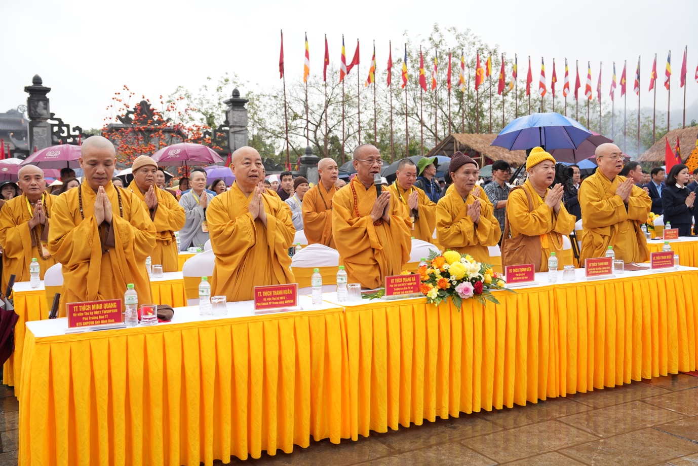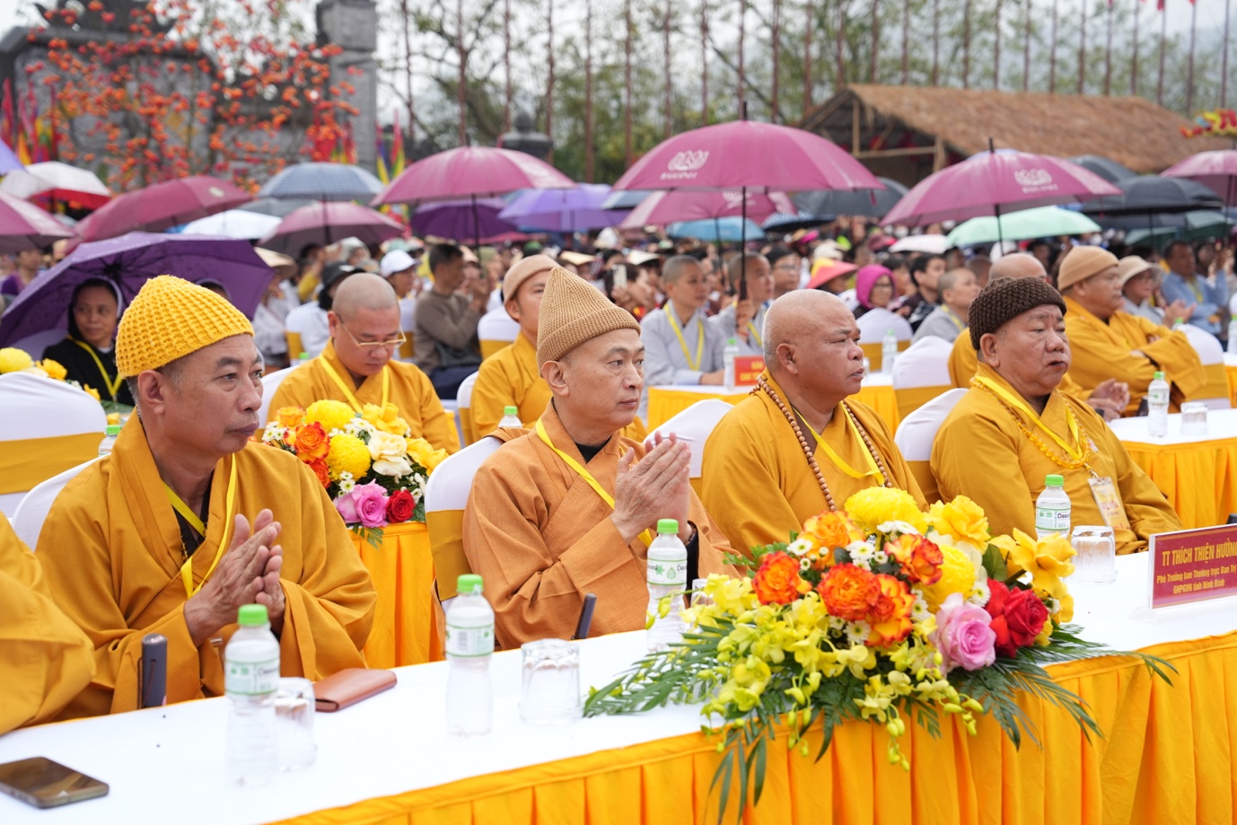 Phát biểu khai mạc, Thượng tọa Thích Minh Quang – Ủy viên thư kí HĐTS, Phó trưởng Ban thường trực BTS GHPGVN tỉnh Ninh Bình, Phó Trụ trì chùa Bái Đính nhấn mạnh: “Trong suốt chiều dài lịch sử của dân tộc, Phật giáo Việt Nam luôn gắn kết giữa đạo với đời và đồng hành cùng dân tộc. Chùa Bái Đính có lịch sử nghìn năm, là một trong những danh lam nổi tiếng của đất Cố đô Hoa Lư xưa, đây là nơi Đinh Tiên Hoàng đế lập đàn tế trời vào dịp đầu xuân hàng năm để cầu nguyện Quốc thái dân an, mưa thuận gió hòa, mùa màng bội thu và cũng là nơi vua Quang Trung chọn để thực hiện nghi lễ tế cờ, động viên tướng sĩ trước khi tiến ra Thăng Long đại phá quân Thanh. Mặc dù đã trải qua nhiều biến cố thăng trầm của lịch sử, nhưng danh lam Bái Đính vẫn được Tăng Ni, tín đồ Phật tử và nhân dân địa phương trân trọng, giữ gìn cho đến ngày nay và mãi mãi về sau.”