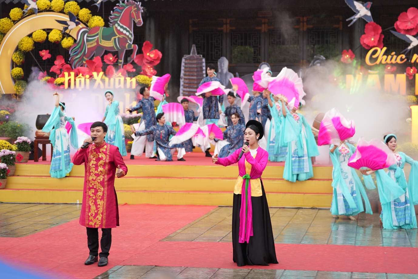 Bên cạnh nghi thức rước kiệu bài vị Thần Cao Sơn, Đức Thánh Nguyễn, Bà Chúa Thượng Ngàn, dâng lễ lên chùa cổ; phần hội mở ra trong không khí tưng bừng, rộn rã sắc xuân. Những tiết mục nghệ thuật chào mừng năm mới được dàn dựng công phu, hòa quyện âm hưởng truyền thống và hơi thở đương đại, gửi gắm bao ước vọng về một năm mới may mắn và hạnh phúc.