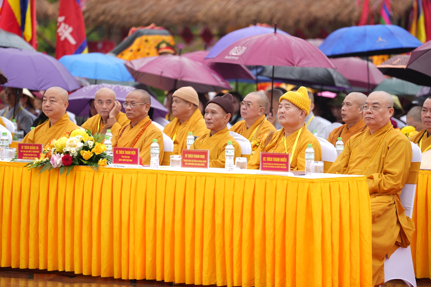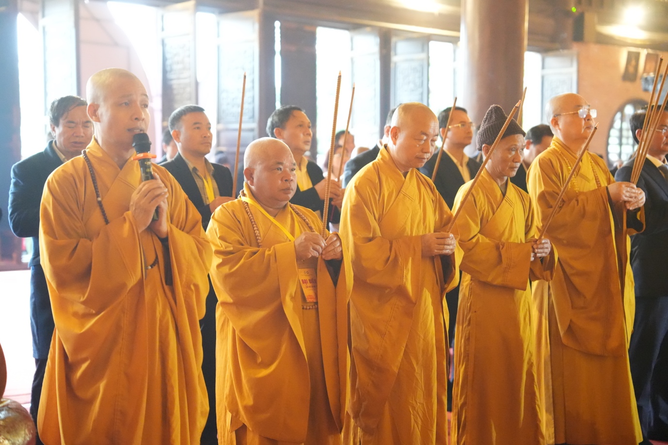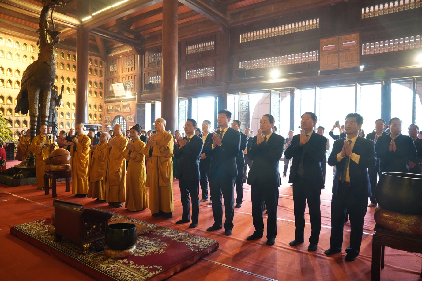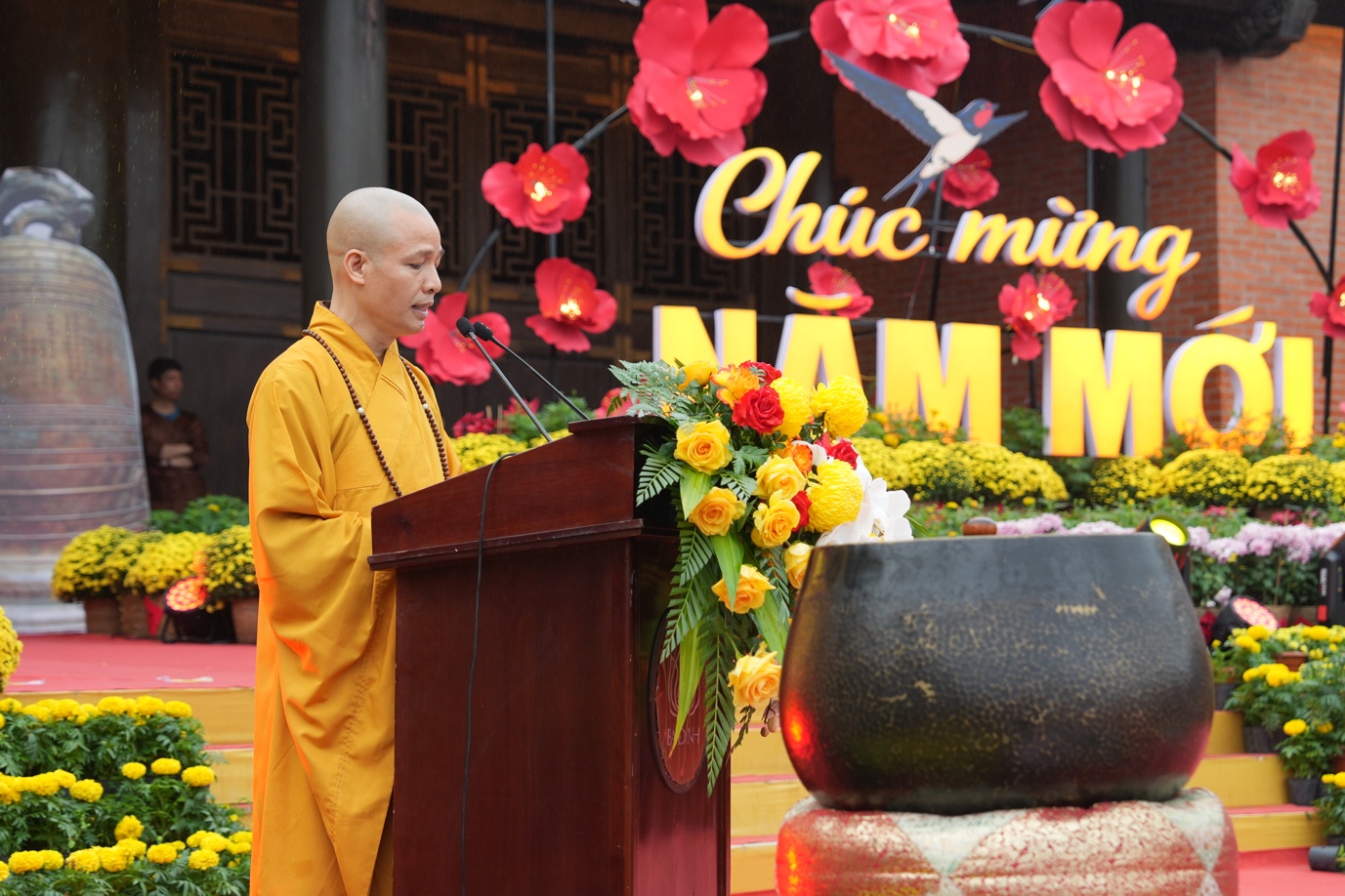 Phát biểu khai mạc, Thượng tọa Thích Minh Quang – Ủy viên thư kí HĐTS, Phó trưởng Ban thường trực BTS GHPGVN tỉnh Ninh Bình, Phó Trụ trì chùa Bái Đính nhấn mạnh: “Trong suốt chiều dài lịch sử của dân tộc, Phật giáo Việt Nam luôn gắn kết giữa đạo với đời và đồng hành cùng dân tộc. Chùa Bái Đính có lịch sử nghìn năm, là một trong những danh lam nổi tiếng của đất Cố đô Hoa Lư xưa, đây là nơi Đinh Tiên Hoàng đế lập đàn tế trời vào dịp đầu xuân hàng năm để cầu nguyện Quốc thái dân an, mưa thuận gió hòa, mùa màng bội thu và cũng là nơi vua Quang Trung chọn để thực hiện nghi lễ tế cờ, động viên tướng sĩ trước khi tiến ra Thăng Long đại phá quân Thanh. Mặc dù đã trải qua nhiều biến cố thăng trầm của lịch sử, nhưng danh lam Bái Đính vẫn được Tăng Ni, tín đồ Phật tử và nhân dân địa phương trân trọng, giữ gìn cho đến ngày nay và mãi mãi về sau.”