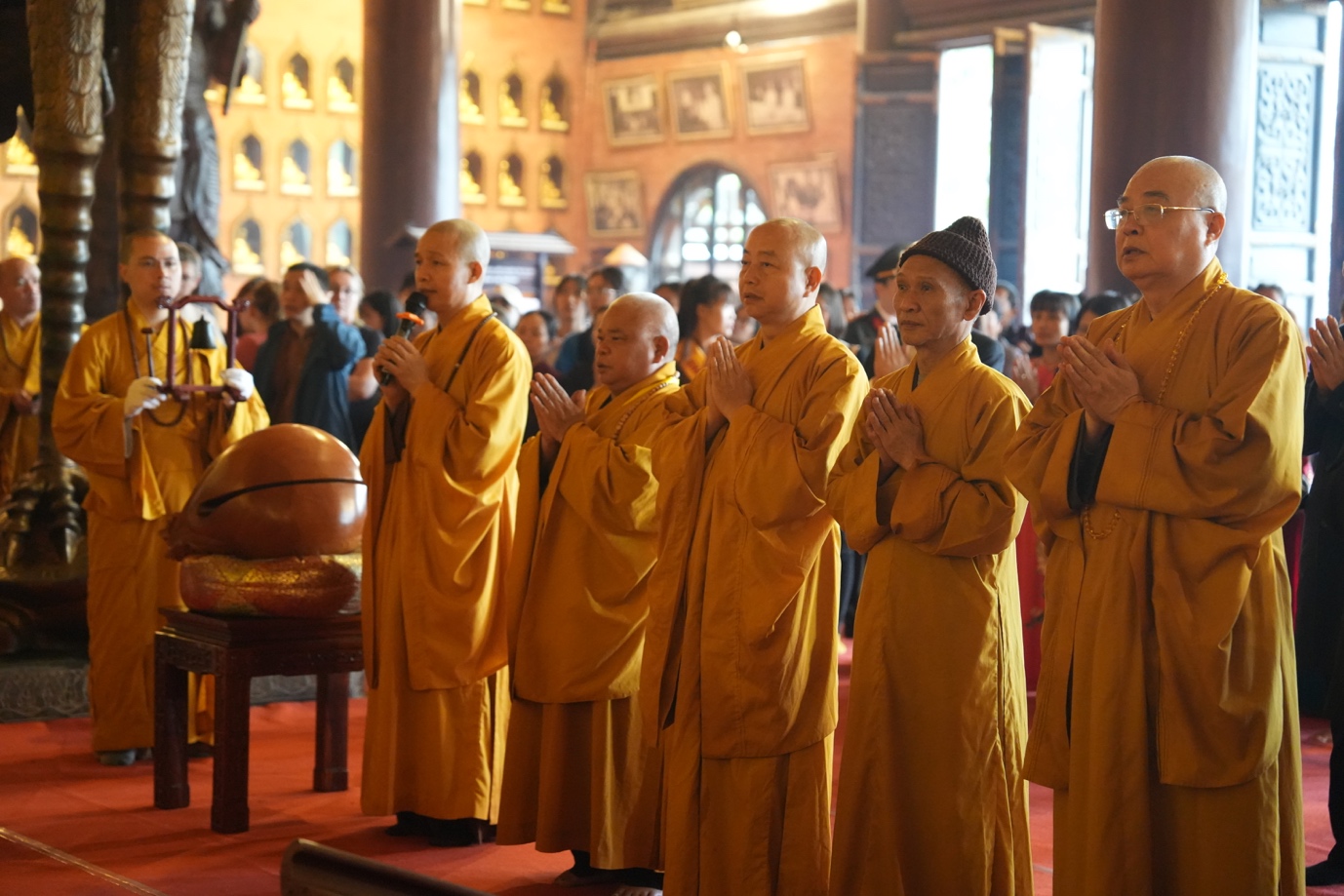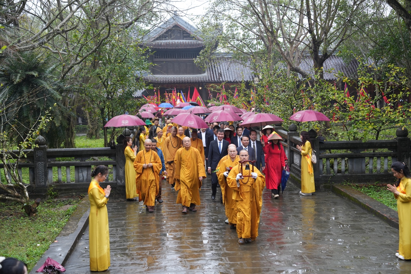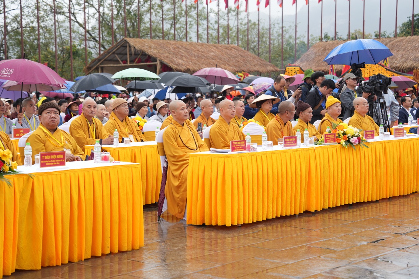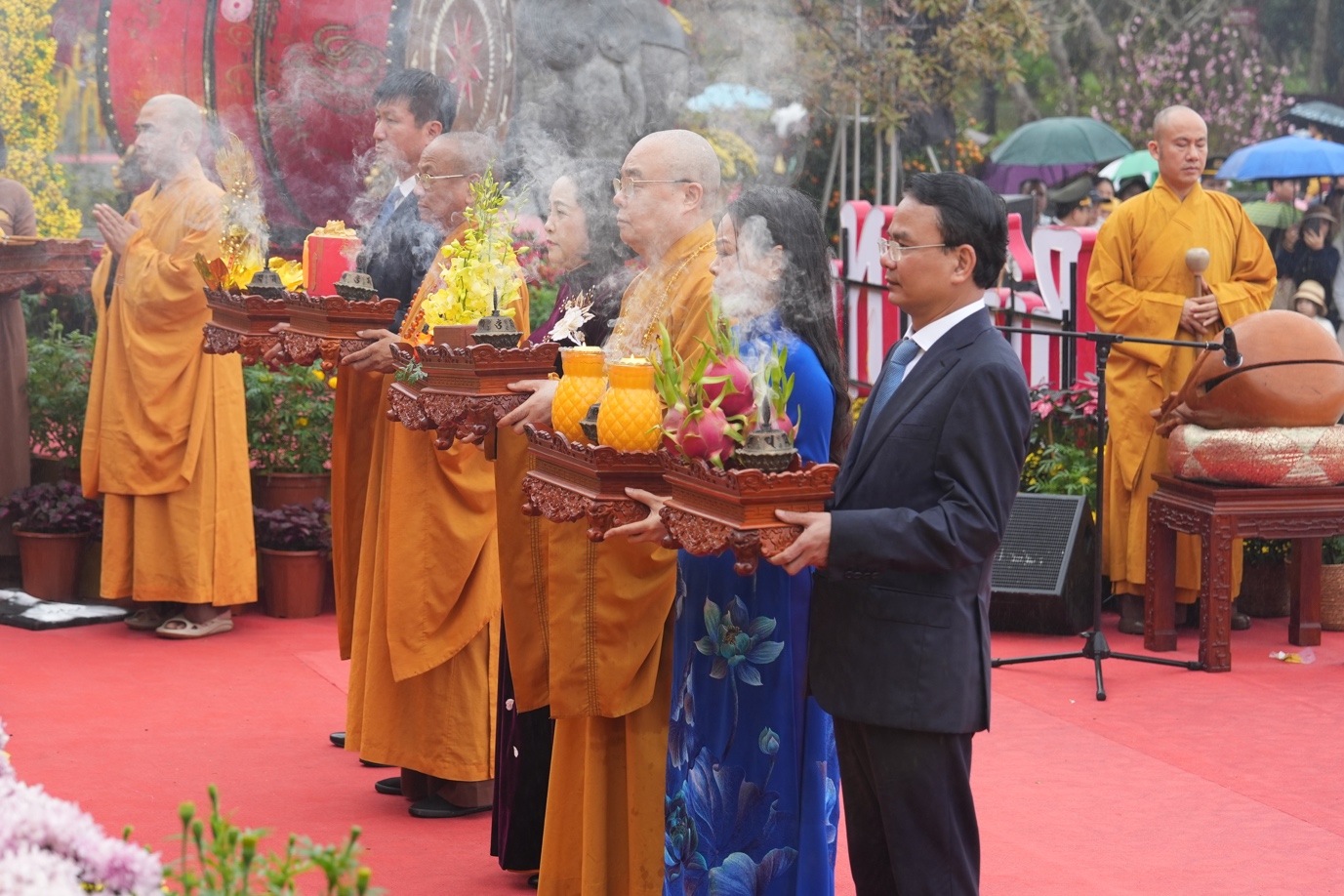 Phát biểu khai mạc, Thượng tọa Thích Minh Quang – Ủy viên thư kí HĐTS, Phó trưởng Ban thường trực BTS GHPGVN tỉnh Ninh Bình, Phó Trụ trì chùa Bái Đính nhấn mạnh: “Trong suốt chiều dài lịch sử của dân tộc, Phật giáo Việt Nam luôn gắn kết giữa đạo với đời và đồng hành cùng dân tộc. Chùa Bái Đính có lịch sử nghìn năm, là một trong những danh lam nổi tiếng của đất Cố đô Hoa Lư xưa, đây là nơi Đinh Tiên Hoàng đế lập đàn tế trời vào dịp đầu xuân hàng năm để cầu nguyện Quốc thái dân an, mưa thuận gió hòa, mùa màng bội thu và cũng là nơi vua Quang Trung chọn để thực hiện nghi lễ tế cờ, động viên tướng sĩ trước khi tiến ra Thăng Long đại phá quân Thanh. Mặc dù đã trải qua nhiều biến cố thăng trầm của lịch sử, nhưng danh lam Bái Đính vẫn được Tăng Ni, tín đồ Phật tử và nhân dân địa phương trân trọng, giữ gìn cho đến ngày nay và mãi mãi về sau.”