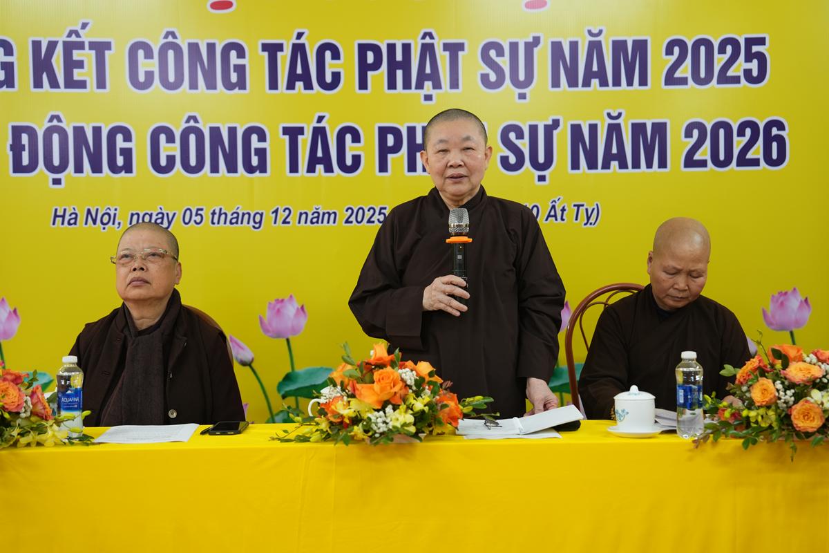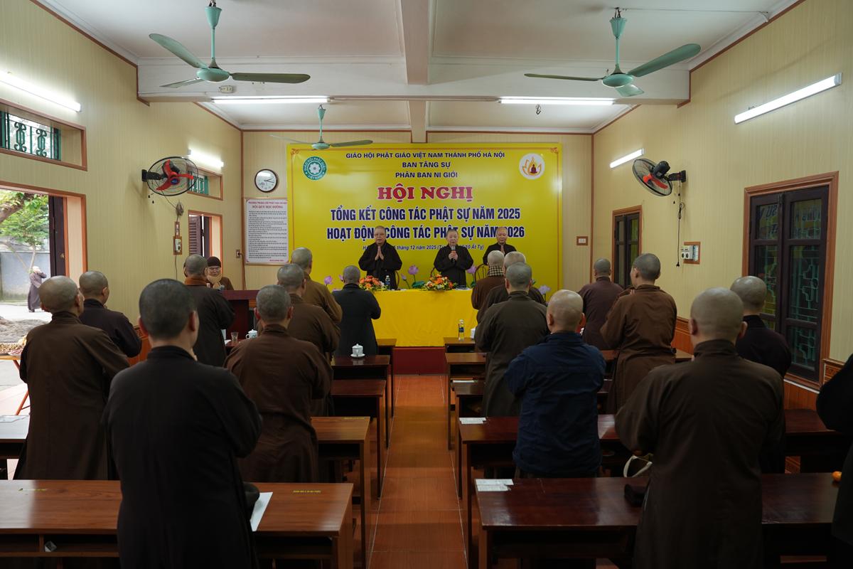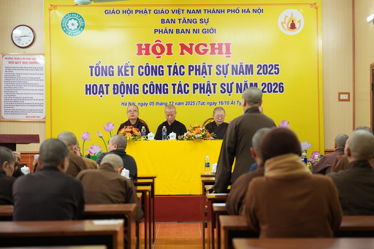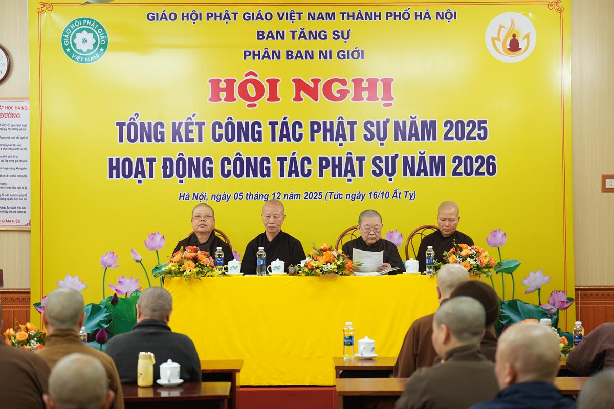 Tại hội nghị, sau lời phát biểu khai mạc của Ni trưởng Thích Đàm Thành, chư Ni đã lắng nghe Ni sư Thích Đàm Luyện trình bày báo cáo tổng kết công tác Phật sự năm 2025. Theo báo cáo, năm 2025 – năm thứ ba của nhiệm kỳ 2022–2027, Phân ban Ni giới TP Hà Nội đã nỗ lực triển khai đồng bộ nhiều hoạt động trọng tâm trên các lĩnh vực: giáo dục Tăng Ni, an cư kiết hạ, hoằng pháp, hướng dẫn Phật tử tu học, công tác nghi lễ, xây dựng – trùng tu – tôn tạo các tự viện, và các chương trình từ thiện xã hội.