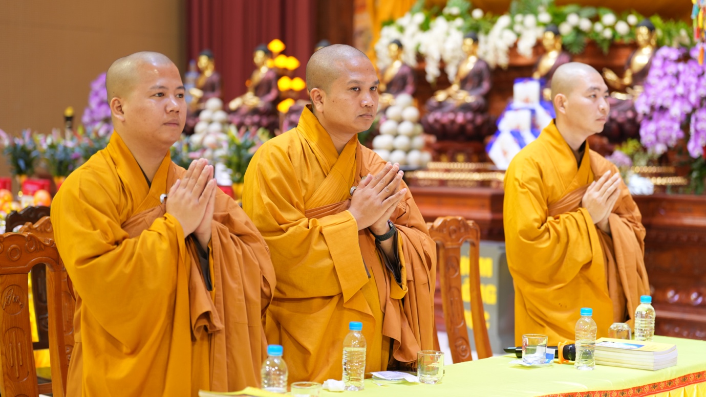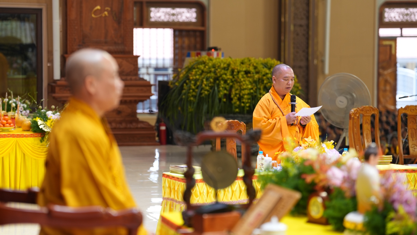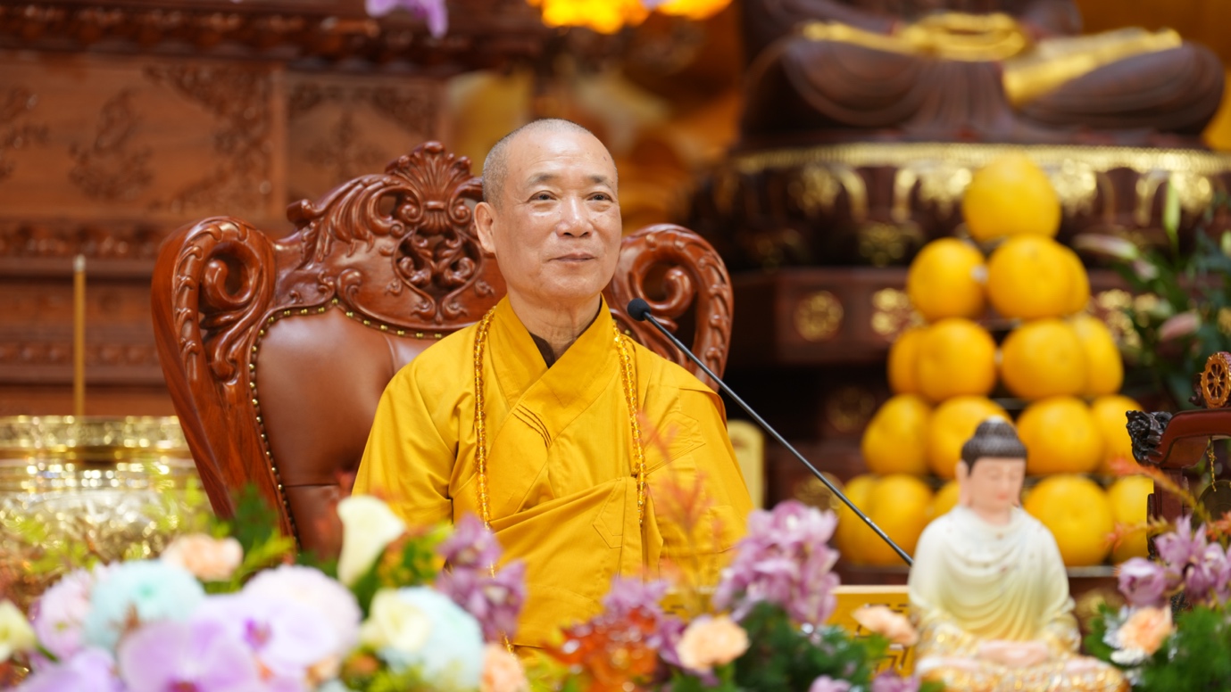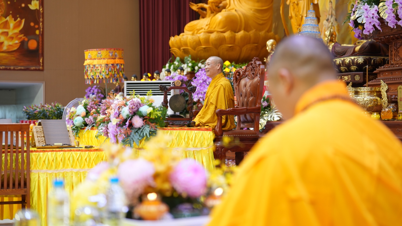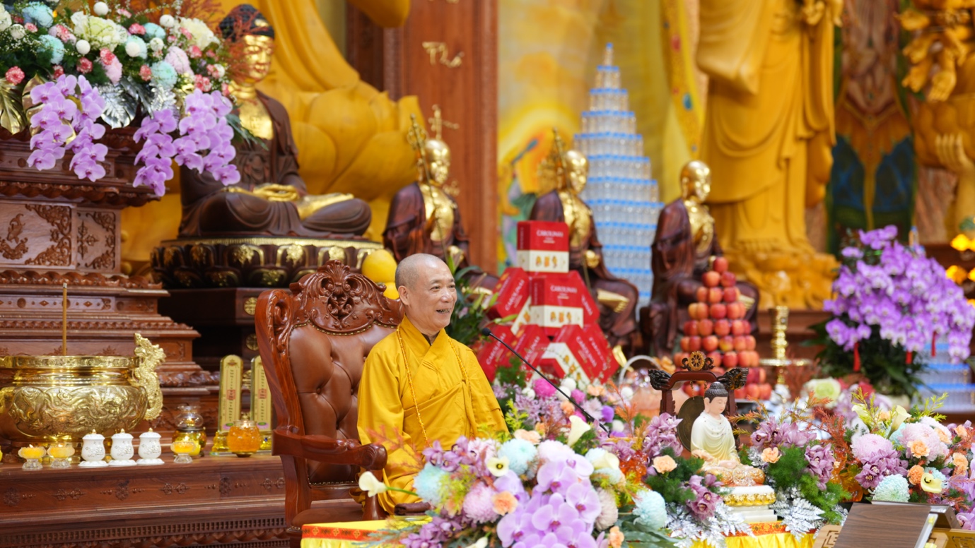 Hòa thượng cũng nhấn mạnh “Trong phẩm Phổ Môn của Kinh Diệu Pháp Liên Hoa, Đức Phật Thích Ca Mâu Ni đã tán thán công hạnh của Bồ Tát Quán Thế Âm với tâm từ rộng lớn, luôn dùng “từ nhãn thị chúng sinh” – lấy đôi mắt từ bi để nhìn cuộc đời, lắng nghe và cảm thông trước mọi nỗi khổ đau của muôn loài. Sự vân tập của các Phật tử tại pháp hội này chính là năng lượng tu tập lớn để cùng nhau hồi hướng cho đất nước chấm dứt chiến tranh, đất nước phát triển hội nhập và toàn thể mọi người đều được bình an”.