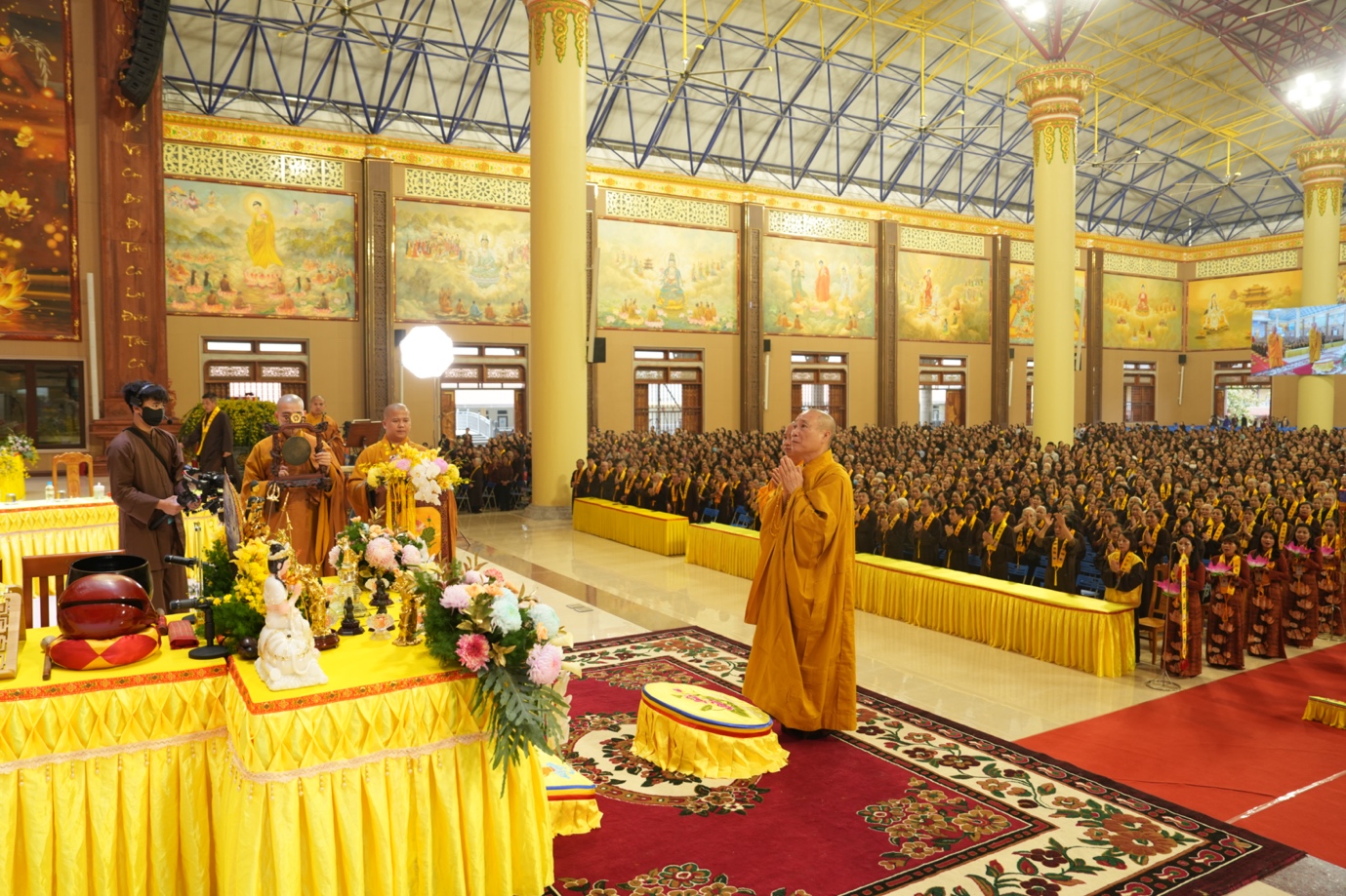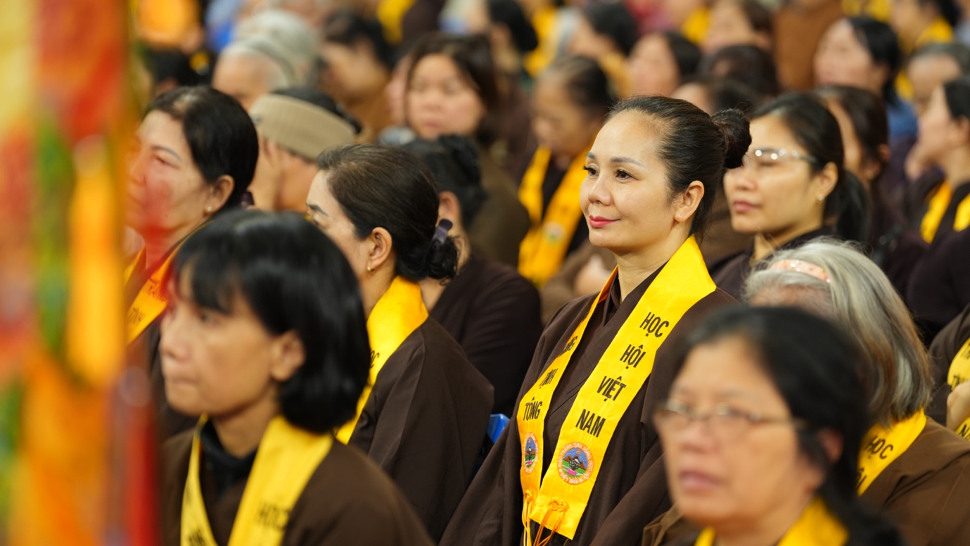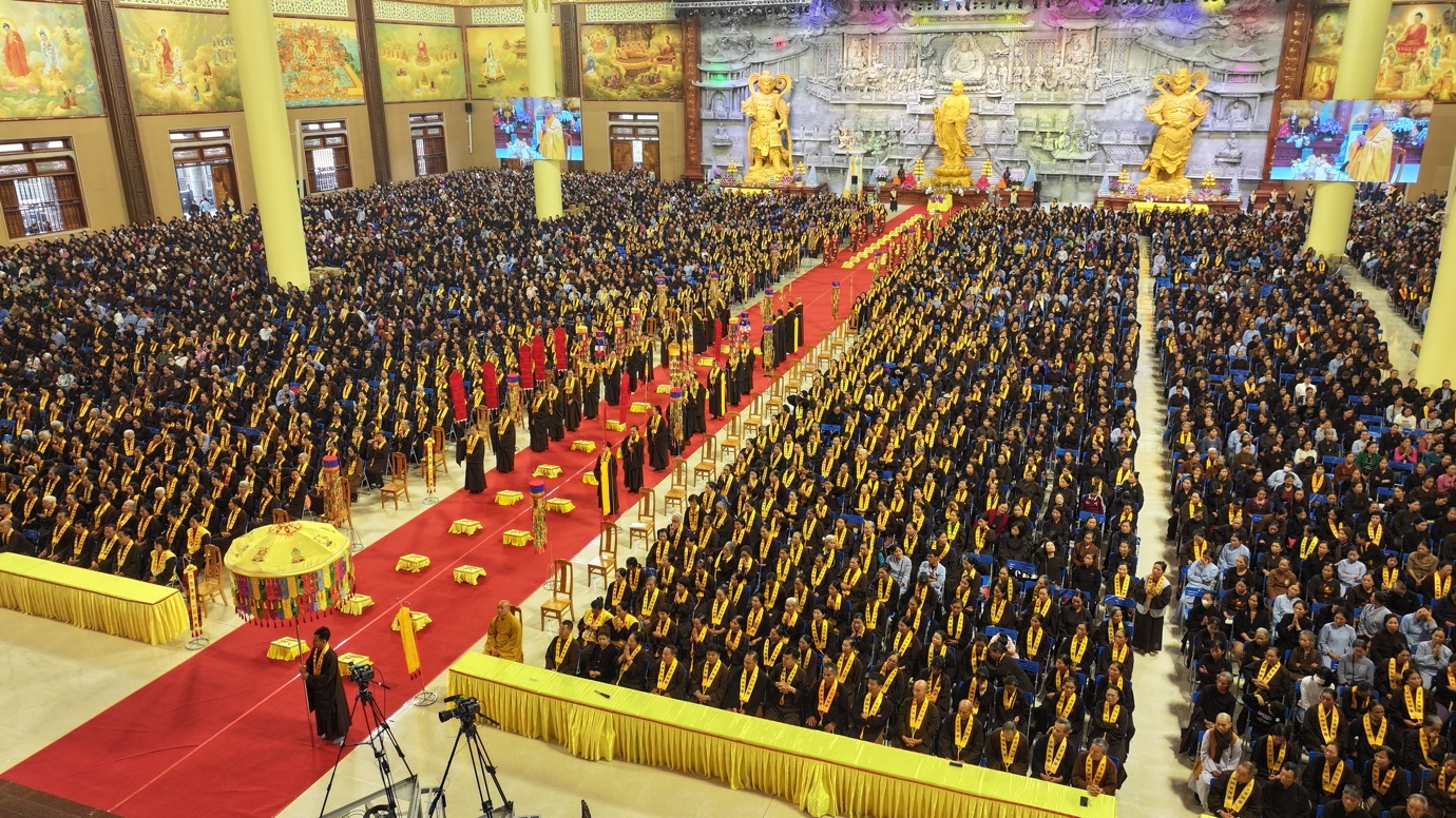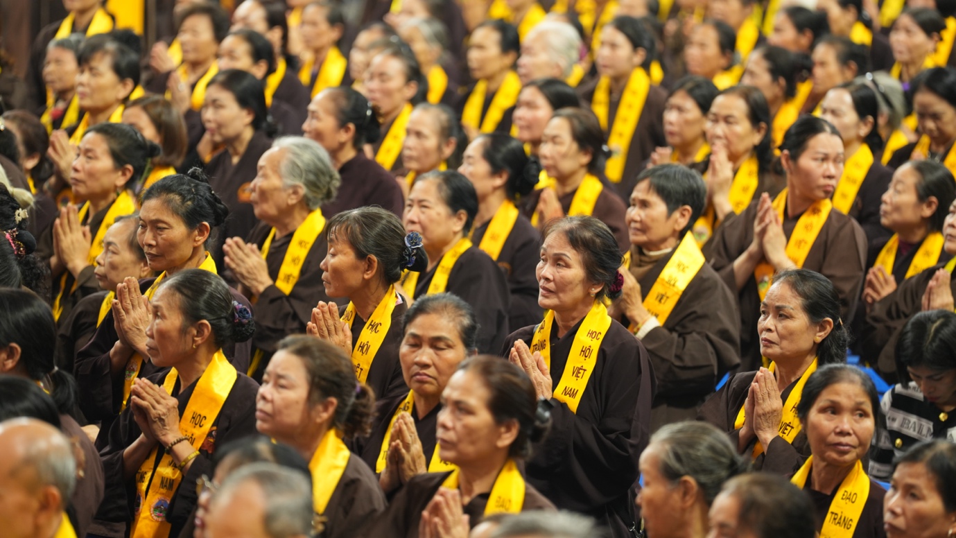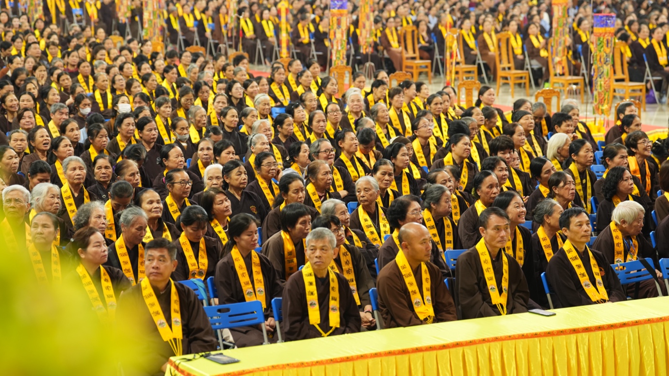 Hòa thượng cũng nhấn mạnh “Trong phẩm Phổ Môn của Kinh Diệu Pháp Liên Hoa, Đức Phật Thích Ca Mâu Ni đã tán thán công hạnh của Bồ Tát Quán Thế Âm với tâm từ rộng lớn, luôn dùng “từ nhãn thị chúng sinh” – lấy đôi mắt từ bi để nhìn cuộc đời, lắng nghe và cảm thông trước mọi nỗi khổ đau của muôn loài. Sự vân tập của các Phật tử tại pháp hội này chính là năng lượng tu tập lớn để cùng nhau hồi hướng cho đất nước chấm dứt chiến tranh, đất nước phát triển hội nhập và toàn thể mọi người đều được bình an”.