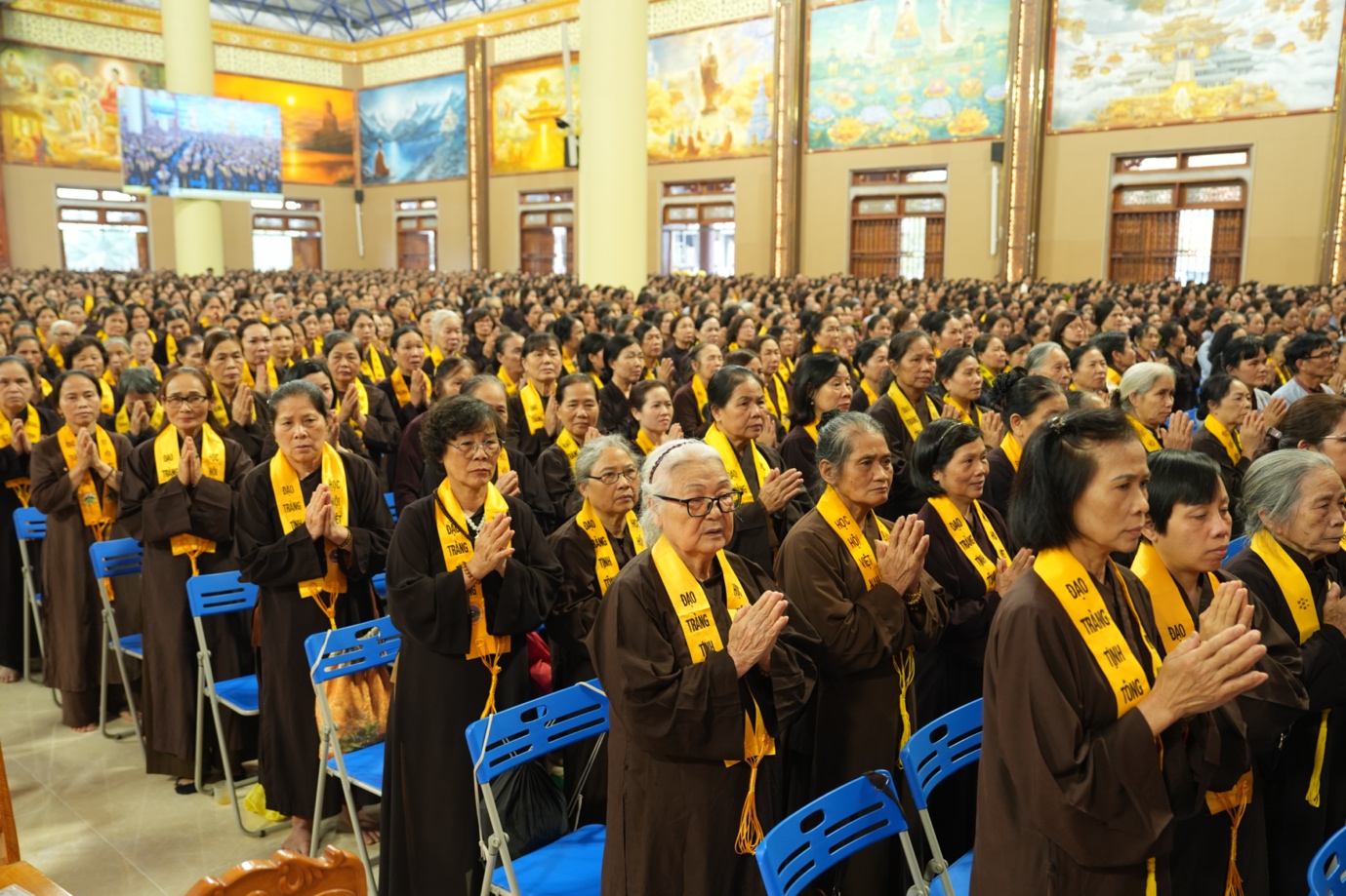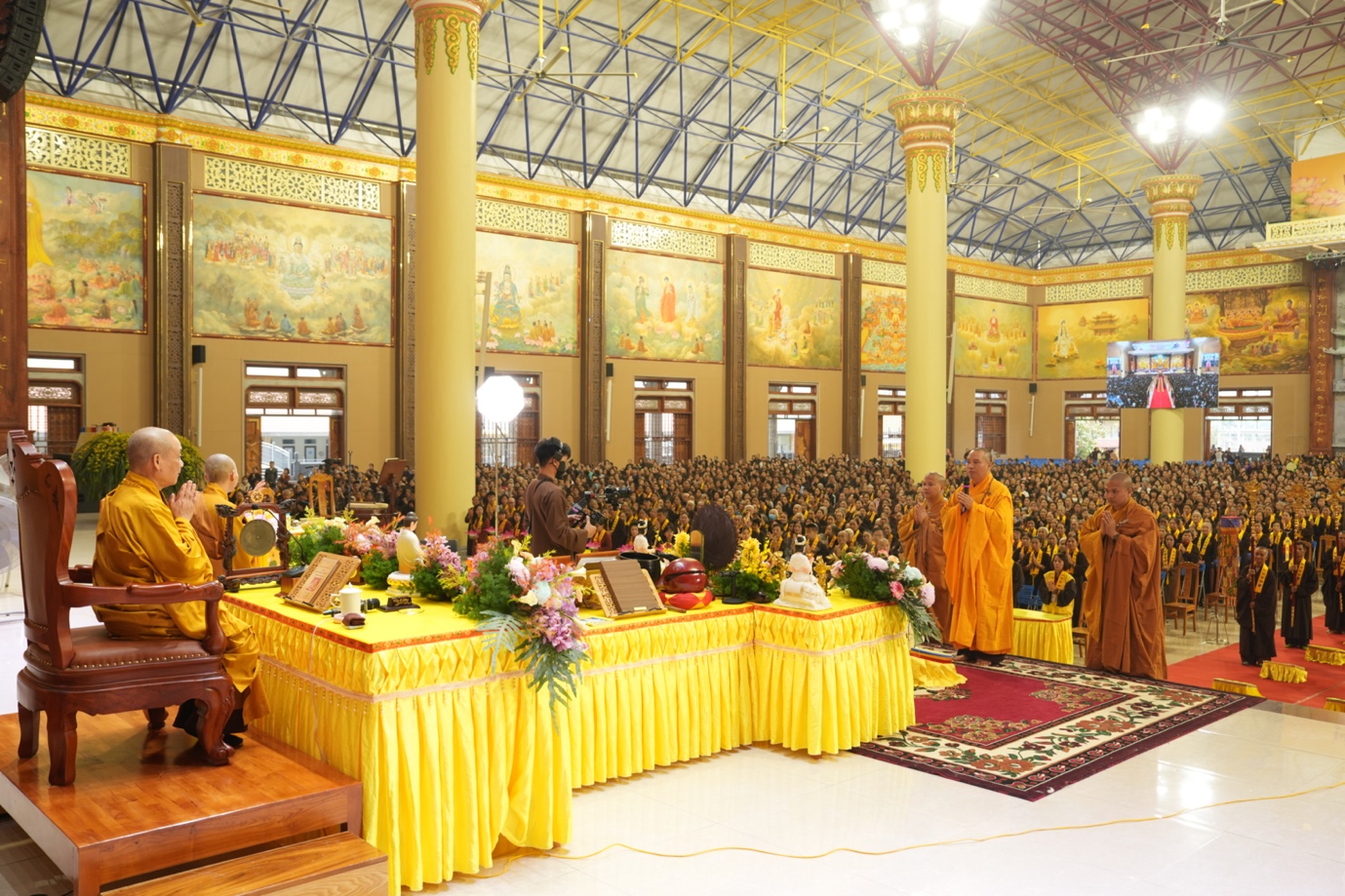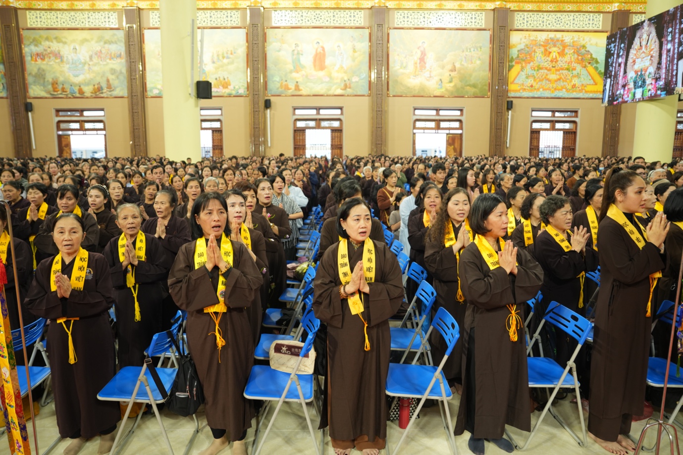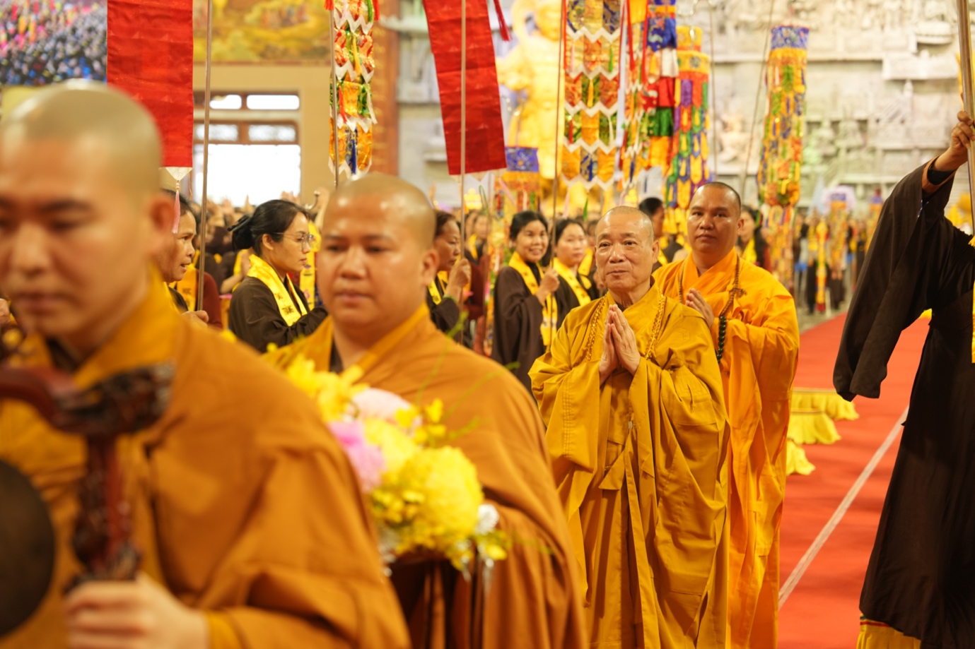 Hòa thượng cũng nhấn mạnh “Trong phẩm Phổ Môn của Kinh Diệu Pháp Liên Hoa, Đức Phật Thích Ca Mâu Ni đã tán thán công hạnh của Bồ Tát Quán Thế Âm với tâm từ rộng lớn, luôn dùng “từ nhãn thị chúng sinh” – lấy đôi mắt từ bi để nhìn cuộc đời, lắng nghe và cảm thông trước mọi nỗi khổ đau của muôn loài. Sự vân tập của các Phật tử tại pháp hội này chính là năng lượng tu tập lớn để cùng nhau hồi hướng cho đất nước chấm dứt chiến tranh, đất nước phát triển hội nhập và toàn thể mọi người đều được bình an”.