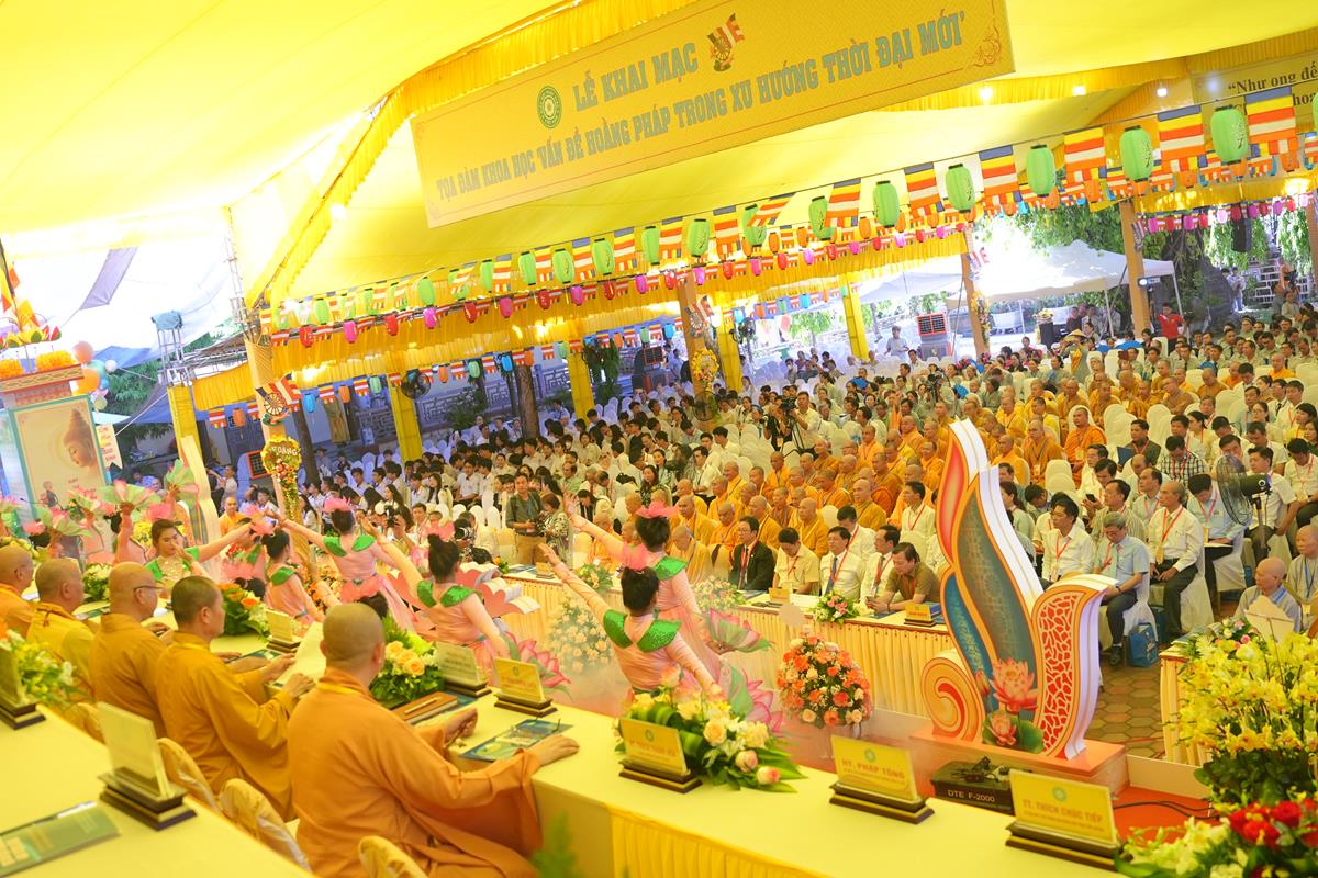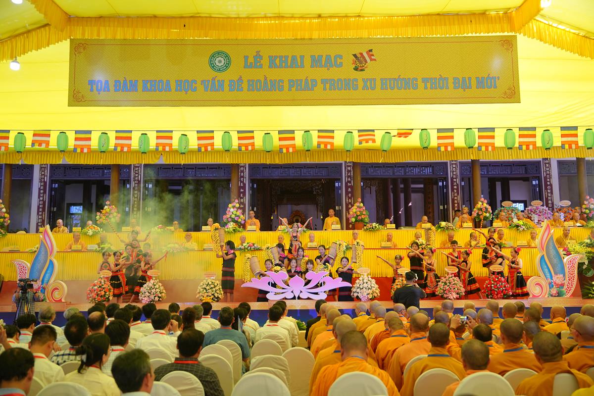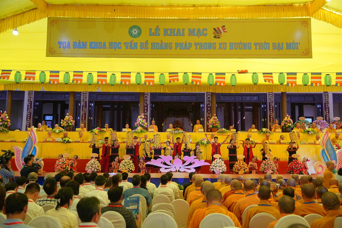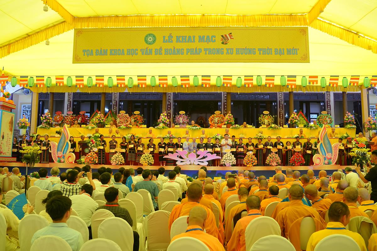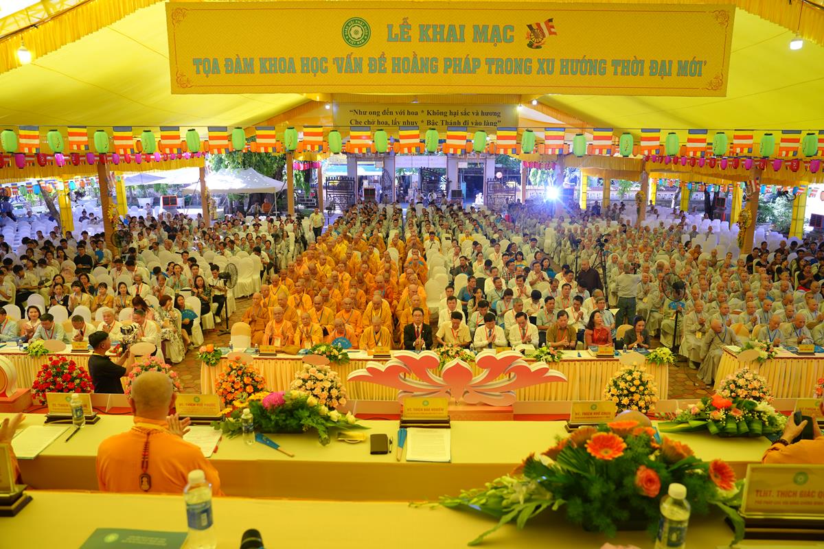 Sau chương trình lễ khai mạc, hội chúng đã lắng nghe 3 bài tham luận của Hòa thượng Thích Gia Quang – Phó chủ tịch HĐTS, Trưởng Ban thông tin truyền thông TW; Hòa thượng Thích Huệ Thông – Phó chủ tịch HĐTS, Trưởng Ban pháp chế TW và ông Bùi Hữu Dược – Nguyên Vụ trưởng Vụ Phật giáo Ban Tôn giáo Chính Phủ.
