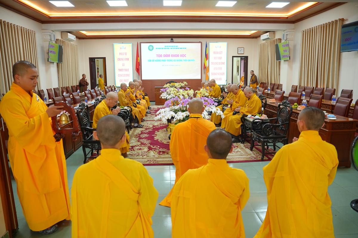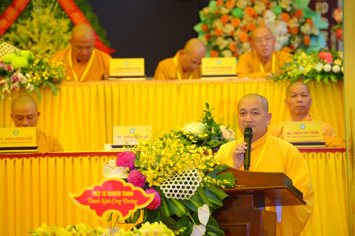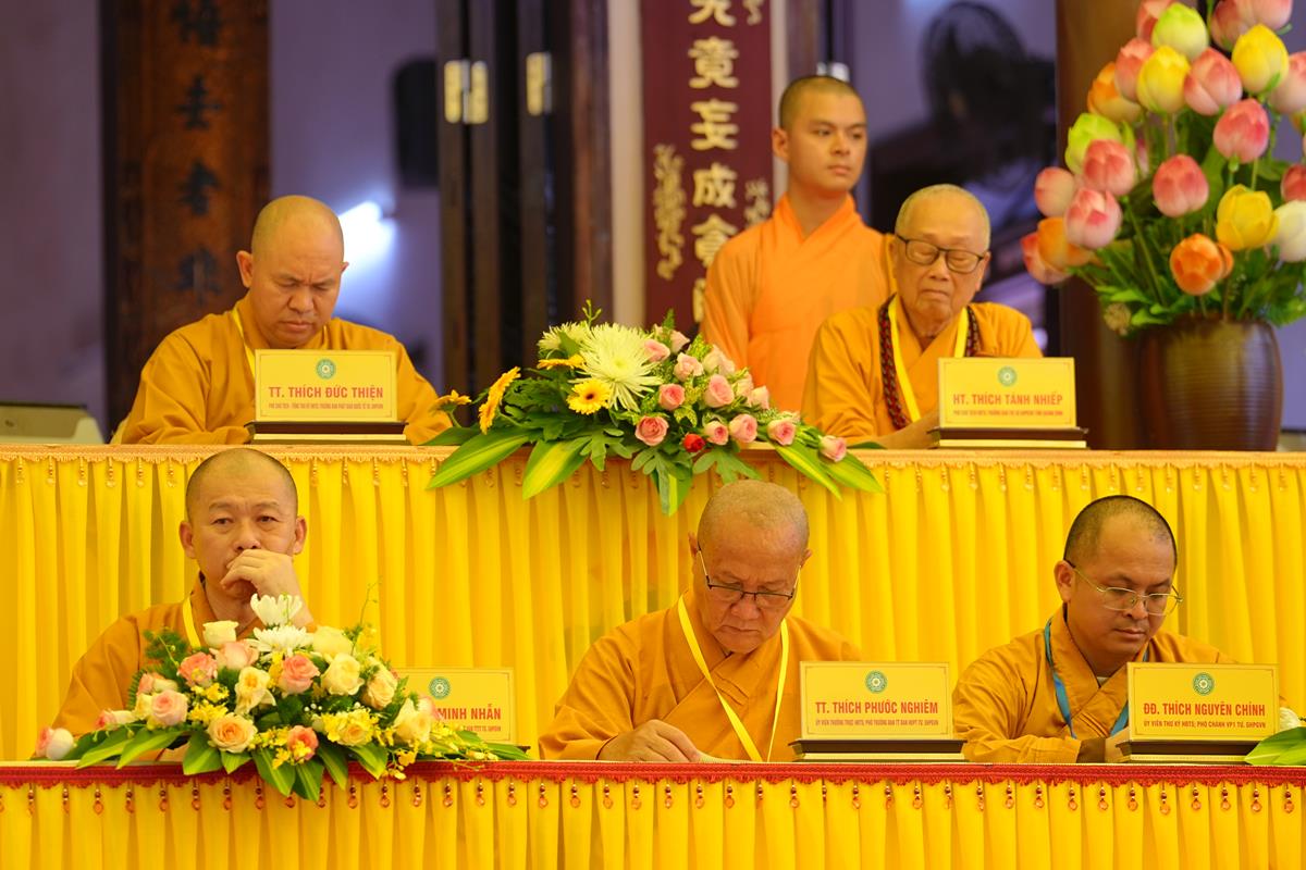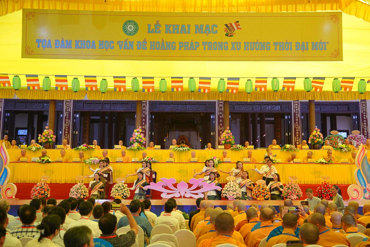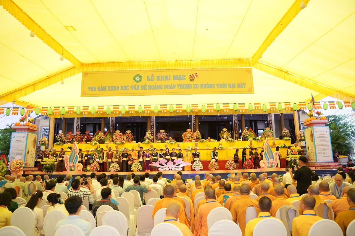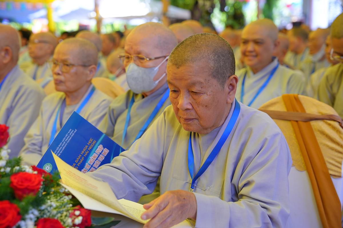 Sau chương trình lễ khai mạc, hội chúng đã lắng nghe 3 bài tham luận của Hòa thượng Thích Gia Quang – Phó chủ tịch HĐTS, Trưởng Ban thông tin truyền thông TW; Hòa thượng Thích Huệ Thông – Phó chủ tịch HĐTS, Trưởng Ban pháp chế TW và ông Bùi Hữu Dược – Nguyên Vụ trưởng Vụ Phật giáo Ban Tôn giáo Chính Phủ.