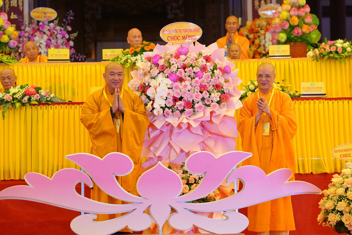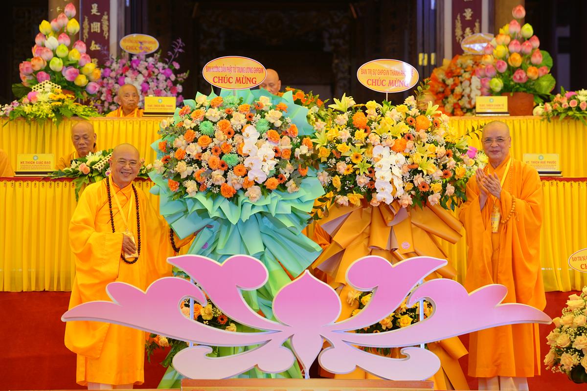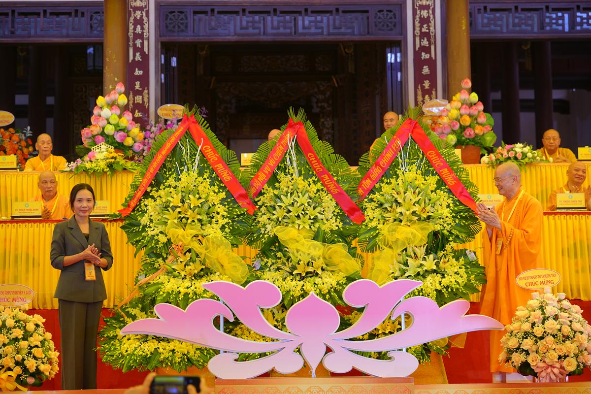 Ban tổ chức đã đón nhận những lẵng hoa tươi thắm của chư Tôn đức lãnh đạo GHPGVN và các cơ quan ban ngành gửi tới chúc mừng Tọa đàm.