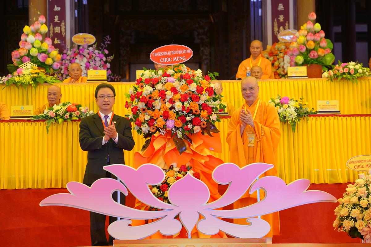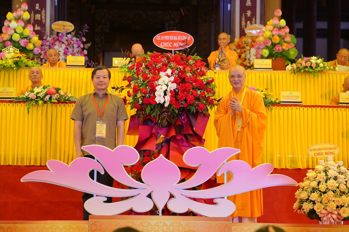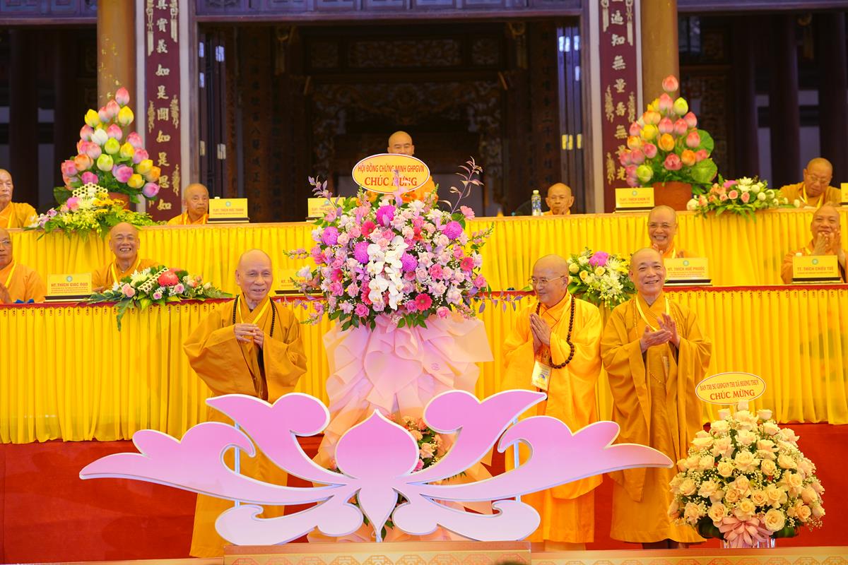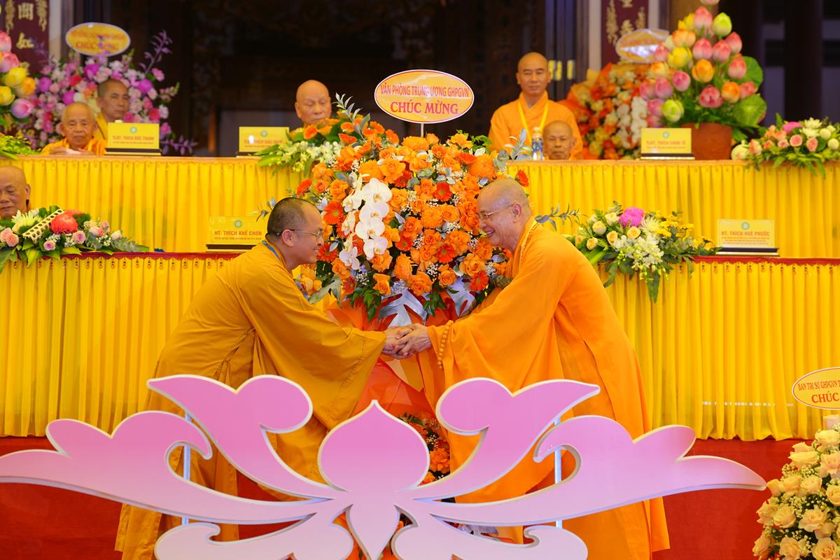 Ban tổ chức đã đón nhận những lẵng hoa tươi thắm của chư Tôn đức lãnh đạo GHPGVN và các cơ quan ban ngành gửi tới chúc mừng Tọa đàm.