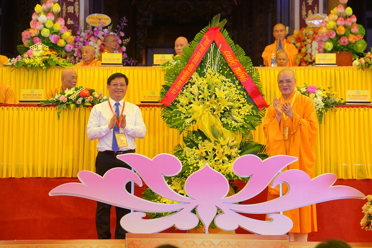 Nhân dịp này, ông Nguyễn Thanh Bình – Ủy viên thường vụ Thành ủy, Phó chủ tịch thường trực UBND thành phố Huế cũng đã đại diện cho lãnh đạo Thành phố phát biểu chúc mừng buổi lễ. Với vai trò là một trung tâm văn hóa Phật giáo quan trọng của cả nước, Thành phố Huế luôn trân trọng và đồng hành cùng các hoạt động nghiên cứu, đào tạo và phát triển Phật giáo, trong đó có công tác hoằng pháp. Ông nhận thấy, việc hỗ trợ, tạo điều kiện cho Phật giáo phát triển không chỉ là gìn giữ bản sắc truyền thống mà còn là góp phần xây dựng xã hội an lành, nhân văn, gắn bó đạo đời. UBND thành phố sẽ luôn đồng hành cùng Giáo hội trong các hoạt động hoằng pháp, nhất là trong các lĩnh vực giáo dục, giao lưu văn hóa quốc tế và giữ gìn di sản dân tộc. Ông tin tưởng Tọa đàm sẽ có nhiều ý kiến sâu sắc, những đề xuất mang tính chiến lược giúp GHPGVN có những định hướng tốt hơn trong công tác hoằng pháp trong thời đại mới, đặc biệt là ở môi trường Quốc tế, nơi Phật giáo Việt Nam đang từng bước khẳng định vị trí.
