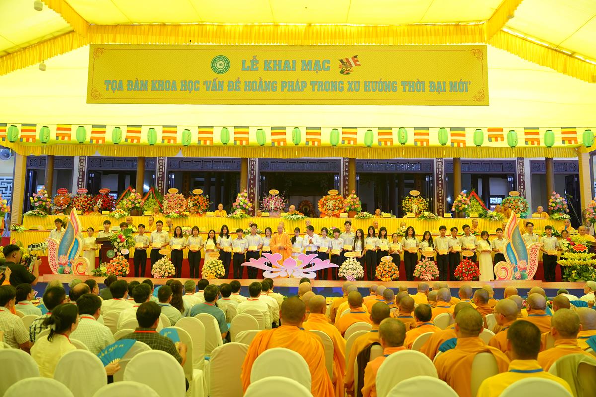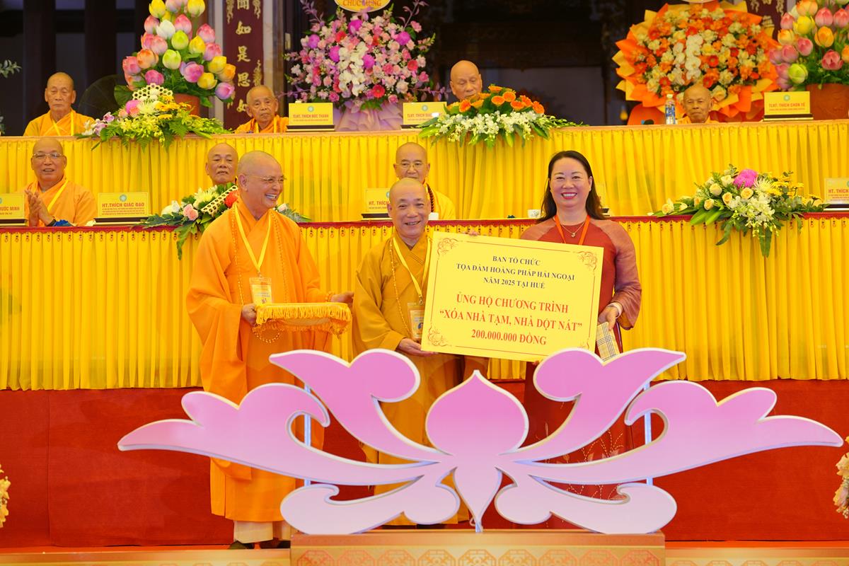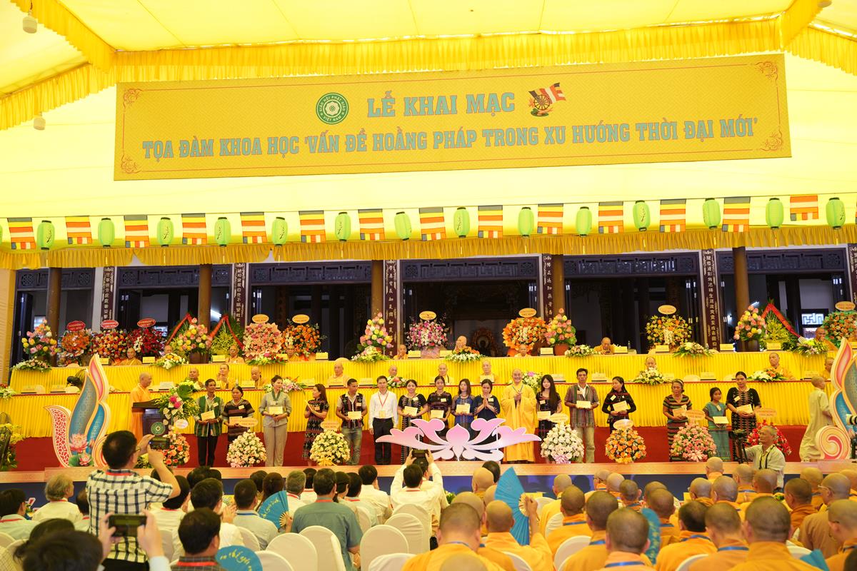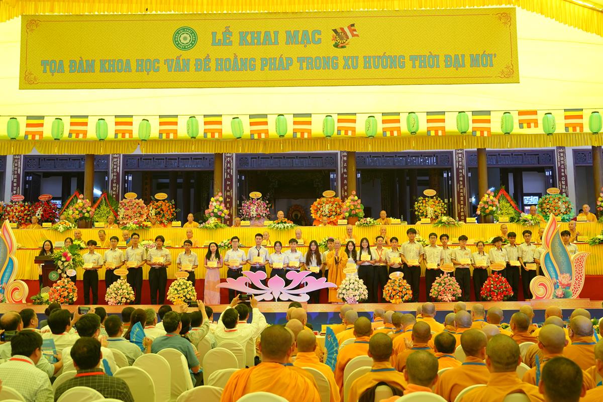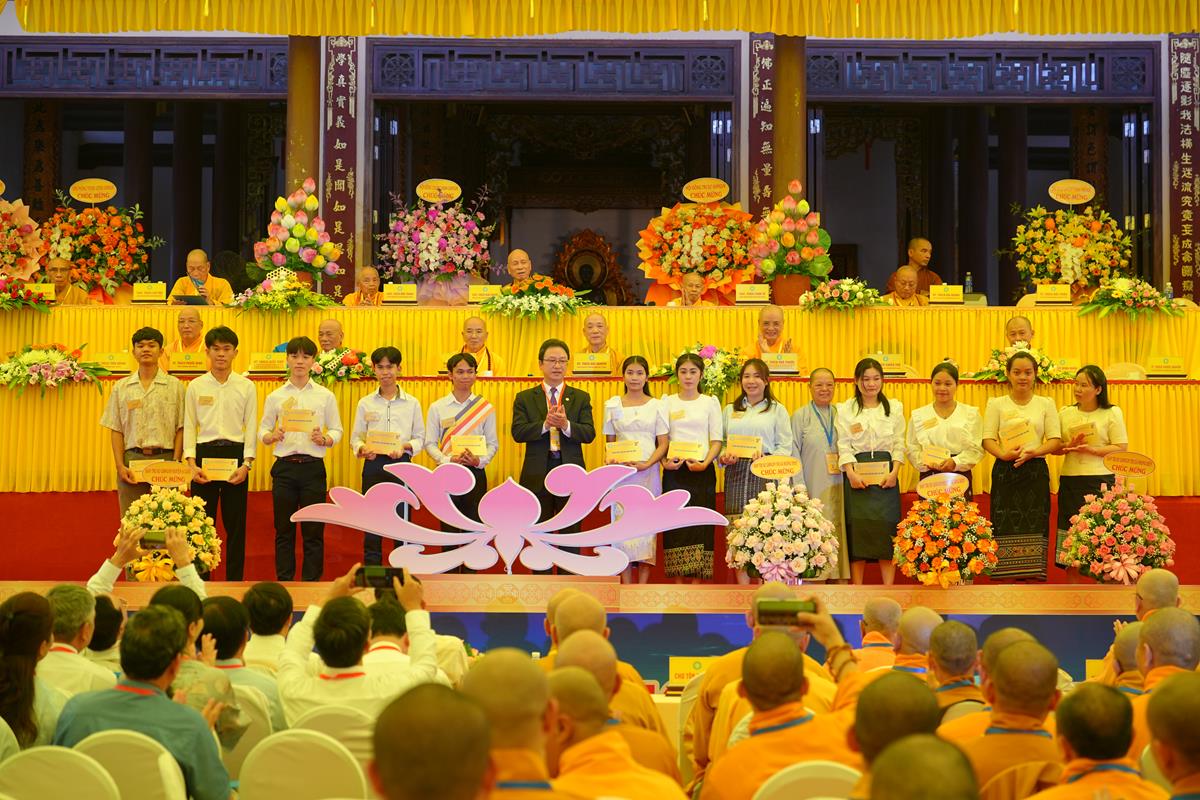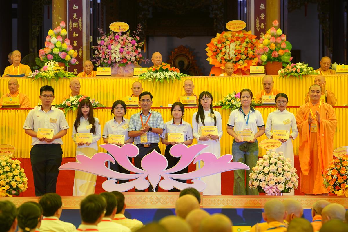 Với tấm lòng từ bi của Đạo Phật, nhân dịp này, Ban tổ chức đã trao tặng quà, trao học bổng cho học sinh giỏi quốc gia năm học 2024-2025, Giải Nhất Chung kết năm CT Đường lên đỉnh Olympia 2024, Giải Nhất Quý I năm CT Đường lên đỉnh Olympia 2025, Sinh viên Lào học ở Huế có hoàn cảnh khó khăn, Phật tử dân tộc thiểu số có hoàn cảnh khó khăn, Ủng hộ chương trình xóa nhà tạm, nhà dột nát; với tổng giá trị hơn 500 triệu đồng. Đồng thời trao giấy chứng nhận cho quý Tăng Ni, và những học giả đã gửi bài tham luận cho chương trình.