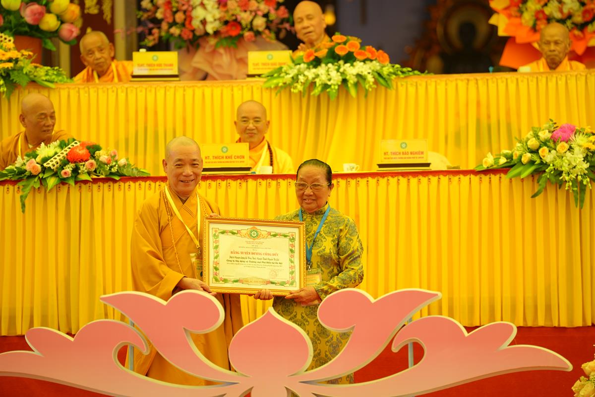 Đặc biệt, tại buổi tọa đàm, HĐTS GHPGVN đã trao bằng tuyên dương công đức cho các cá nhân các Phật tử tham gia trợ duyên cho chương trình Tọa đàm lần này.