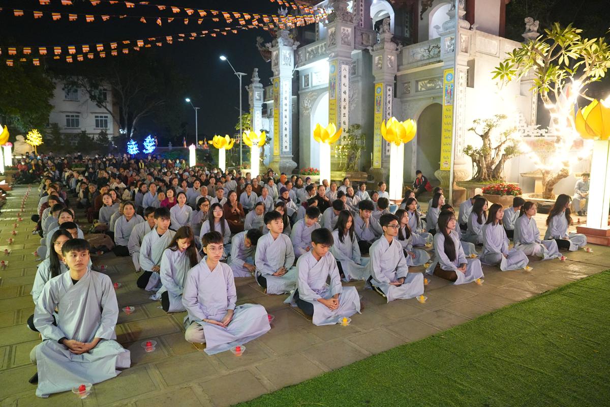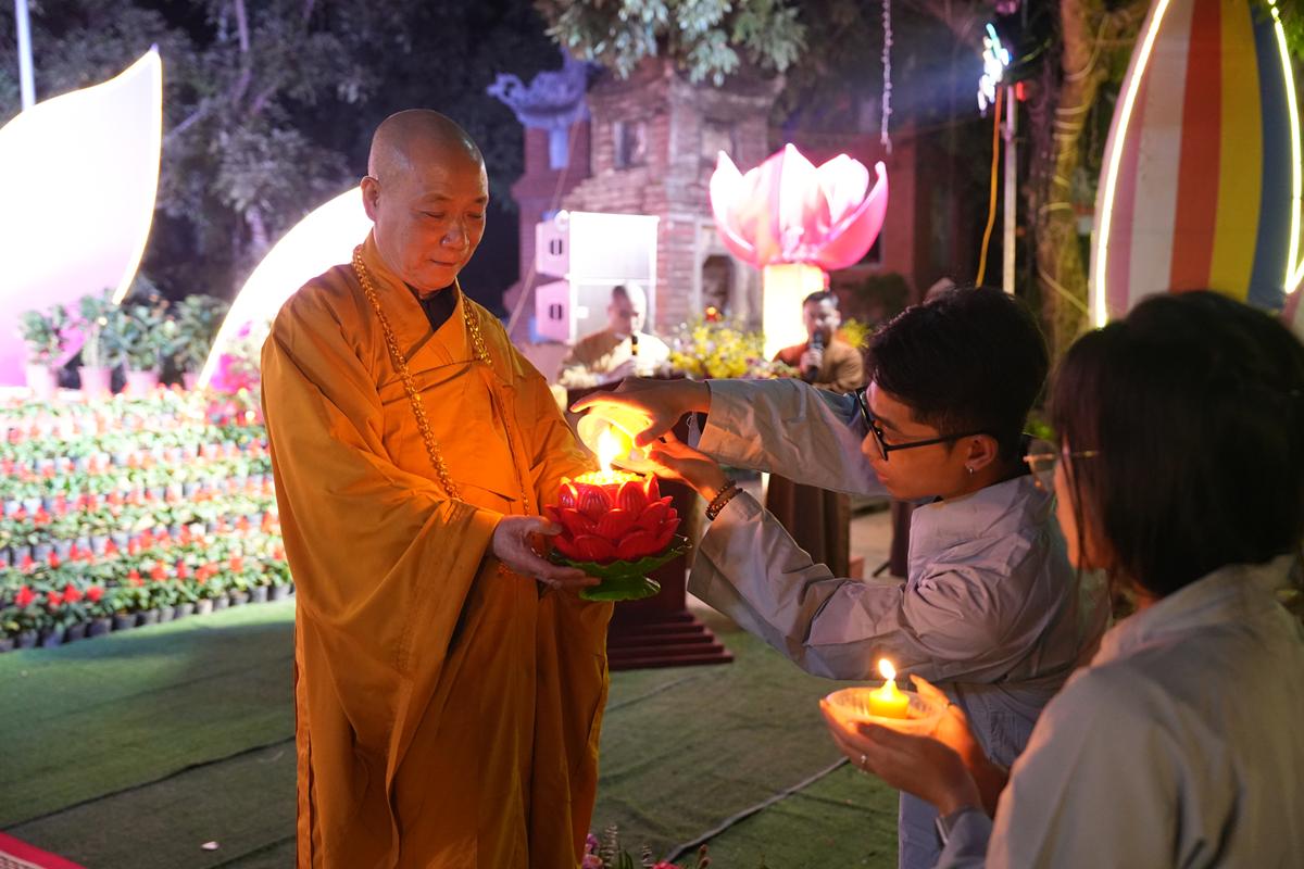 Chứng minh buổi lễ có: Hòa thượng Thích Bảo Nghiêm – Phó chủ tịch HĐTS, Trưởng ban Hoằng pháp TW; Thượng tọa Thích Thiện Tài – Giảng sư đoàn GHPGVN thành phố Hà Nội; Thượng tọa trụ trì Thích Quảng Hòa – Trưởng ban tổ chức đêm hội; Ni sư Thích Đàm Thành – Ủy viên thường trực kiêm Phó thư ký Phân ban Ni giới TW cùng đại diện Chư tôn đức Tăng Ni đến từ các chùa lân cận.