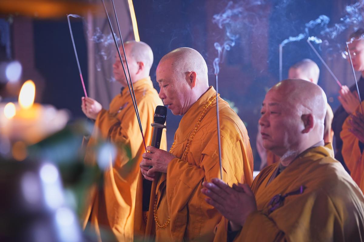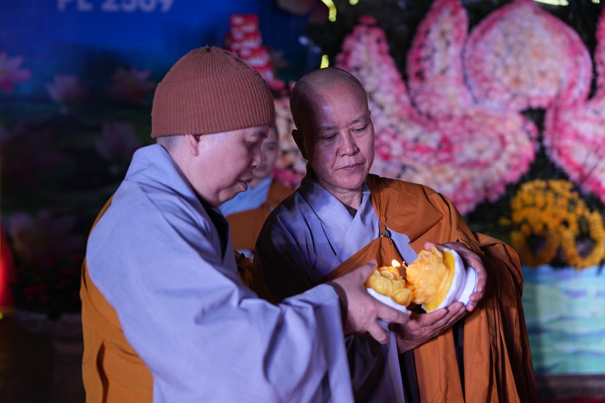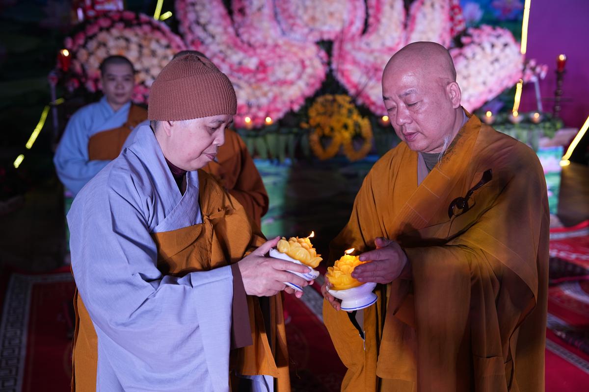 Tiếp theo chương trình là nghi thức dâng hương của chư tôn đức chứng minh. Và giây phút thiêng liêng nhất của buổi lễ được hàng Phật tử mong chờ nhất, chính là nghi thức truyền đăng. Hòa thượng Thích Bảo Nghiêm đã đón nhận ánh sáng trí tuệ từ bàn thờ Phật, và truyền trao tới chư tôn đức Tăng Ni cùng hàng Phật tử. Từng ngọn nến được thắp lên, tỏ rạng không gian bao la rộng lớn. Trong đêm đông lạnh giá, nguồn ánh sáng ấy sưởi ấm mỗi người con Phật, ánh lên niềm tin, sự thông tuệ, như nguồn sáng của trí tuệ tỉnh thức phá tan đi màn vô minh si ám.