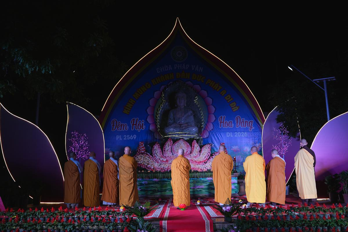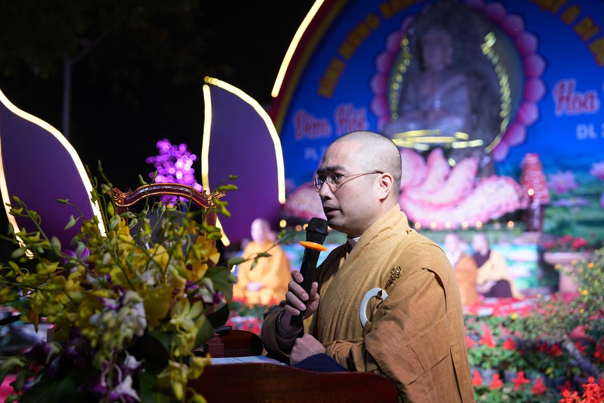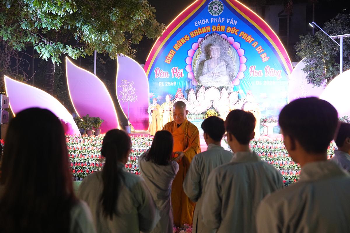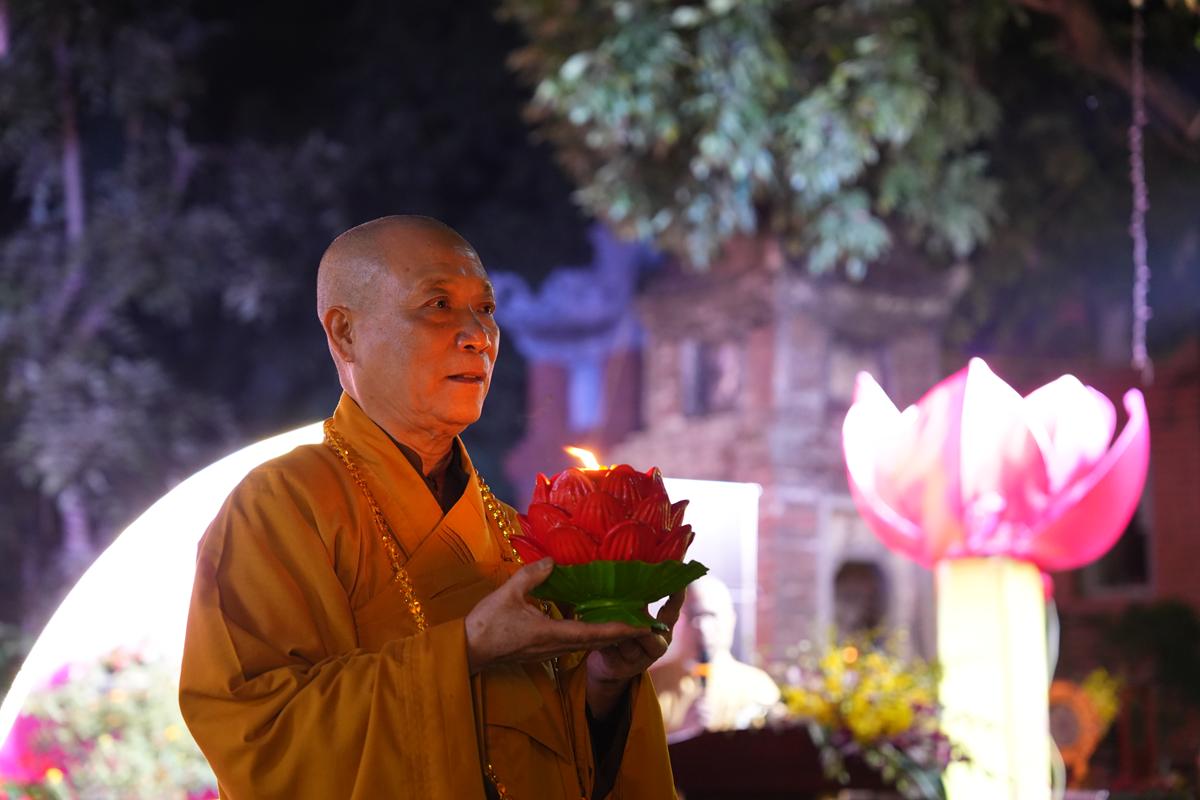 Khép lại lời đạo từ, Hòa thượng sách tấn đại chúng “Nguyện cho ánh sáng hoa đăng đêm nay không chỉ lung linh nơi pháp hội, mà còn được thắp sáng mãi trong tâm mỗi người con Phật, để trên từng bước đi của đời sống, chúng ta luôn nhớ về lý tưởng giác ngộ, về hạnh nguyện vãng sinh, và về con đường an lạc mà chư Phật, chư Tổ đã mở ra cho tất cả chúng sinh”.