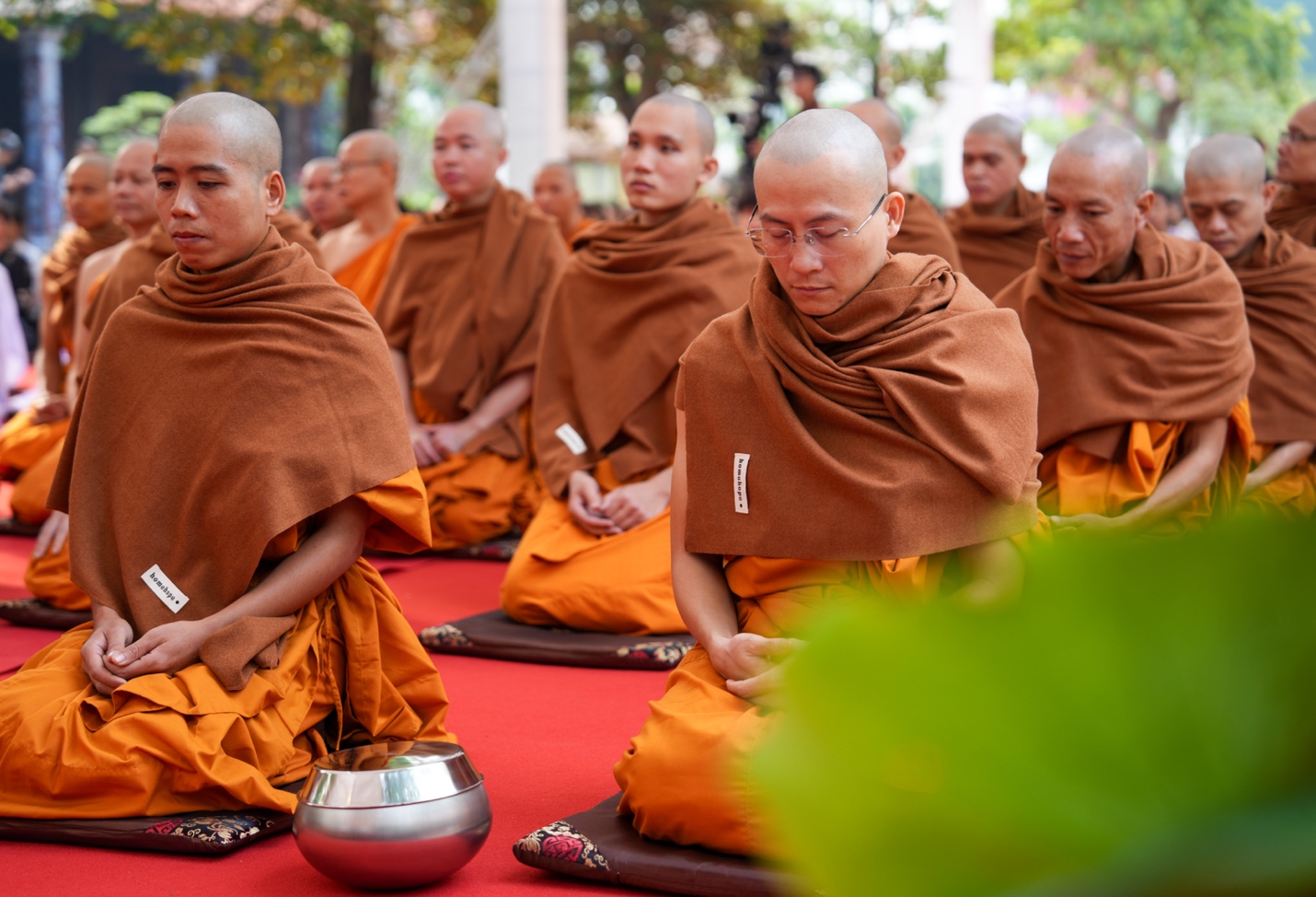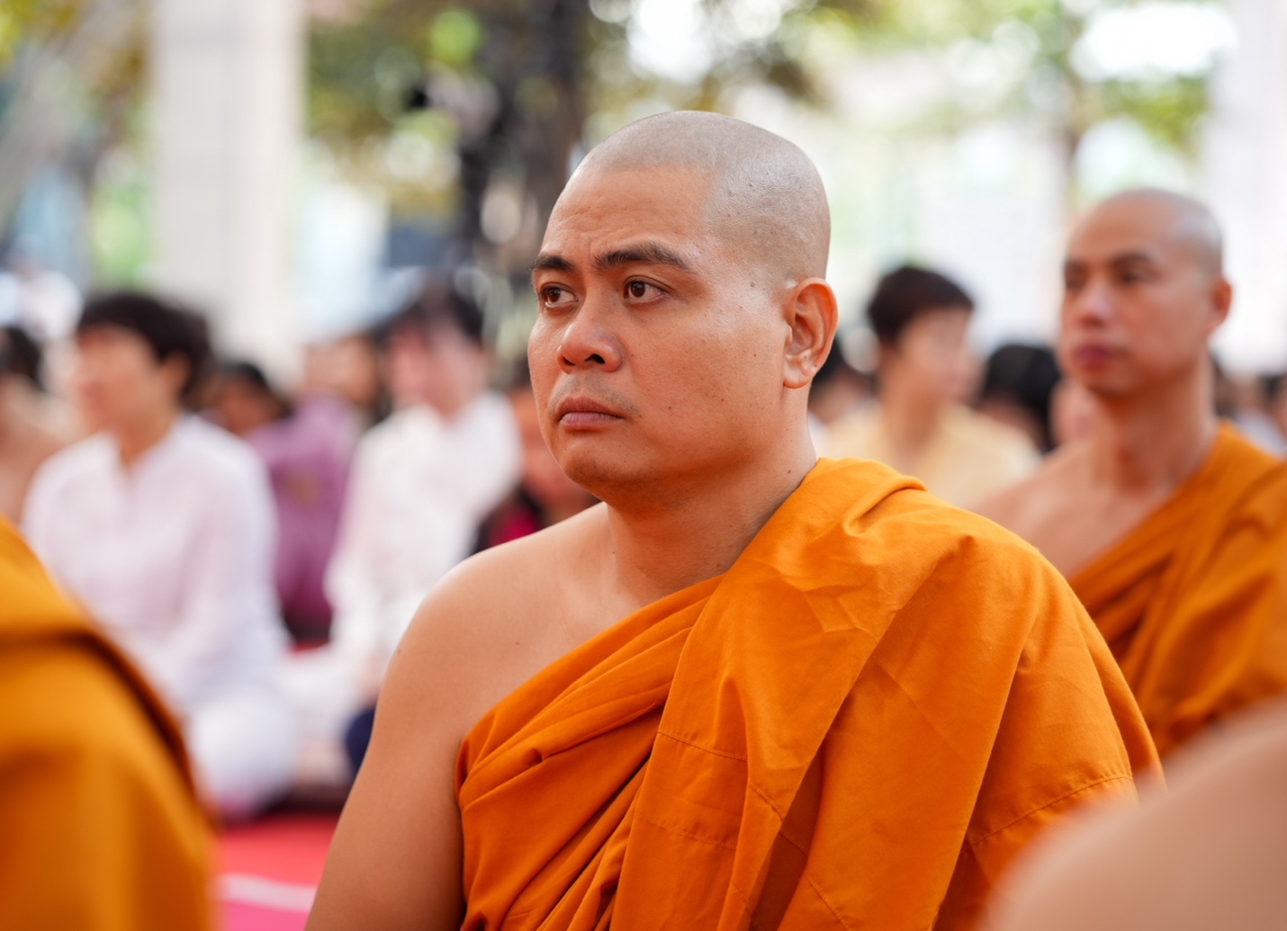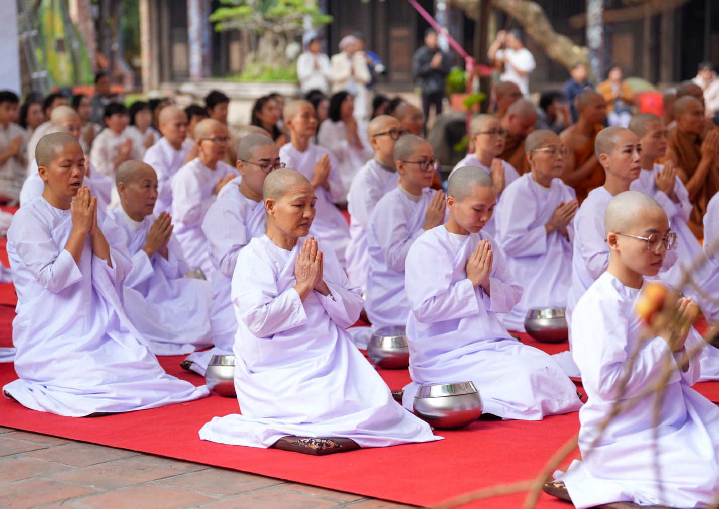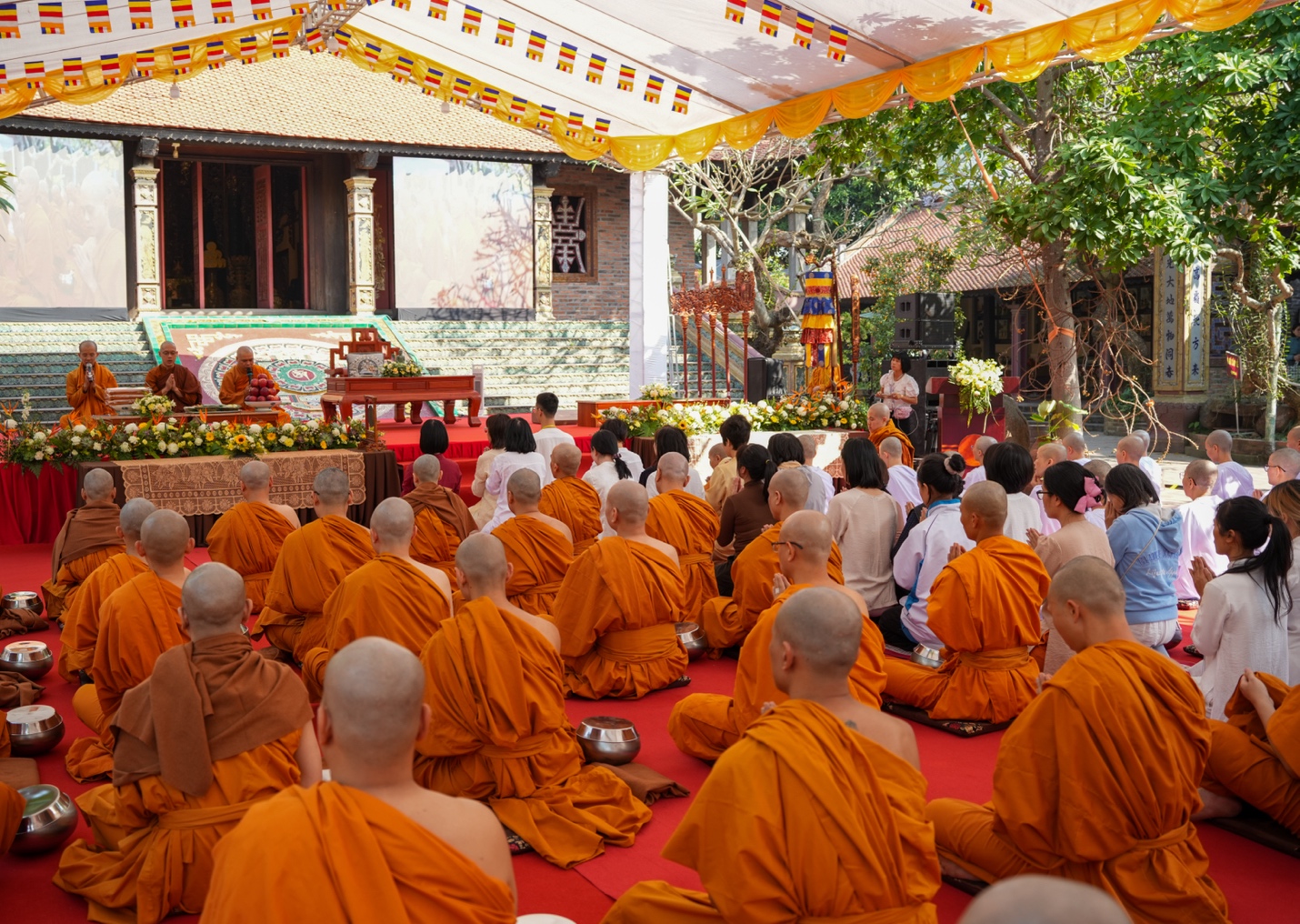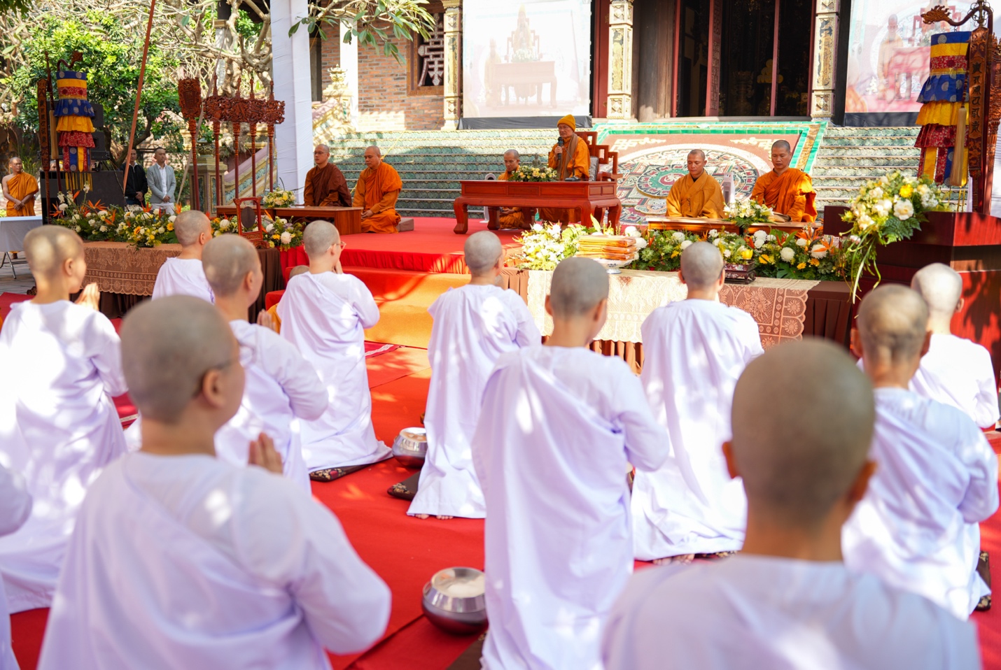 Trong không khí trang nghiêm và thanh tịnh, chư tôn đức Tăng đã cử hành nghi thức xuất gia gieo duyên cho các thiền sinh. 60 hành giả đồng quỳ trước Tam bảo, chắp tay trang nghiêm, lắng nghe lời chỉ dạy của chư Tôn đức về ý nghĩa của việc phát tâm xuất gia gieo duyên, buông bỏ nếp sống thường nhật để bước vào đời sống phạm hạnh trong một khoảng thời gian nhất định.
