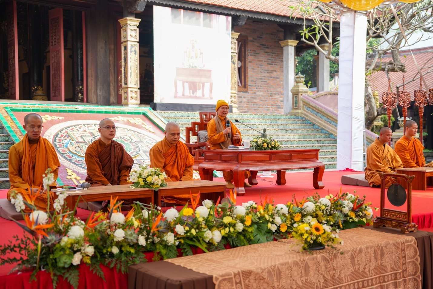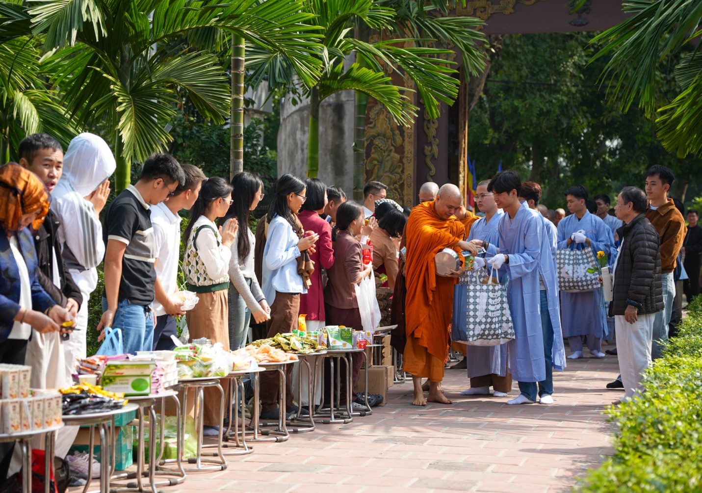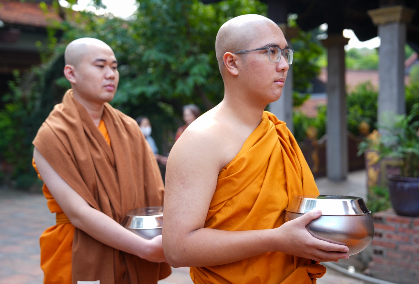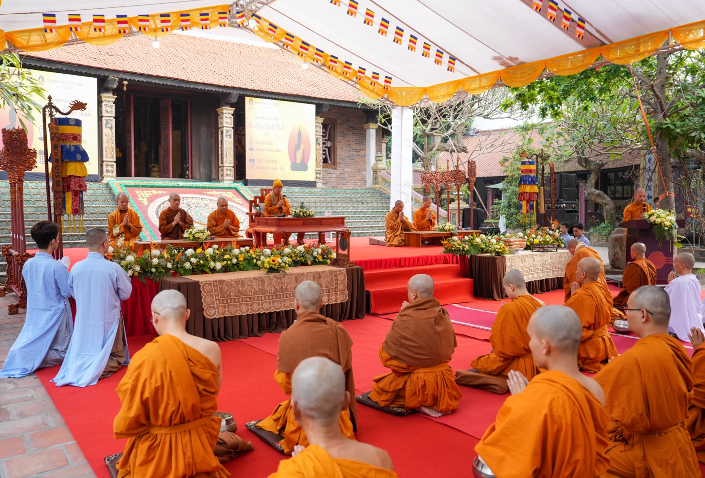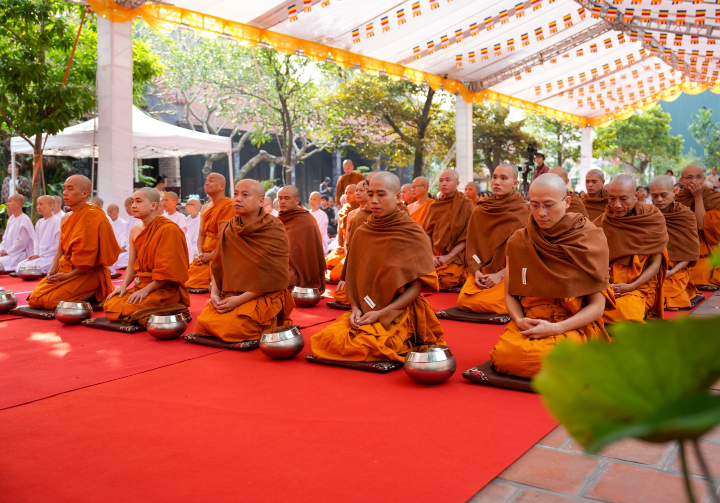 Trong không khí trang nghiêm và thanh tịnh, chư tôn đức Tăng đã cử hành nghi thức xuất gia gieo duyên cho các thiền sinh. 60 hành giả đồng quỳ trước Tam bảo, chắp tay trang nghiêm, lắng nghe lời chỉ dạy của chư Tôn đức về ý nghĩa của việc phát tâm xuất gia gieo duyên, buông bỏ nếp sống thường nhật để bước vào đời sống phạm hạnh trong một khoảng thời gian nhất định.