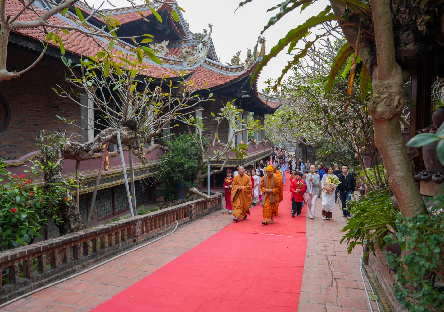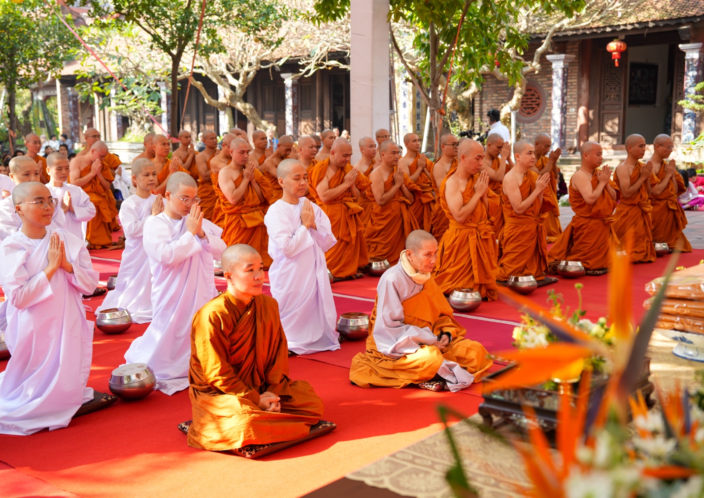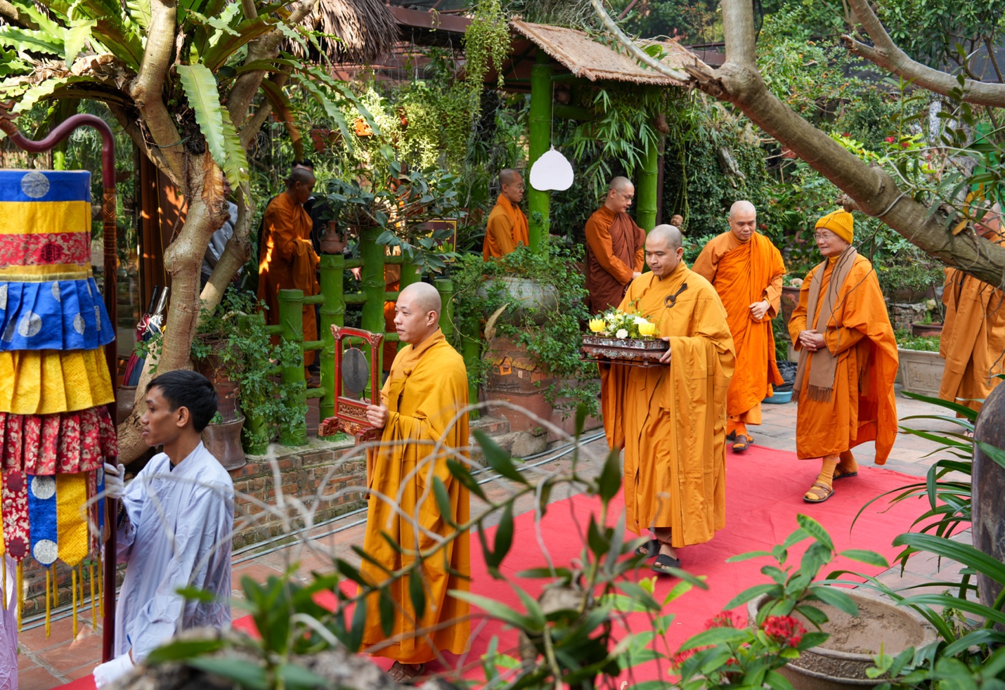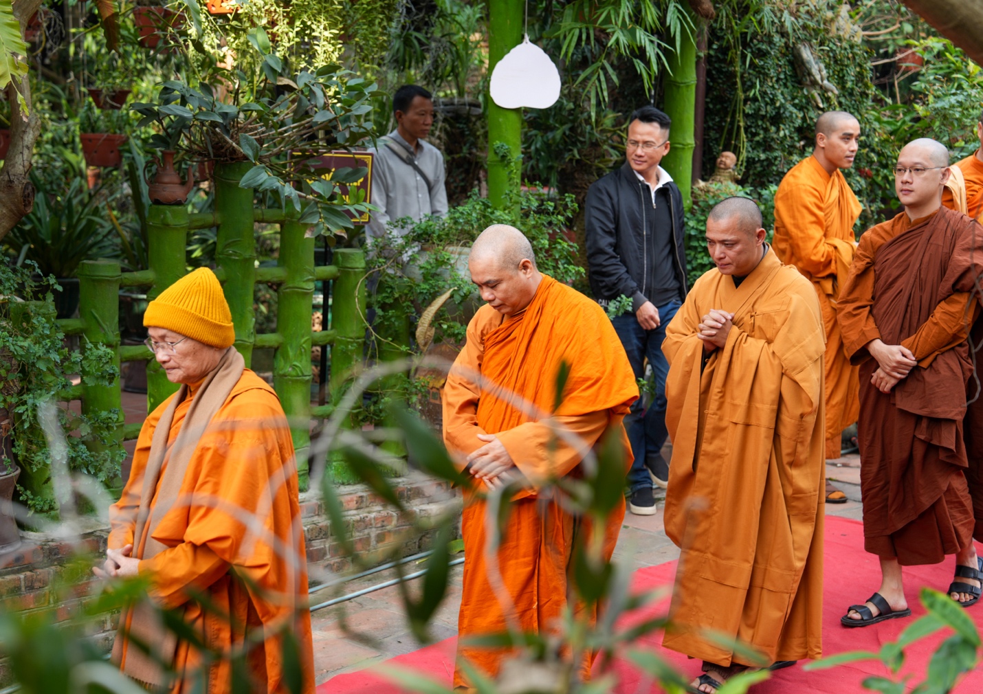 Trong không khí trang nghiêm và thanh tịnh, chư tôn đức Tăng đã cử hành nghi thức xuất gia gieo duyên cho các thiền sinh. 60 hành giả đồng quỳ trước Tam bảo, chắp tay trang nghiêm, lắng nghe lời chỉ dạy của chư Tôn đức về ý nghĩa của việc phát tâm xuất gia gieo duyên, buông bỏ nếp sống thường nhật để bước vào đời sống phạm hạnh trong một khoảng thời gian nhất định.