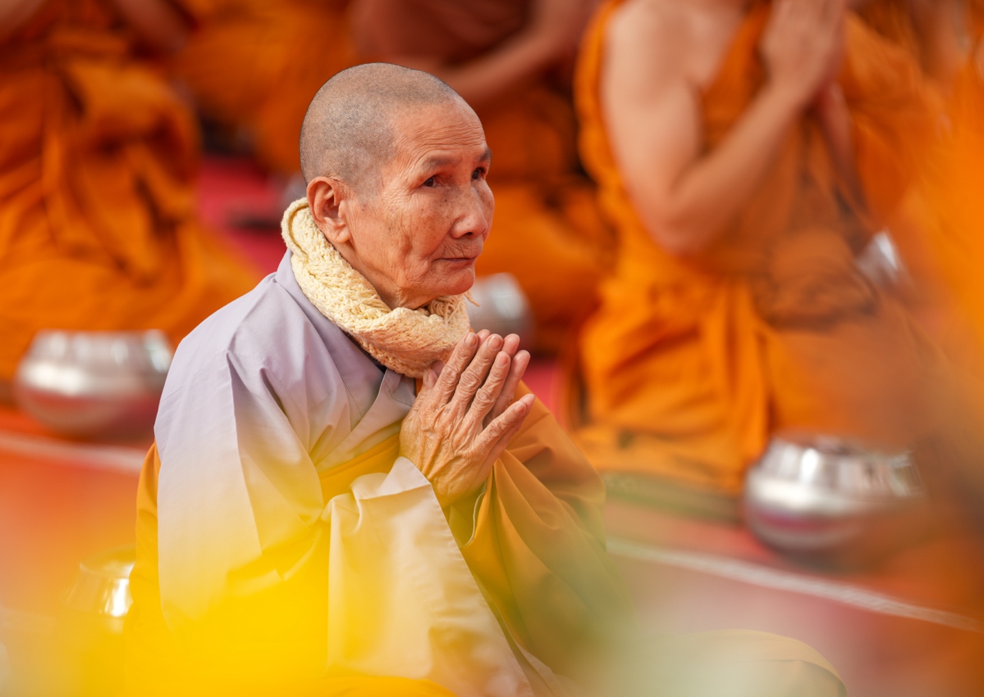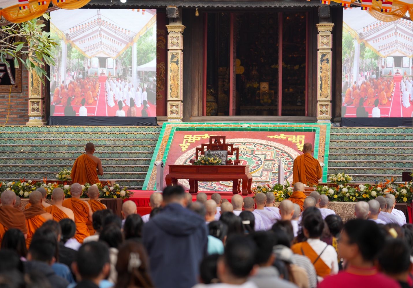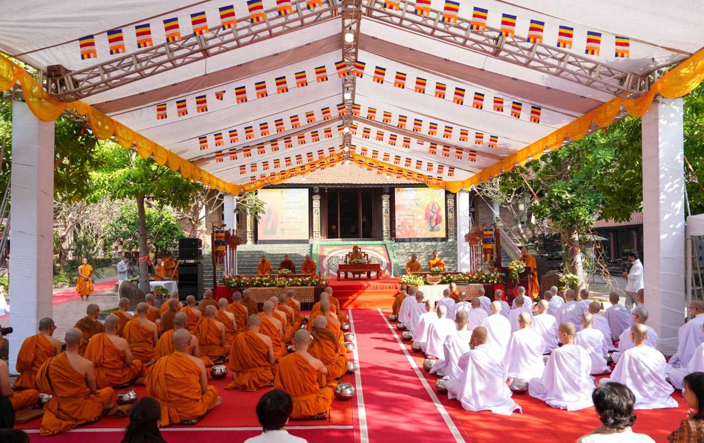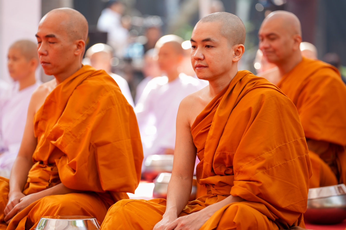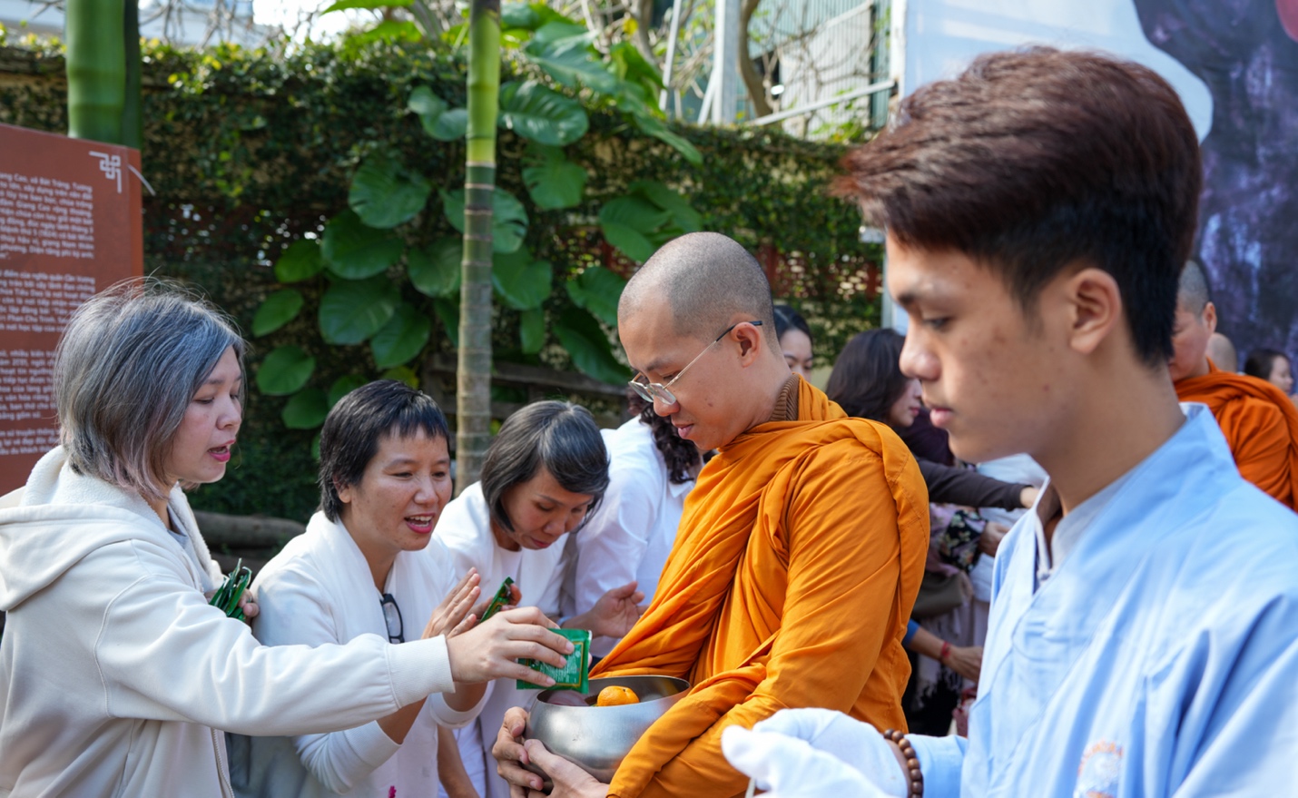 Trong không khí trang nghiêm và thanh tịnh, chư tôn đức Tăng đã cử hành nghi thức xuất gia gieo duyên cho các thiền sinh. 60 hành giả đồng quỳ trước Tam bảo, chắp tay trang nghiêm, lắng nghe lời chỉ dạy của chư Tôn đức về ý nghĩa của việc phát tâm xuất gia gieo duyên, buông bỏ nếp sống thường nhật để bước vào đời sống phạm hạnh trong một khoảng thời gian nhất định.