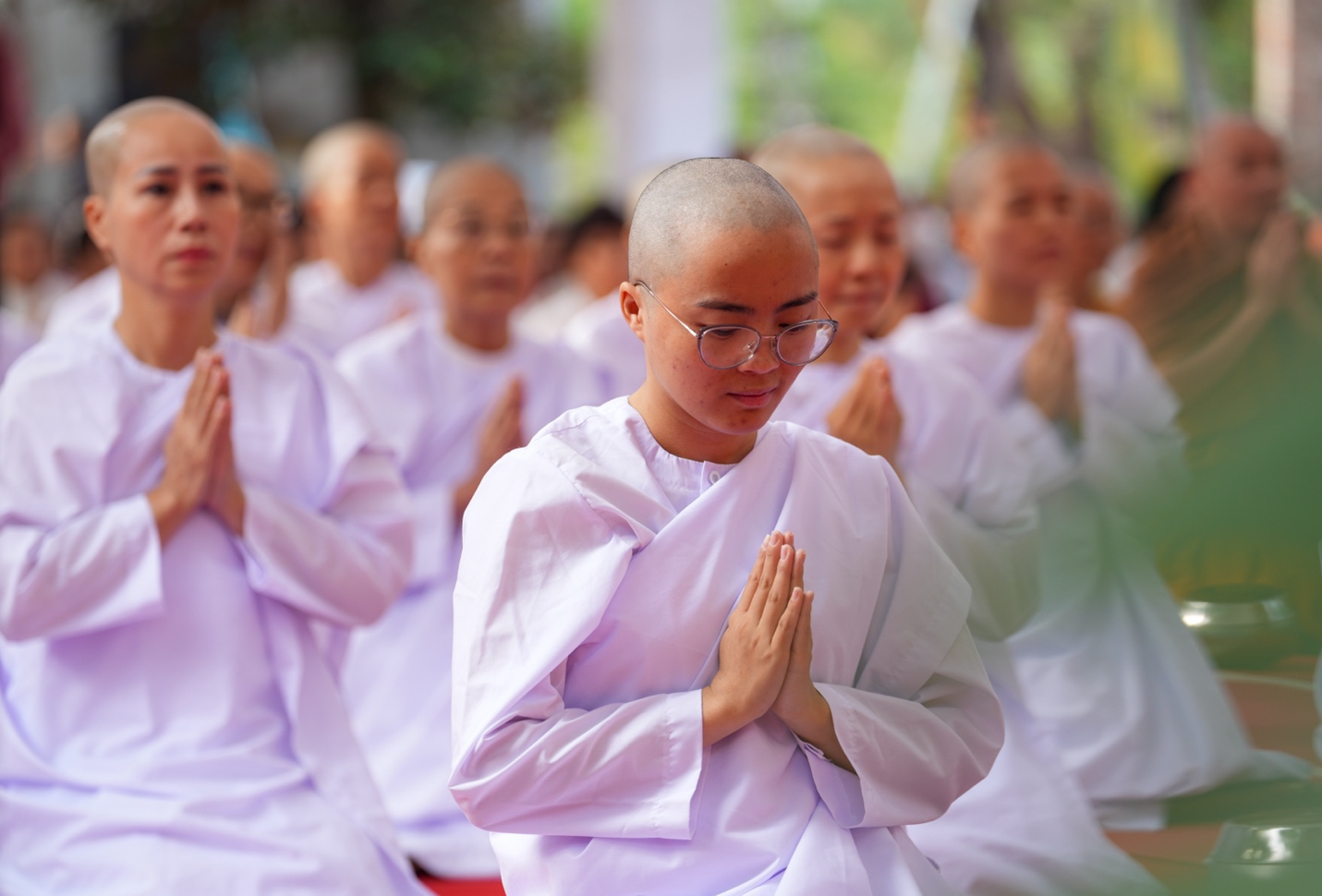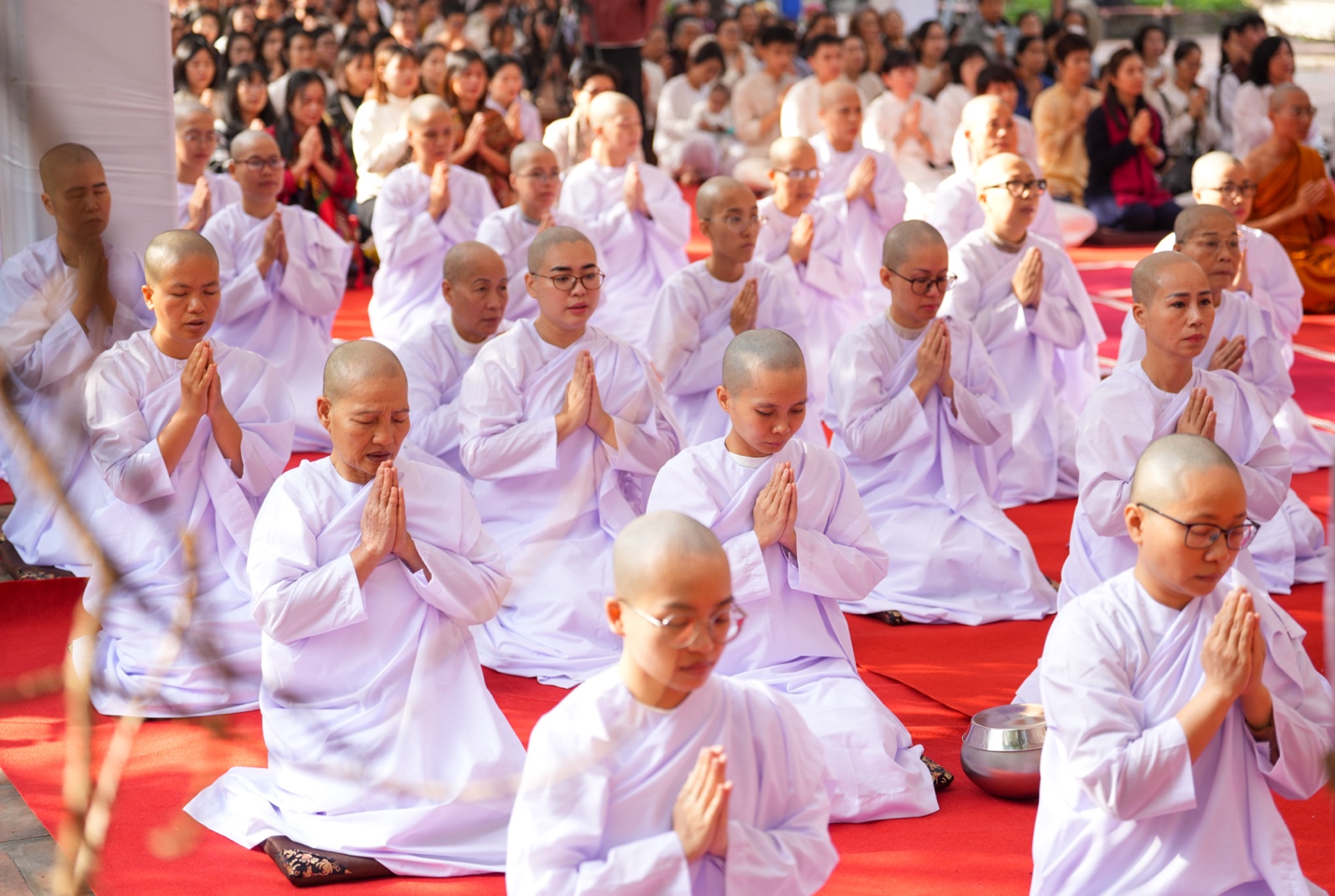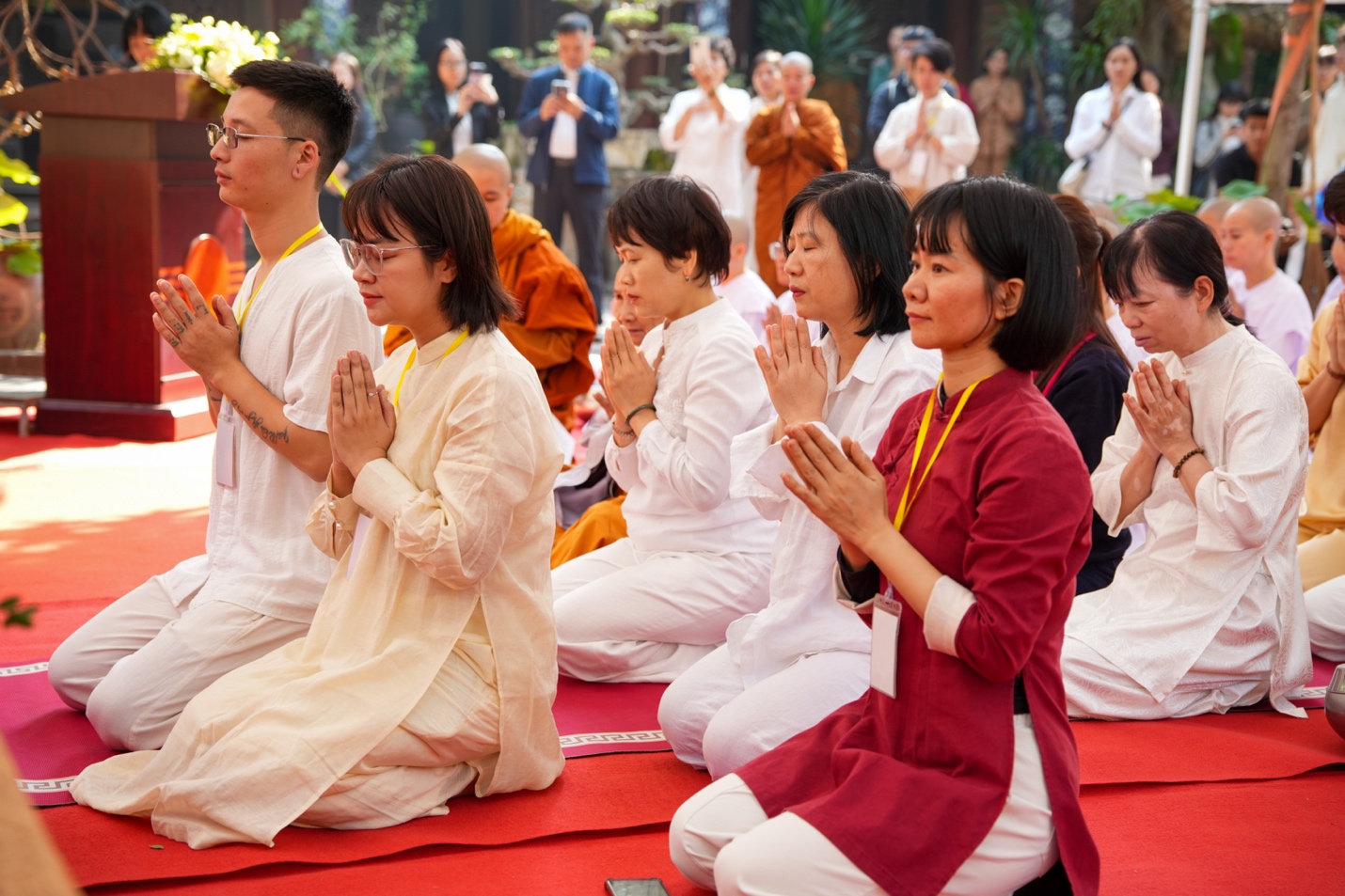 Tiếp theo chương trình đại chúng đồng tụng niệm danh hiệu Đức Phật Bản Sư Thích Ca Mâu Ni, trì tụng giới pháp và phát nguyện sống trọn vẹn với oai nghi giới hạnh trong suốt thời gian tham dự khóa tu. Nghi thức thế phát, thọ giới và phát nguyện được diễn ra theo truyền thống Phật giáo, trong bầu không khí trang trọng, lắng đọng, giúp mỗi thiền sinh cảm nhận sâu sắc hơn nhân duyên thù thắng được khoác lên mình màu áo giải thoát, gieo trồng hạt giống Bồ Đề trên con đường tu tập về sau.