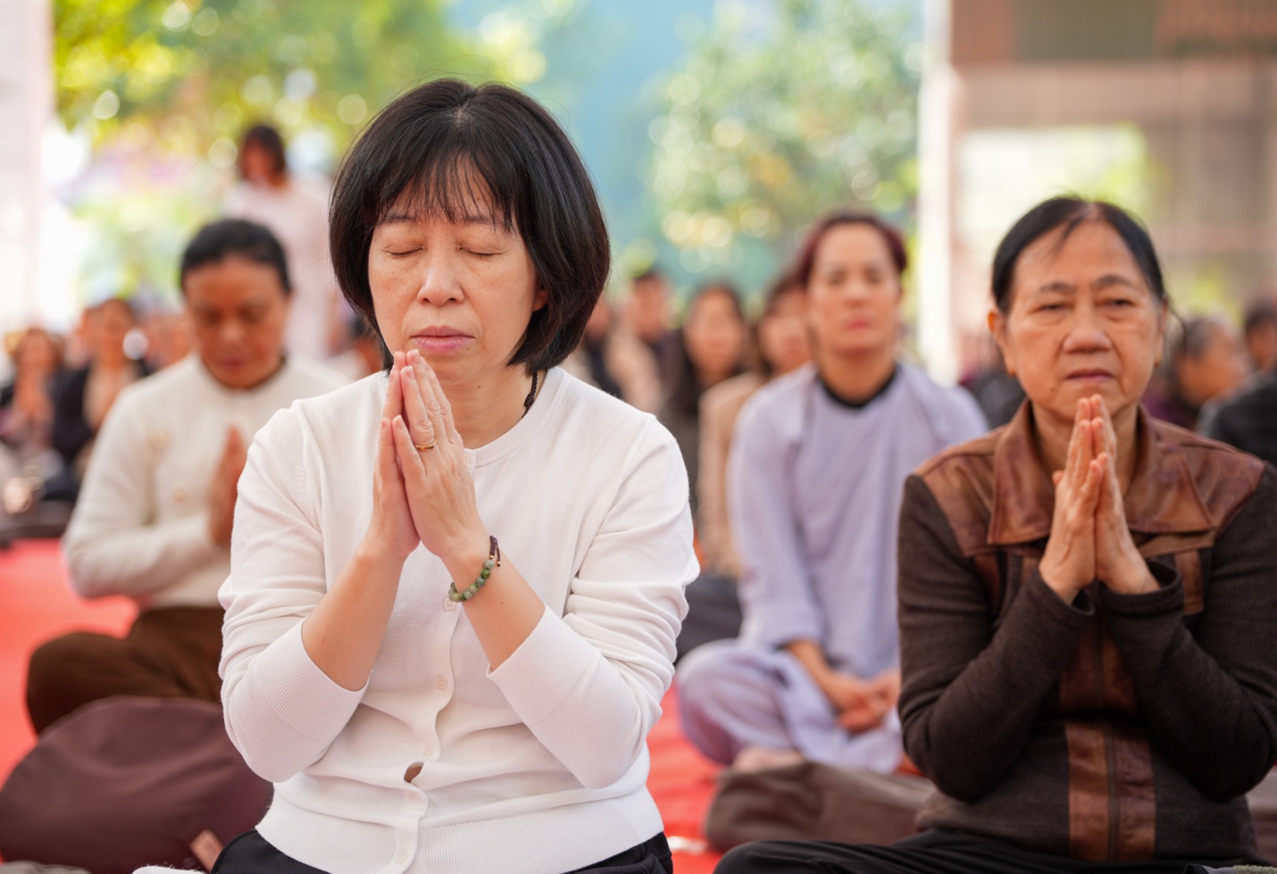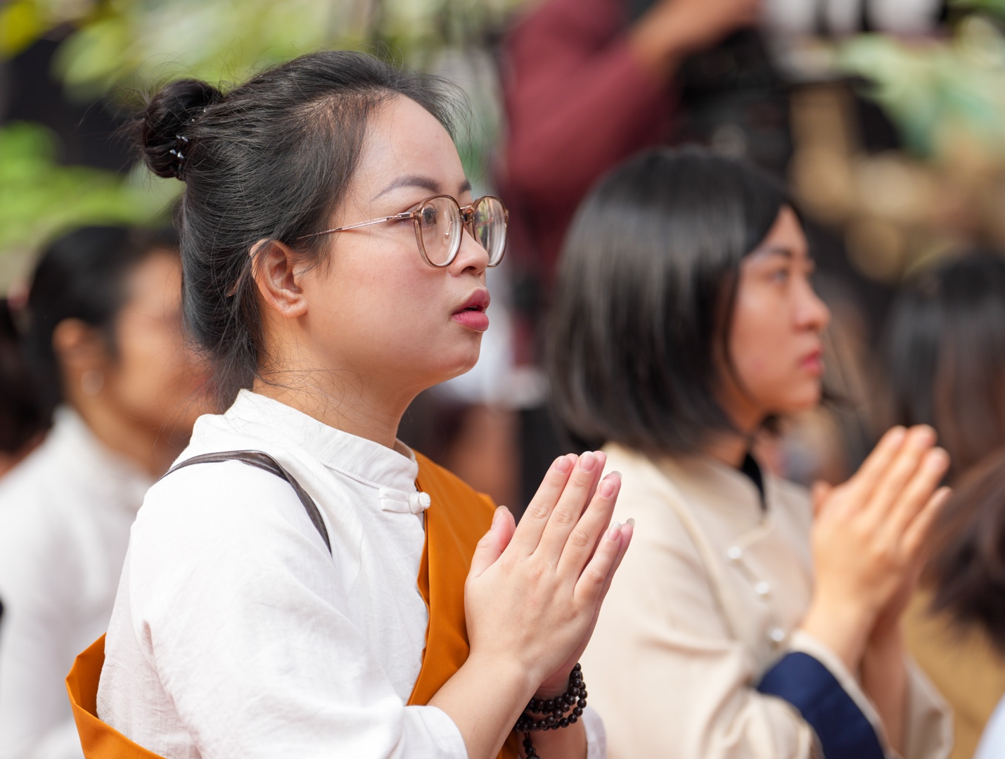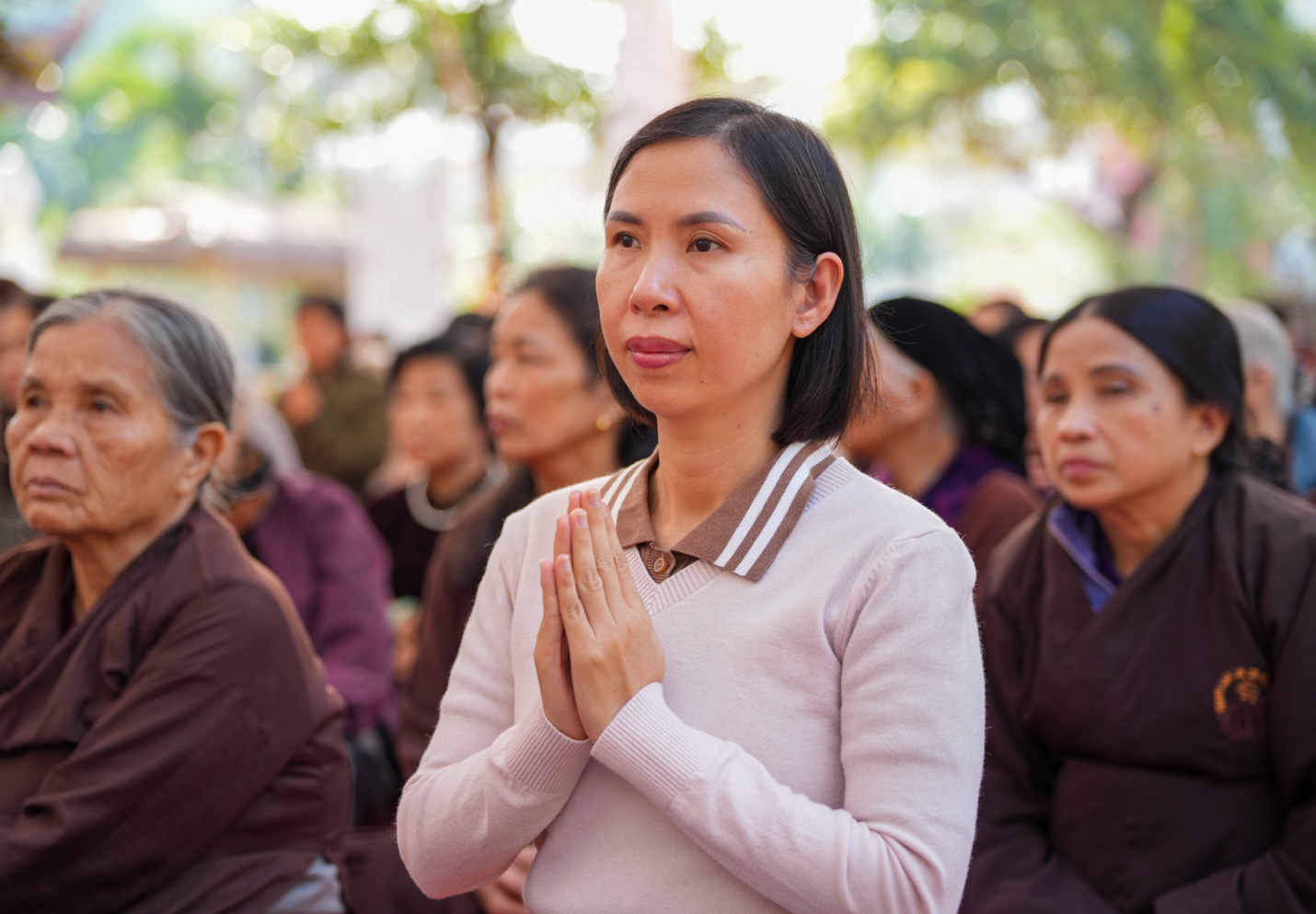 Tiếp theo chương trình đại chúng đồng tụng niệm danh hiệu Đức Phật Bản Sư Thích Ca Mâu Ni, trì tụng giới pháp và phát nguyện sống trọn vẹn với oai nghi giới hạnh trong suốt thời gian tham dự khóa tu. Nghi thức thế phát, thọ giới và phát nguyện được diễn ra theo truyền thống Phật giáo, trong bầu không khí trang trọng, lắng đọng, giúp mỗi thiền sinh cảm nhận sâu sắc hơn nhân duyên thù thắng được khoác lên mình màu áo giải thoát, gieo trồng hạt giống Bồ Đề trên con đường tu tập về sau.