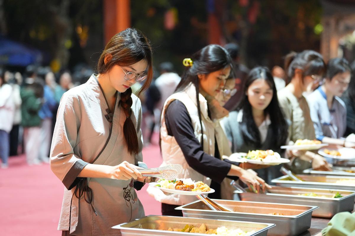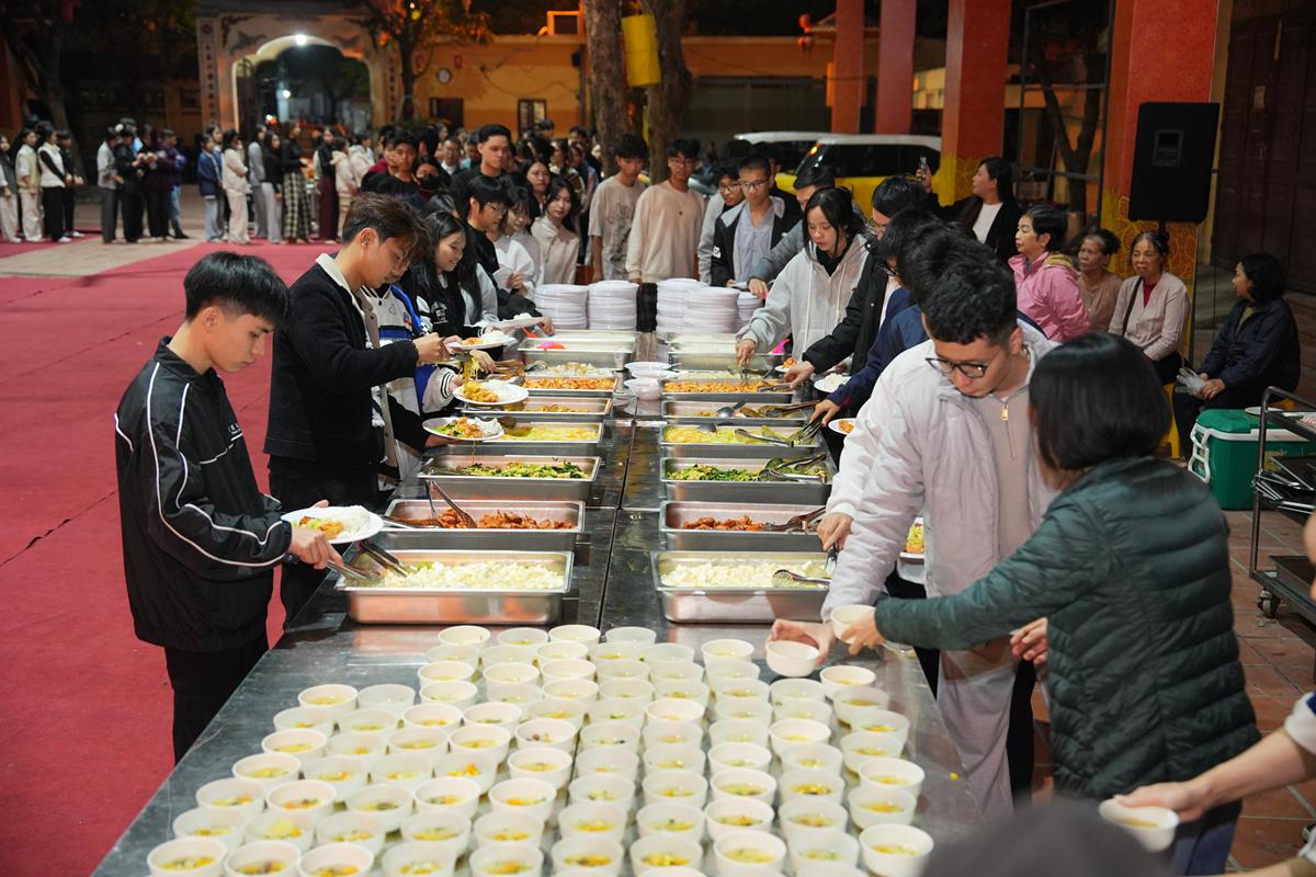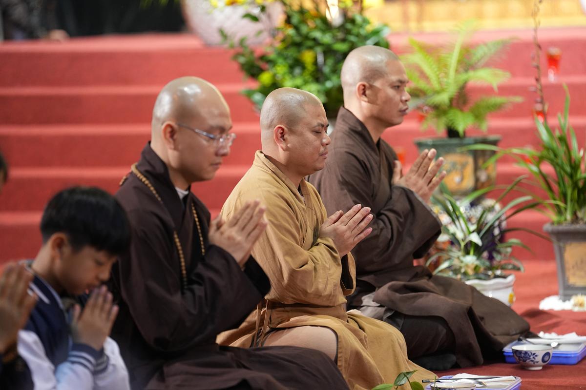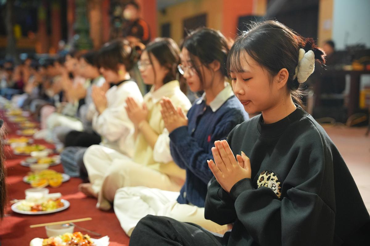 Trước khi dùng bữa, đối trước Phật đài trang nghiêm, dưới sự chủ trì và hướng dẫn của Hòa thượng trụ trì Thích Bảo Nghiêm – Phó Chủ tịch Hội đồng Trị sự GHPGVN, Trưởng ban Hoằng pháp Trung ương, Trưởng ban Trị sự GHPGVN TP. Hà Nội, các khóa sinh đã thực hiện nghi thức phụng thỉnh Tổ tiên đầy thiêng liêng.