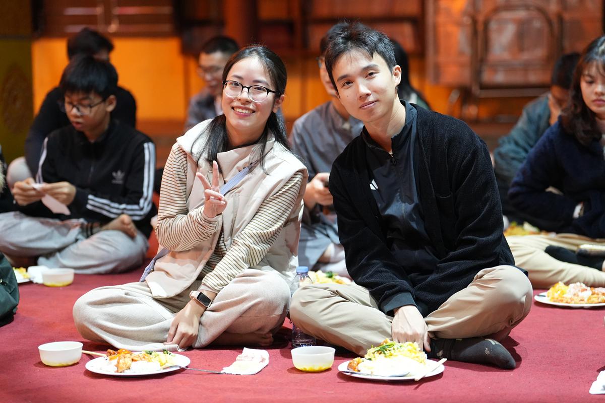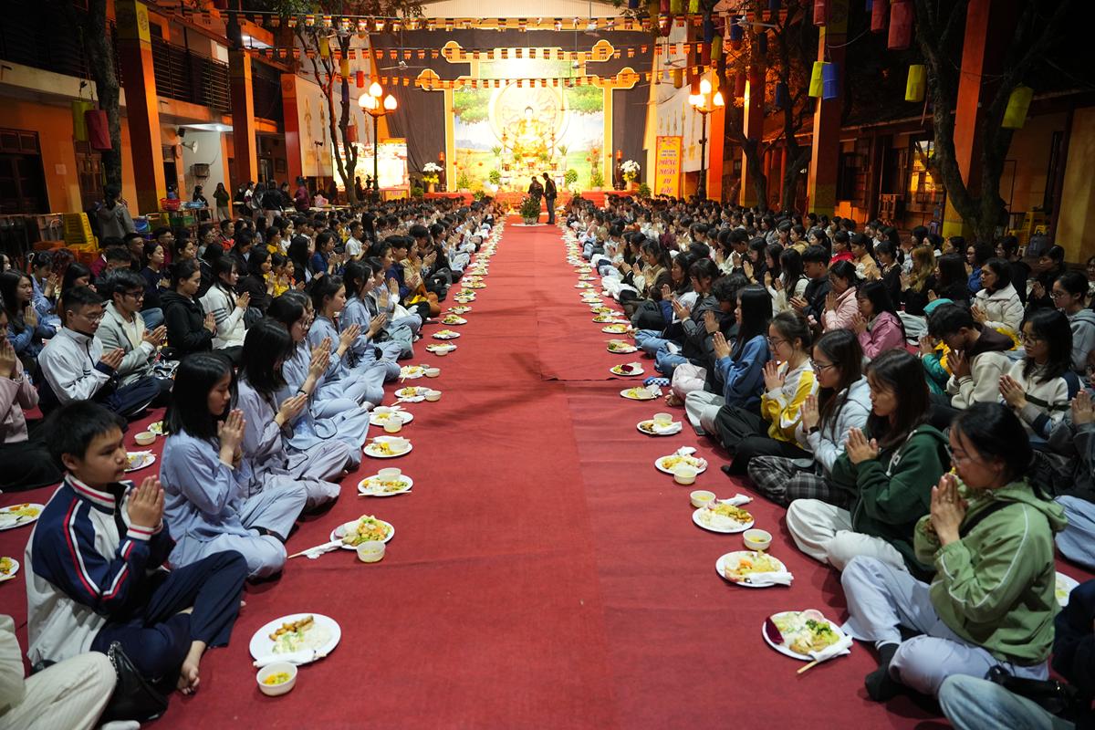 Khóa tu bắt đầu vào cuối giờ chiều, sau khi nhận phòng nghỉ, lắng nghe Ban tổ chức phổ biến nội quy khóa tu, các khóa sinh đã cùng nhau dùng bữa cơm chay cuối năm đầy an lành.