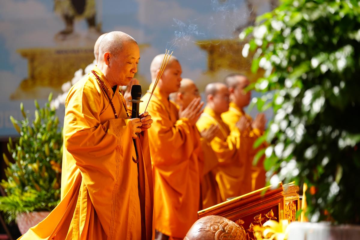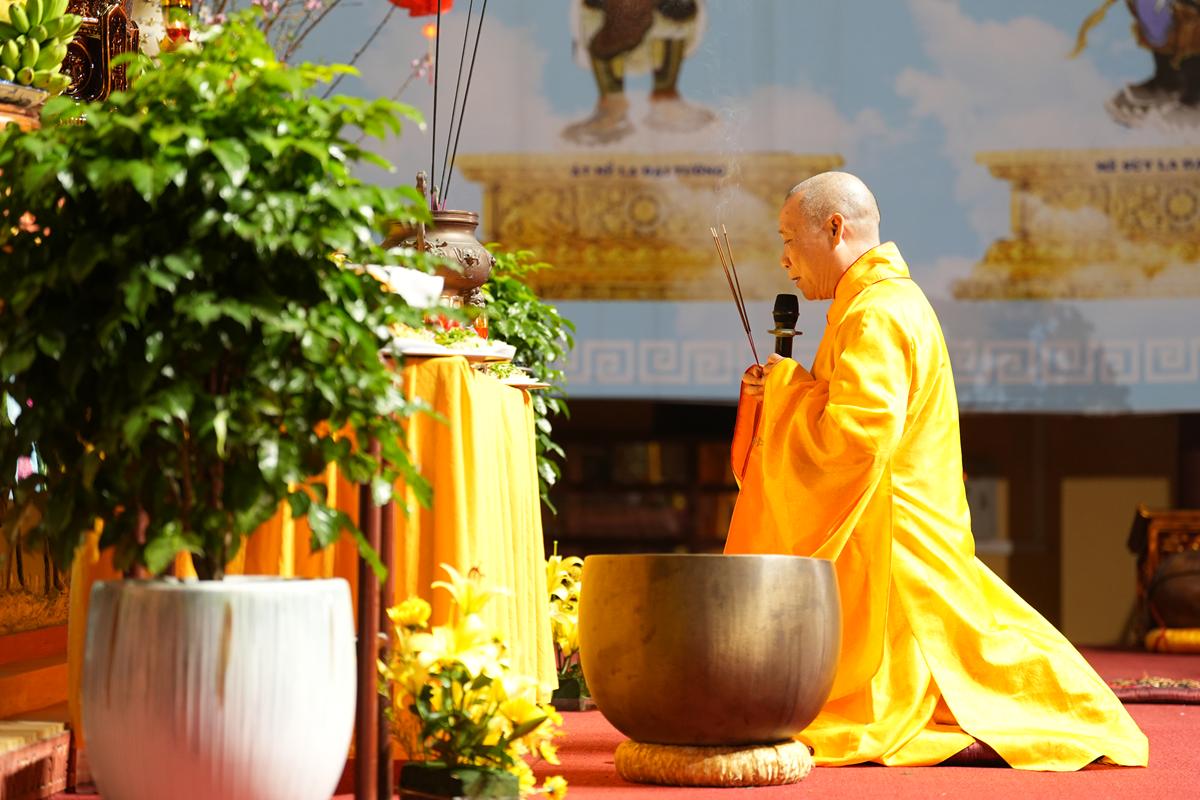 Đúng 8h00 tối, các khóa sinh đã vân tập trang nghiêm nơi lễ đường, lắng đọng tâm tư, chắp tay búp sen, cùng chư Tôn đức thực hiện nghi thức niêm hương bạch Phật, yết Tổ và lắng nghe lời phát biểu khai mạc khóa tu đầy ý nghĩa của Hòa thượng trụ trì Thích Bảo Nghiêm.