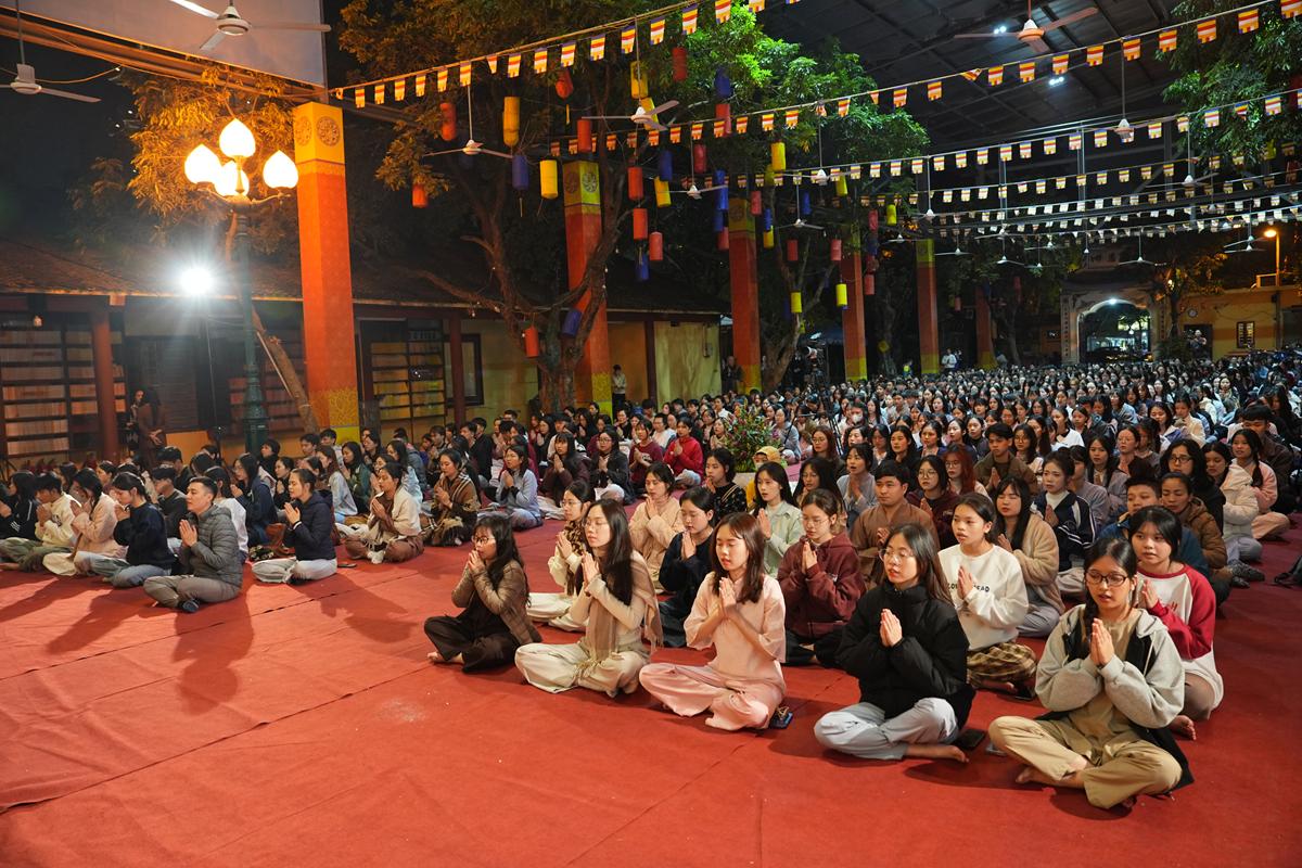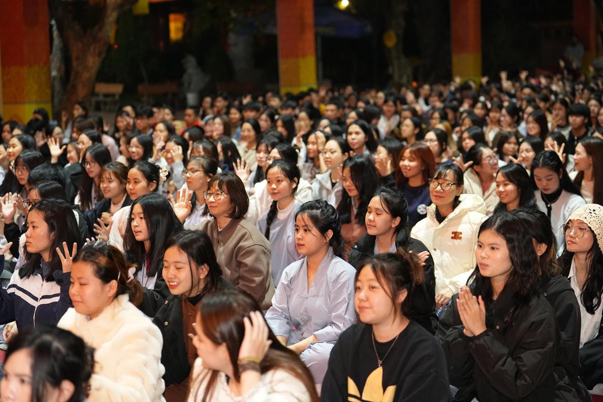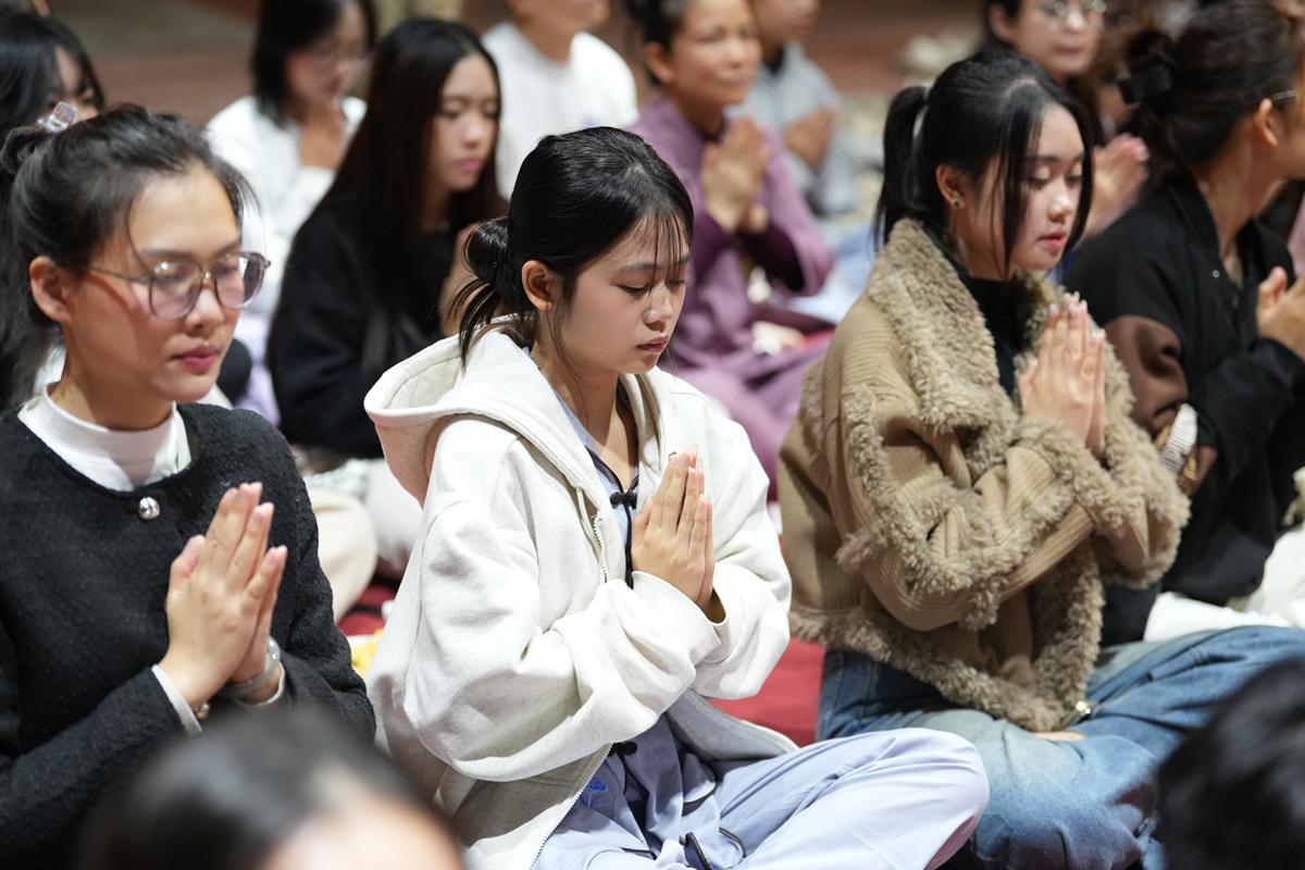 Trong giây phút tiễn biệt năm 2025 – một năm với nhiều biến động, chiến tranh, thiên tai và mất mát trên khắp thế giới – Hòa thượng nhấn mạnh rằng, được hiện diện nơi đây, được cùng nhau tu tập là một phúc duyên lớn. Hòa thượng mong các bạn trẻ biết chuyển hóa nỗi đau thành động lực sống thiện lành, lấy chính niệm làm điểm tựa để vững bước trong năm mới.