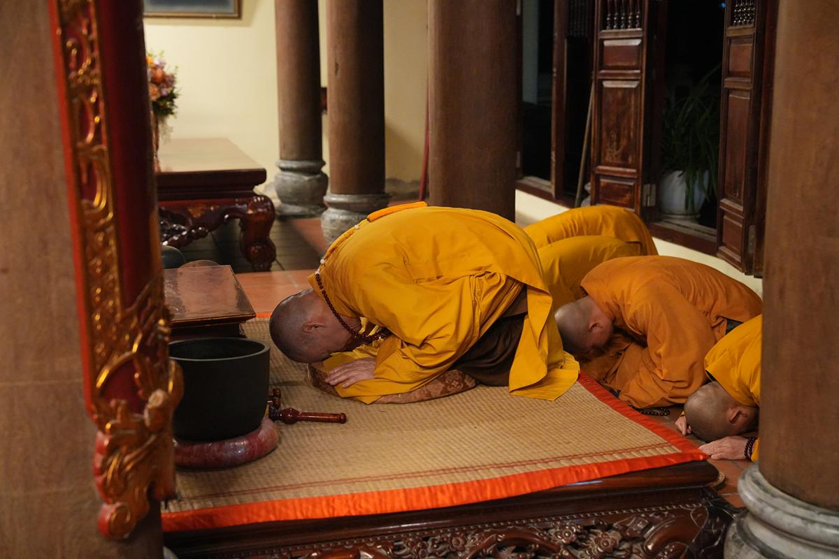 Dịp này, Hòa thượng từ bi giảng giải ý nghĩa nghi thức quỳ trước ban thờ và ba hồi chuông cuối năm: