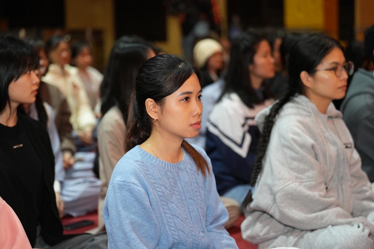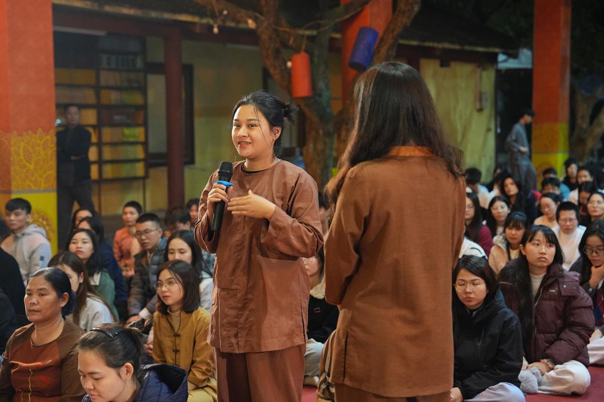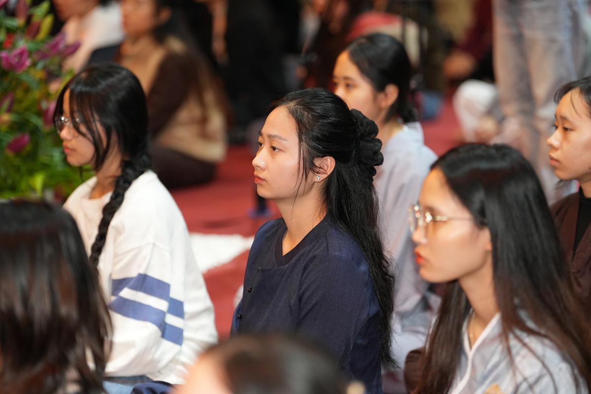 Tiếp nối chương trình, trong không gian lắng đọng trước Tam bảo, chư Tôn đức và các khóa sinh đã cùng tham dự tọa đàm kết nối với chủ đề: “Đóng cửa quá khứ – Mở cửa tương lai”. Tại đây, nhiều bạn trẻ đã dũng cảm sẻ chia những niềm vui, trăn trở, tổn thương và cả những điều chưa kịp gọi tên trong hành trình sống của mình suốt năm qua. Những câu chuyện được kể bằng giọng run run, có lúc nghẹn lại. Có niềm vui chưa trọn, có nỗi buồn chưa kịp gọi tên, có những vết thương còn mới nguyên trong lòng người trẻ.