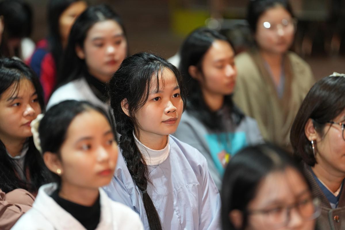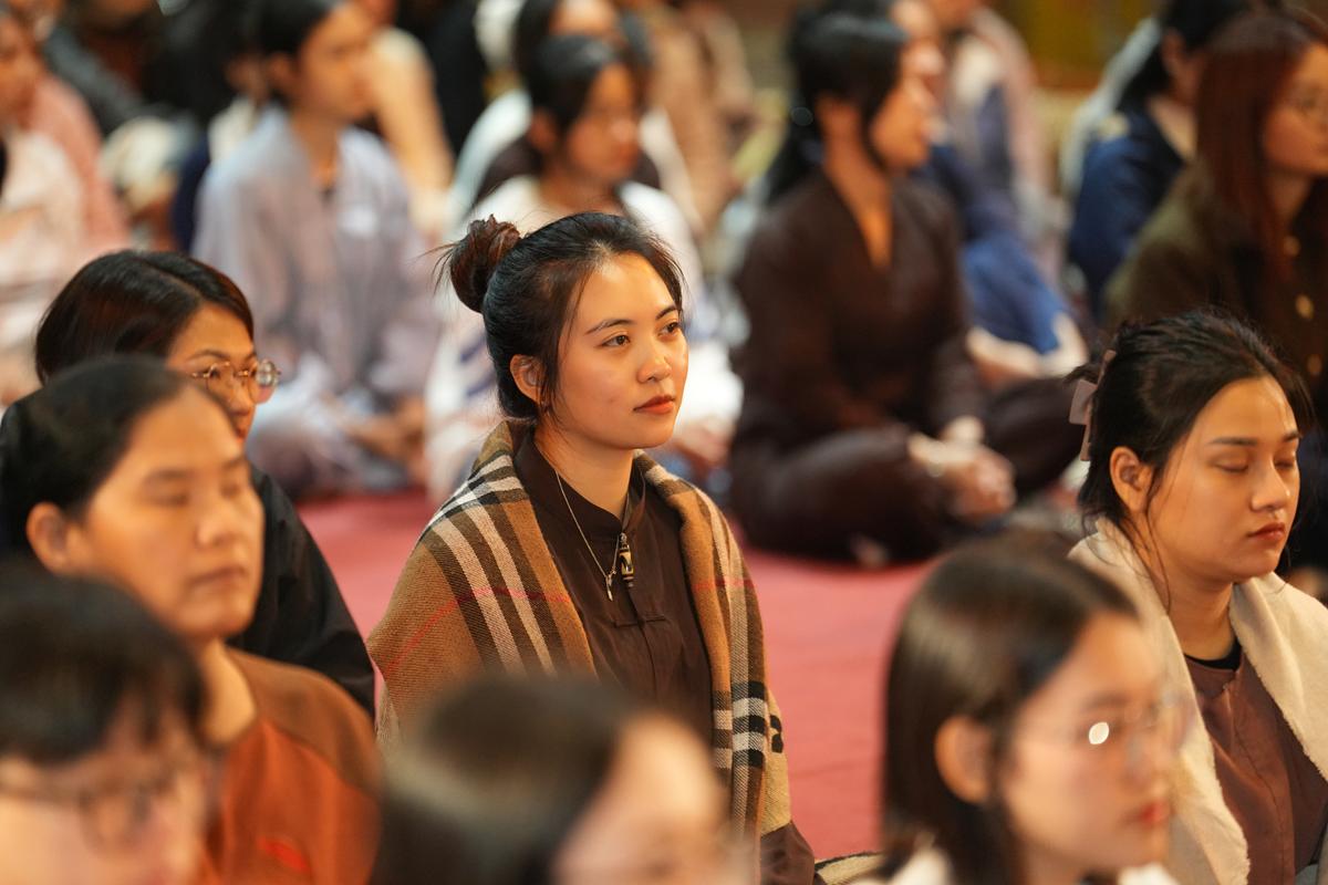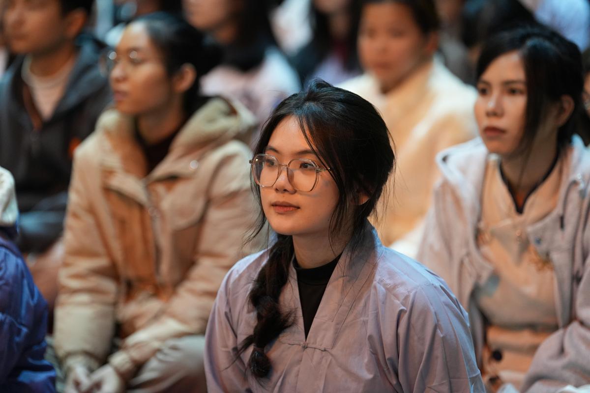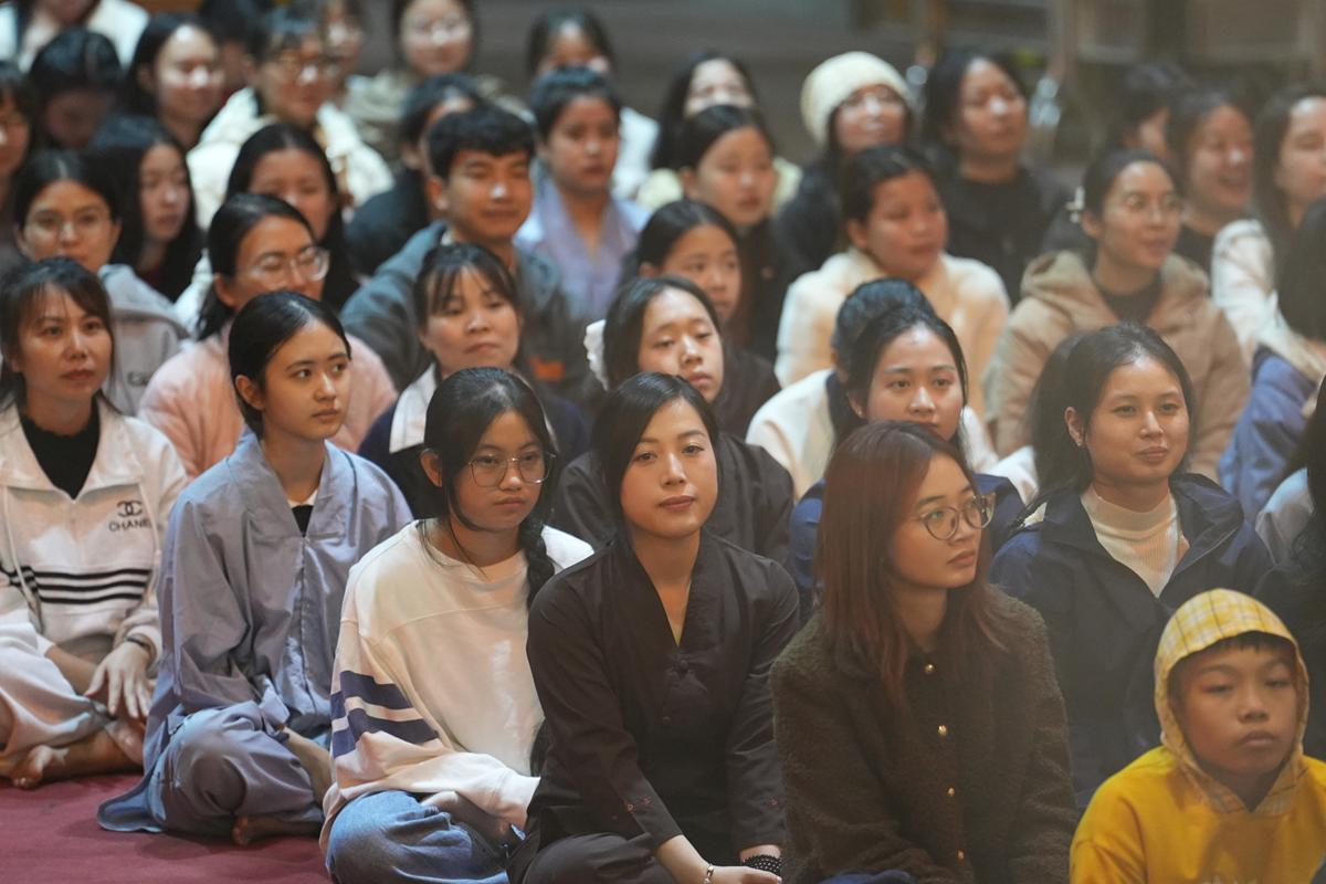 Tiếp nối chương trình, trong không gian lắng đọng trước Tam bảo, chư Tôn đức và các khóa sinh đã cùng tham dự tọa đàm kết nối với chủ đề: “Đóng cửa quá khứ – Mở cửa tương lai”. Tại đây, nhiều bạn trẻ đã dũng cảm sẻ chia những niềm vui, trăn trở, tổn thương và cả những điều chưa kịp gọi tên trong hành trình sống của mình suốt năm qua. Những câu chuyện được kể bằng giọng run run, có lúc nghẹn lại. Có niềm vui chưa trọn, có nỗi buồn chưa kịp gọi tên, có những vết thương còn mới nguyên trong lòng người trẻ.