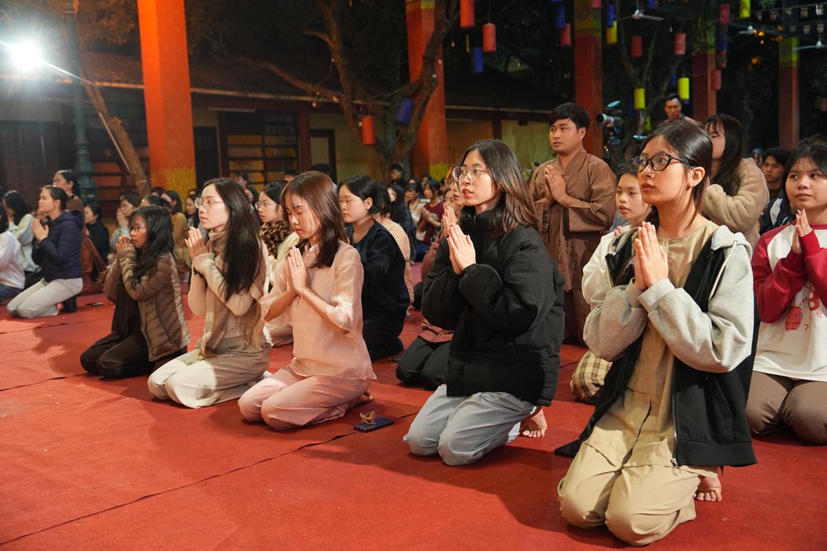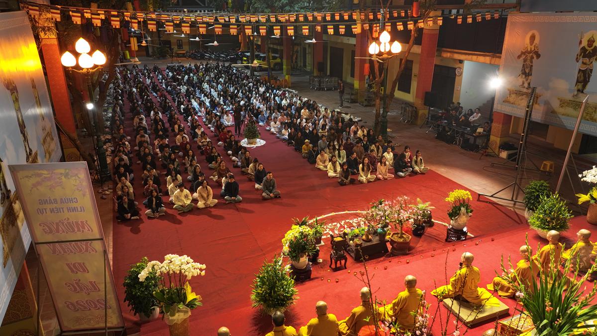 Chiều 31/12 – chiều cuối cùng của năm cũ, khi phố xá Hà Nội còn vương tiếng xe và những nhịp bước vội vàng của người đời chuẩn bị đón giao thừa, chùa Bằng – Linh Tiên Tự đã dần sáng lên trong ánh đèn ấm. Hơn 500 người, từ những bạn trẻ còn nhiều băn khoăn tuổi mới lớn đến các gia đình Phật tử, lặng lẽ trở về chốn già lam, mang theo những câu chuyện chưa kịp khép lại của một năm nhiều biến động.
