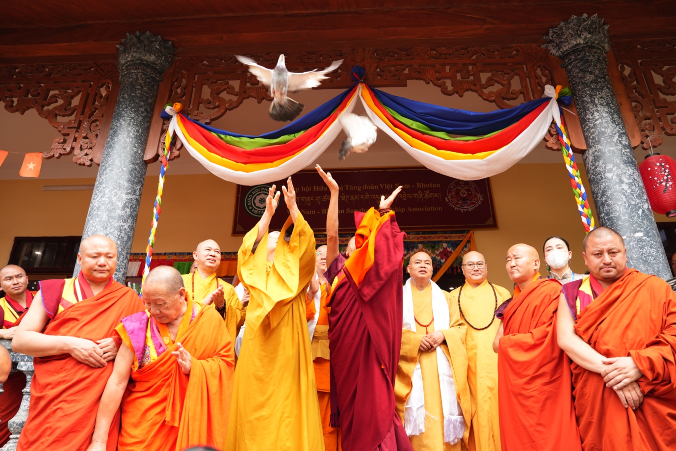 Sau nghi thức khai trương, chư tôn giáo phẩm Phật giáo Việt Nam và Bhutan đã cùng thực hiện nghi thức thả chim bồ câu, biểu trưng cho khát vọng hòa bình và tình hữu nghị giữa các dân tộc, gửi gắm thông điệp thiện lành của Phật pháp đến với cộng đồng nhân loại.