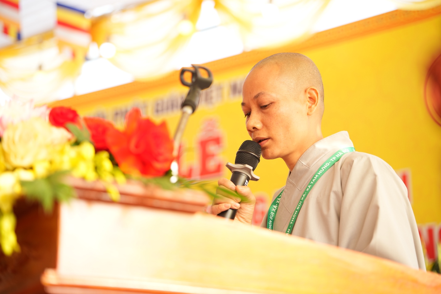 Chứng minh buổi lễ có sự hiện diện của: Đại đức Thích Di Hiển – Trụ trì chùa Vĩnh Khang, TP. Hà Nội; Đại đức Thích Nguyên Kiền – Trụ Trì chùa Mễ Sơn, TP. Hà Nội; Ni sư Thích Đàm Hợi – Trụ trì chùa Đan Nhiễm, TP. Hà Nội cùng chư tôn đức Tăng Ni và đông đảo Phật tử gần xa đồng về tham dự.