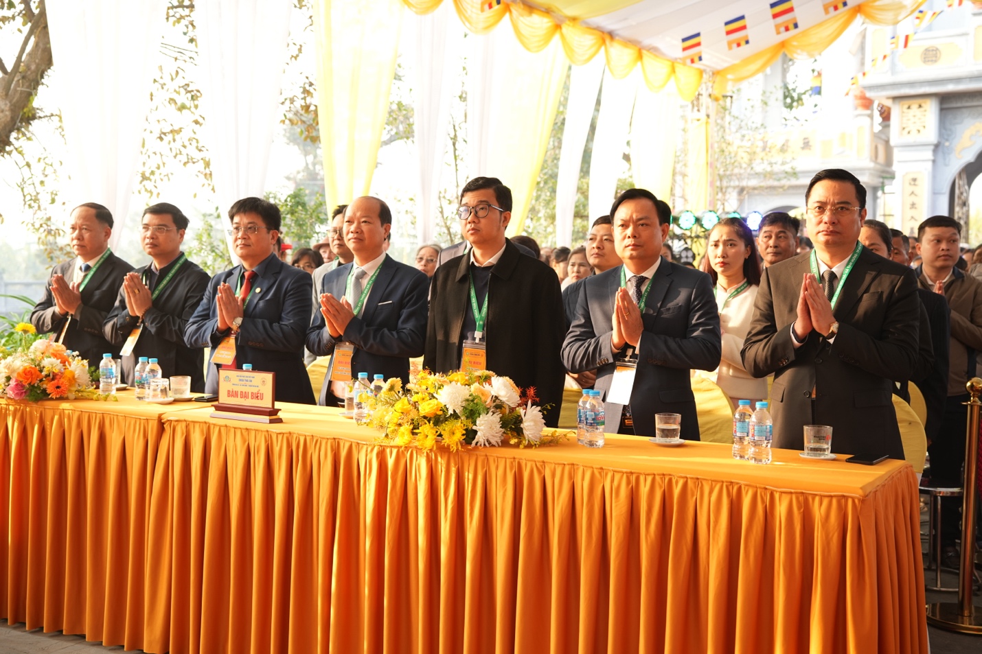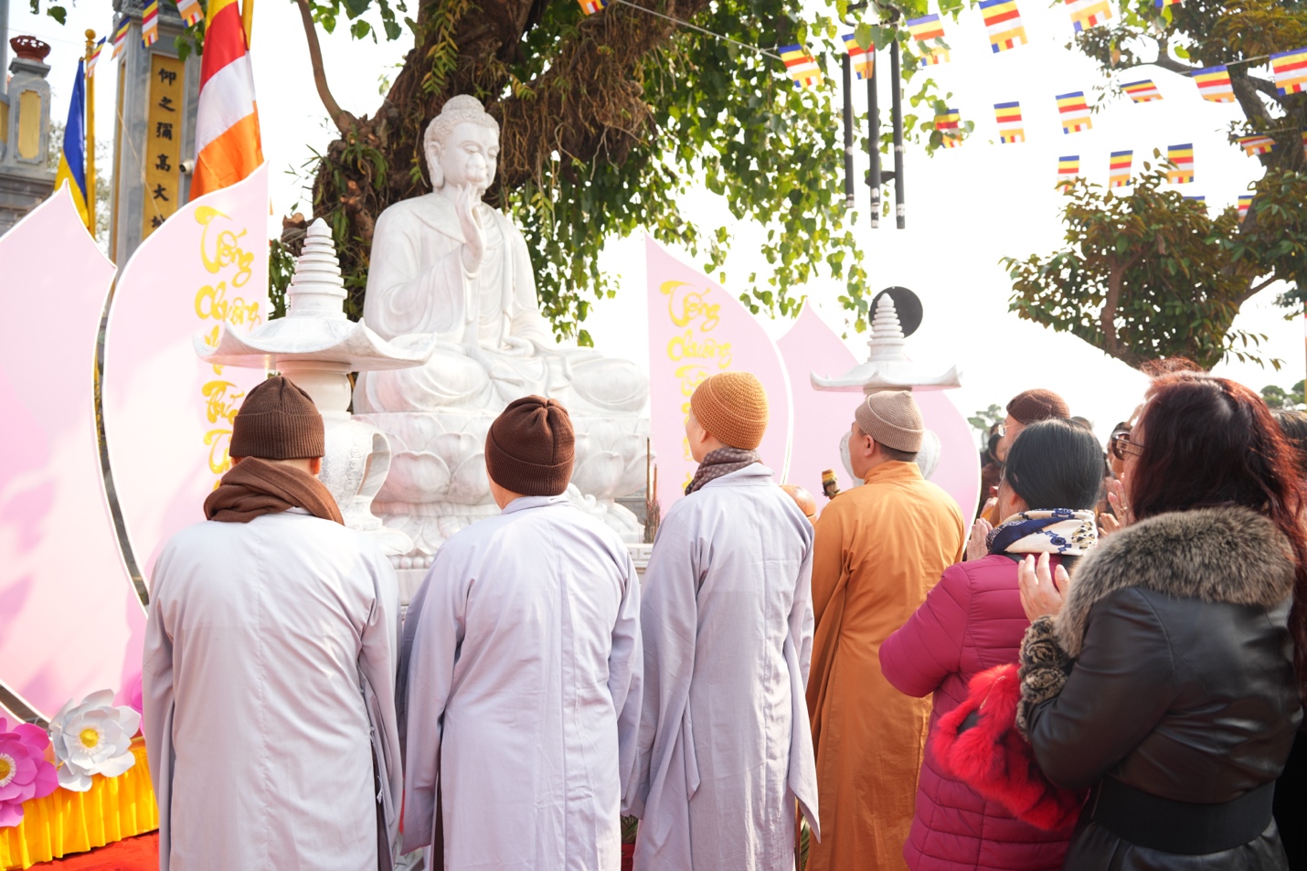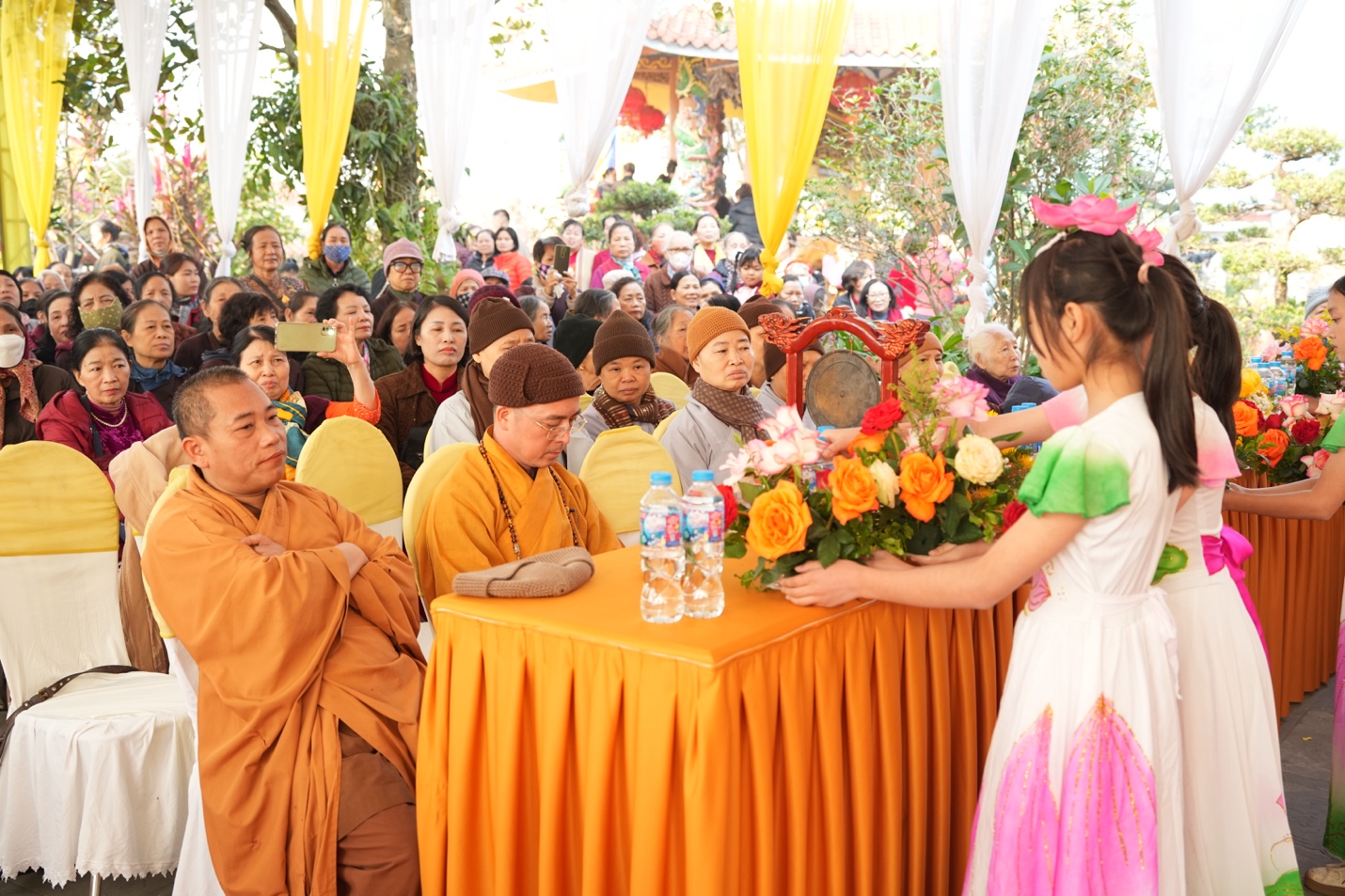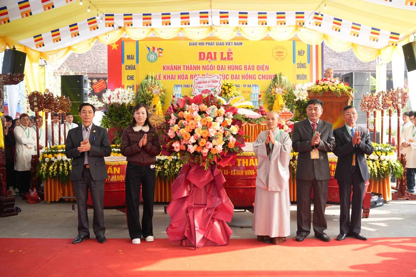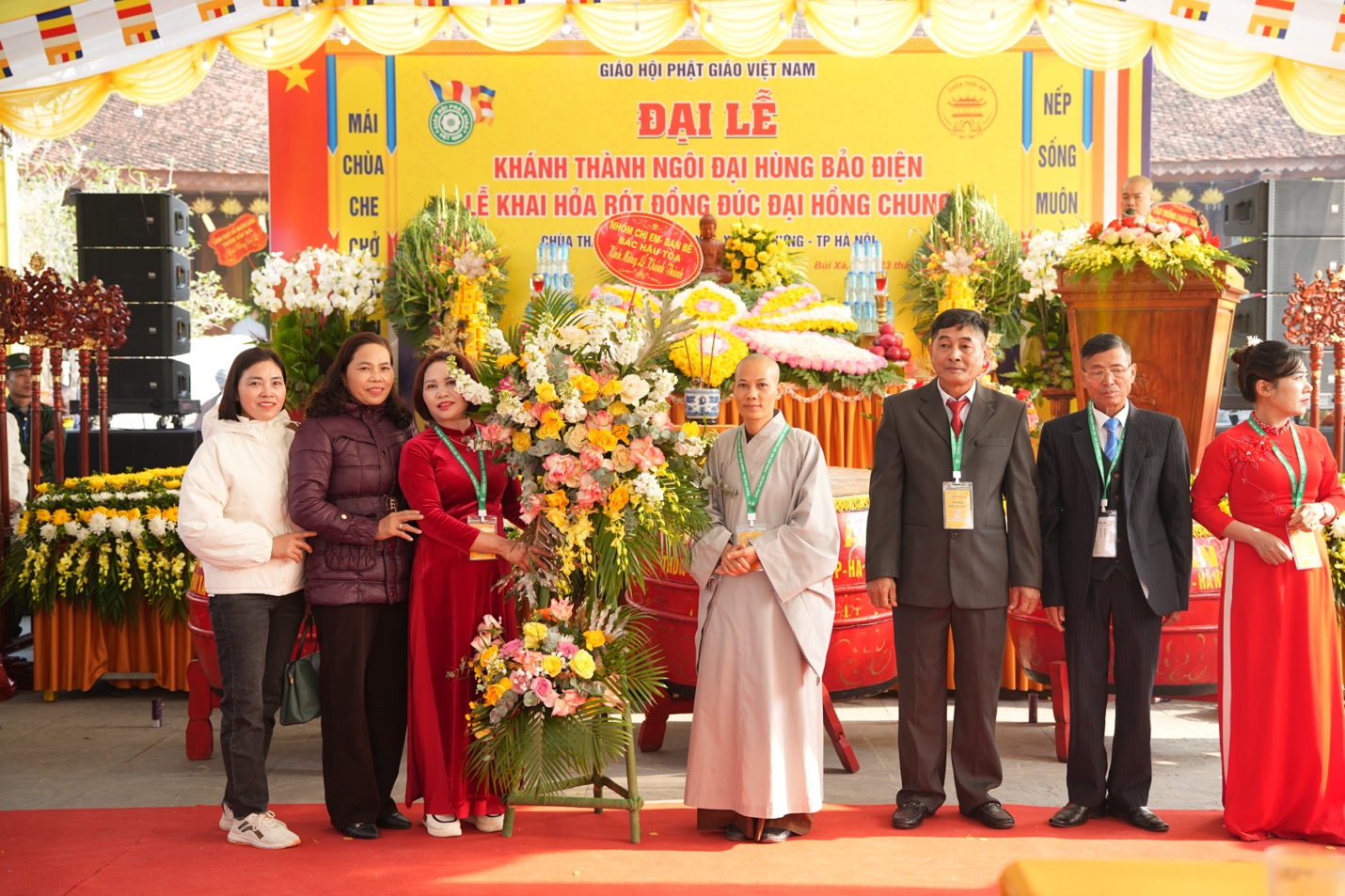 Chứng minh buổi lễ có sự hiện diện của: Đại đức Thích Di Hiển – Trụ trì chùa Vĩnh Khang, TP. Hà Nội; Đại đức Thích Nguyên Kiền – Trụ Trì chùa Mễ Sơn, TP. Hà Nội; Ni sư Thích Đàm Hợi – Trụ trì chùa Đan Nhiễm, TP. Hà Nội cùng chư tôn đức Tăng Ni và đông đảo Phật tử gần xa đồng về tham dự.