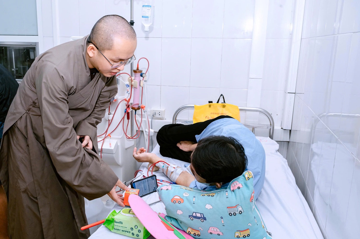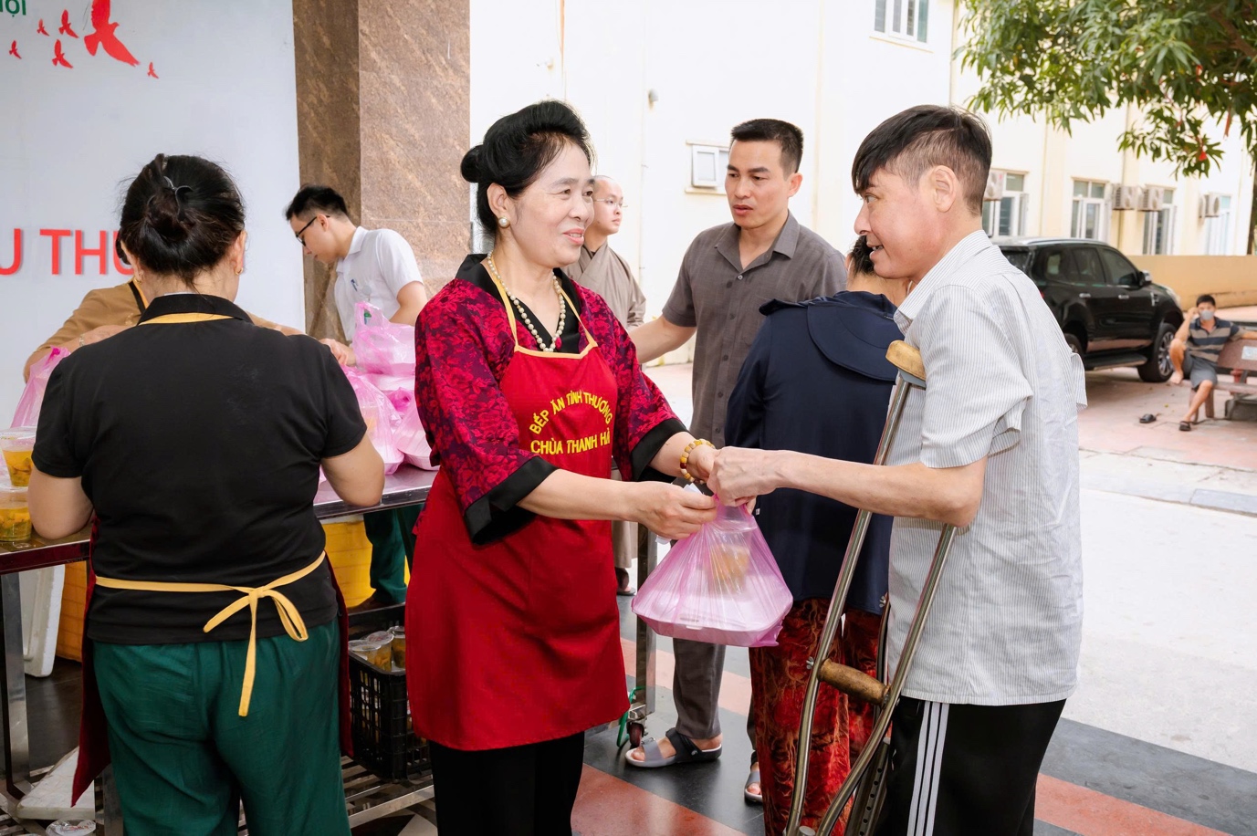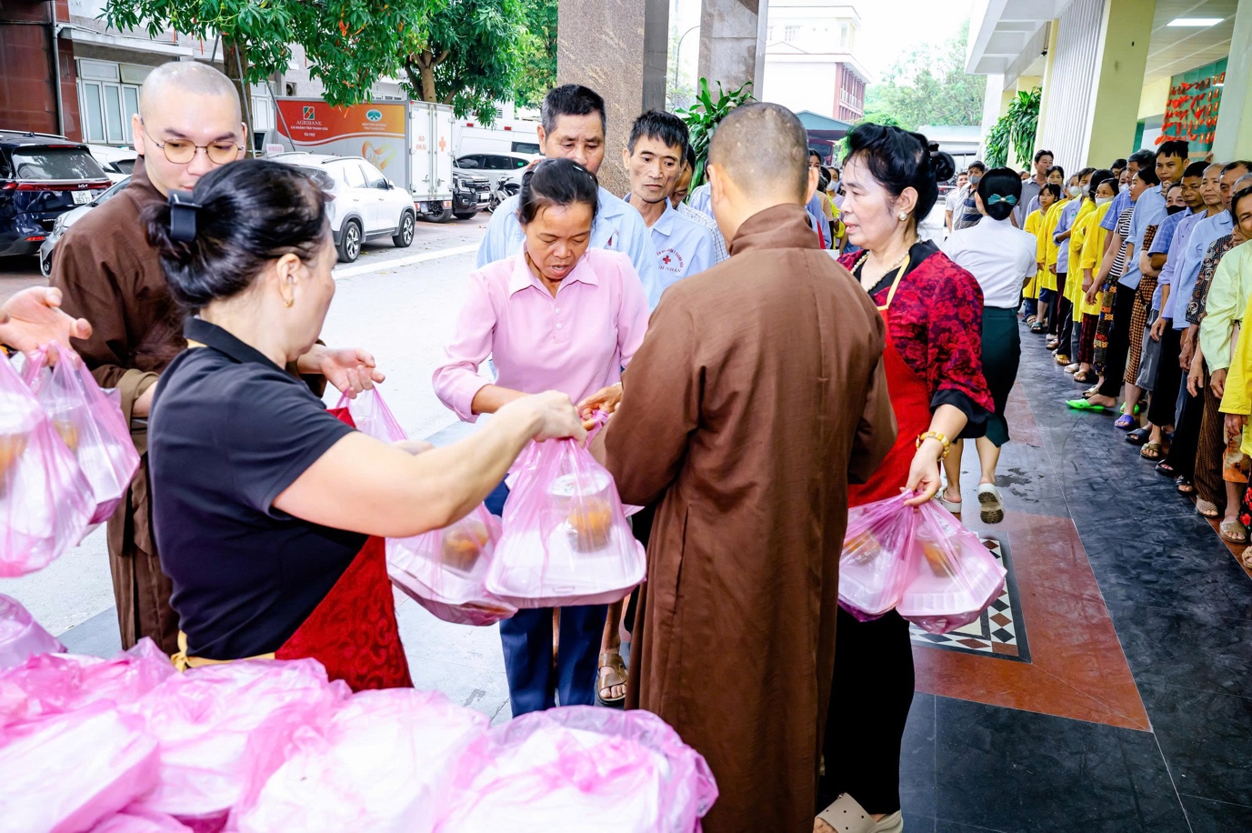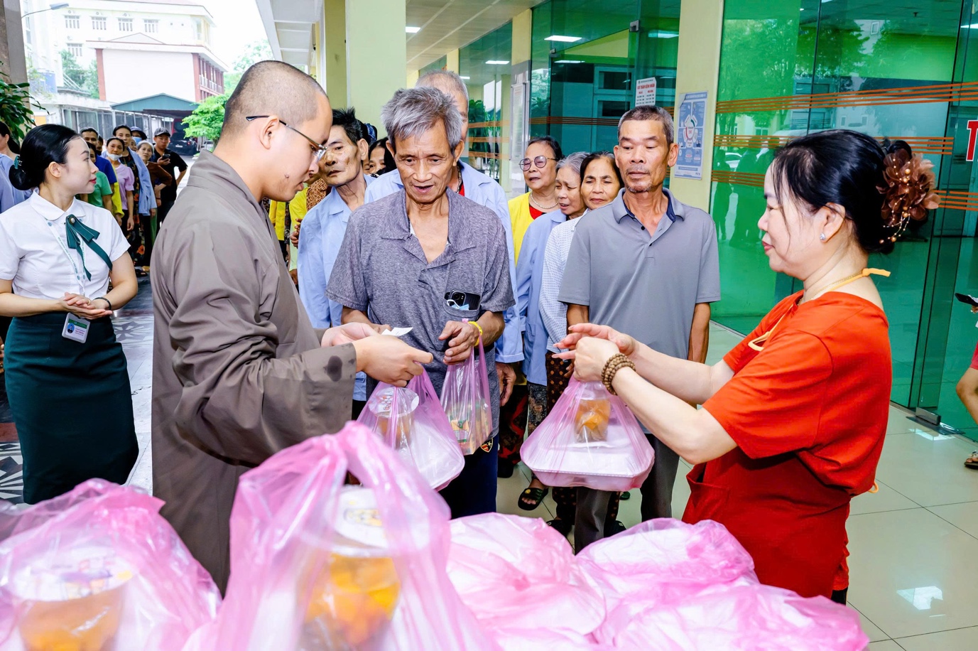Giữa nhịp sống tất bật nơi phố thị, tại những hành lang bệnh viện đầy lo toan và mệt mỏi, hình ảnh chư Tăng và Phật tử Tổ đình Thanh Hà trao tận tay những phần cơm chay, sữa và trái cây cho người bệnh đã trở thành một nét đẹp lặng lẽ mà sâu sắc. Đó không chỉ là sự sẻ chia vật chất, mà còn là nguồn động viên tinh thần, tiếp thêm niềm tin và nghị lực cho những mảnh đời đang chịu nhiều đau khổ.