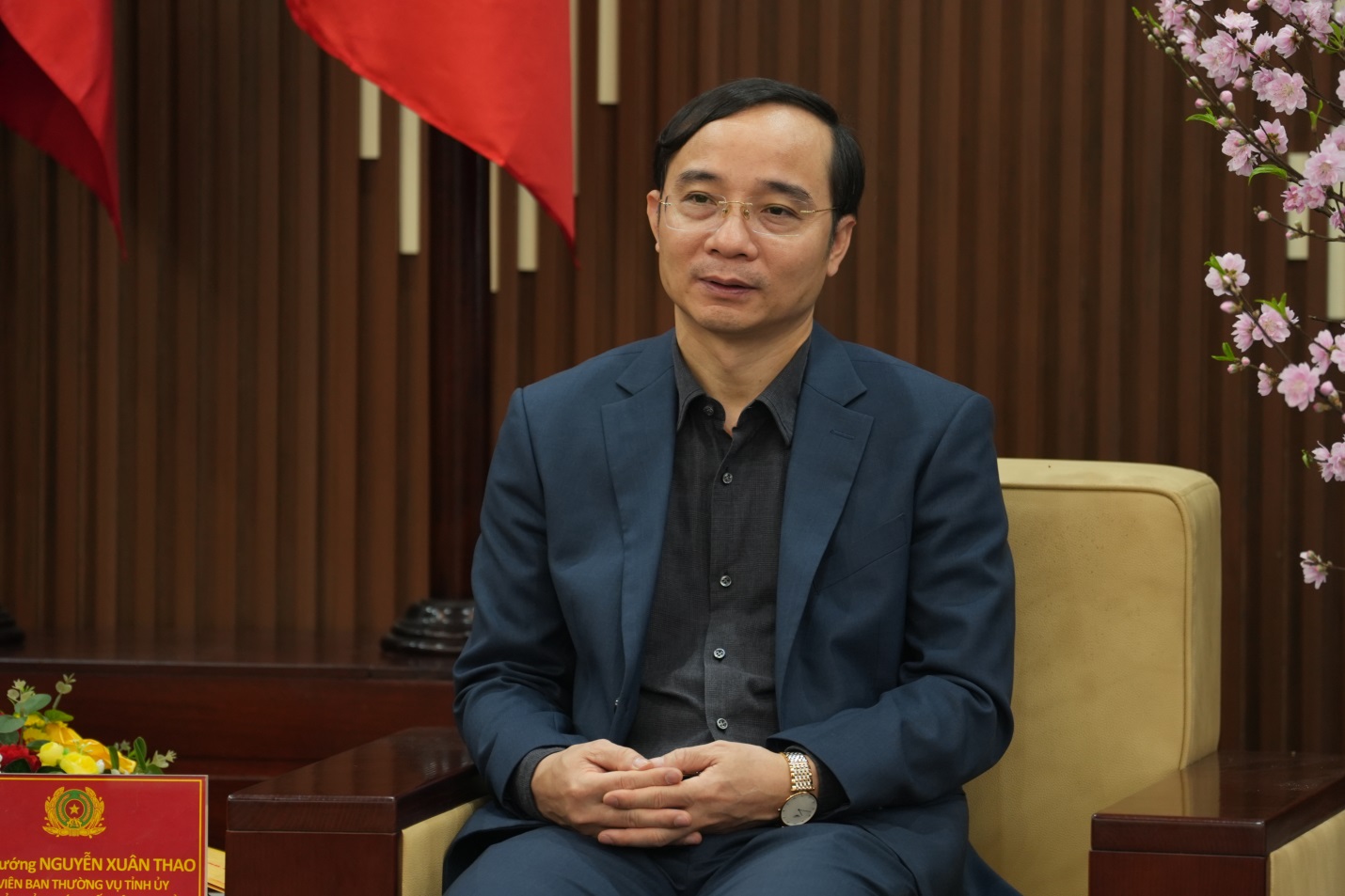 Thiếu tướng Nguyễn Xuân Thao chân thành cảm ơn tình cảm và sự quan tâm của Ban Trị sự GHPGVN tỉnh Hà Tĩnh; ghi nhận sự đồng hành, đóng góp tích cực của Tăng Ni, Phật tử trong công tác giữ gìn ổn định xã hội, xây dựng nếp sống văn hóa lành mạnh. Đồng thời, ông bày tỏ mong muốn Phật giáo tỉnh tiếp tục phối hợp chặt chẽ với lực lượng Công an trong thời gian tới, cùng chung tay vì mục tiêu an dân – ổn định – phát triển.