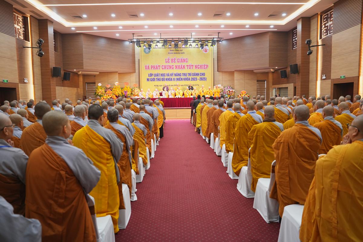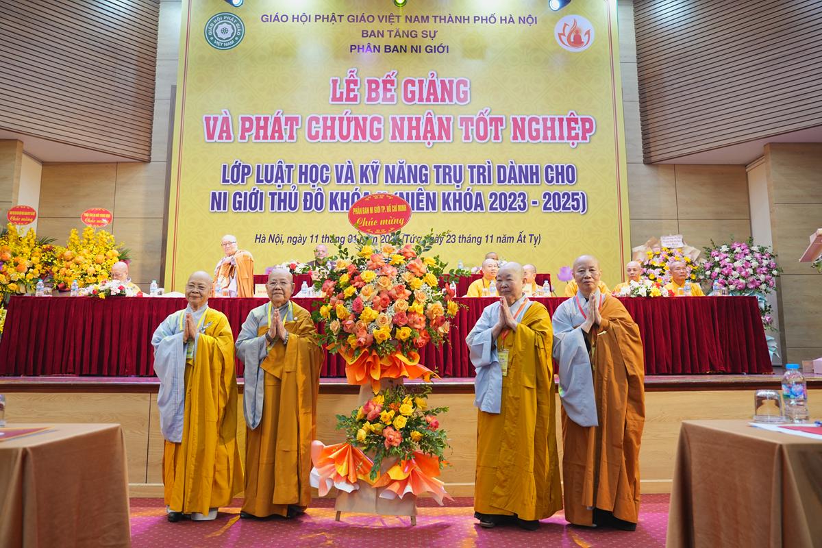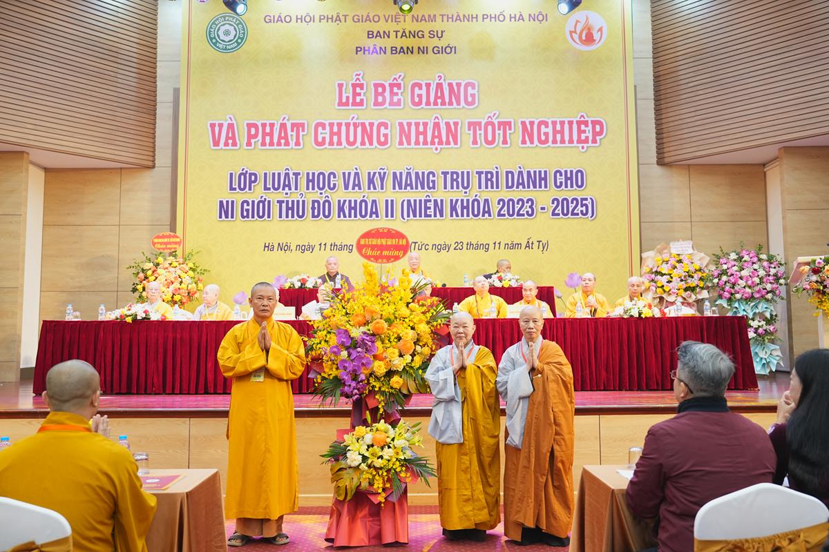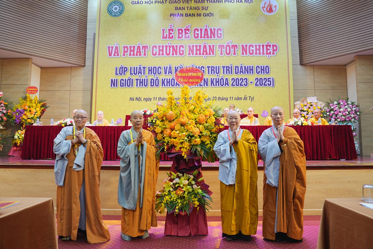 Ban đạo từ tại buổi lễ, Hòa thượng Thích Bảo Nghiêm hoan hỷ ghi nhận những thành quả đáng trân trọng mà Ni giới Thủ đô đã đạt được qua hai khóa bồi dưỡng Luật học và Kỹ năng trụ trì. Hòa thượng khẳng định, công tác giáo dục Ni chúng giữ vai trò then chốt đối với sự ổn định, thanh tịnh của Tăng-già và là nền tảng cho sự phát triển bền vững của Phật giáo Thủ đô nói riêng, Phật giáo Việt Nam nói chung.