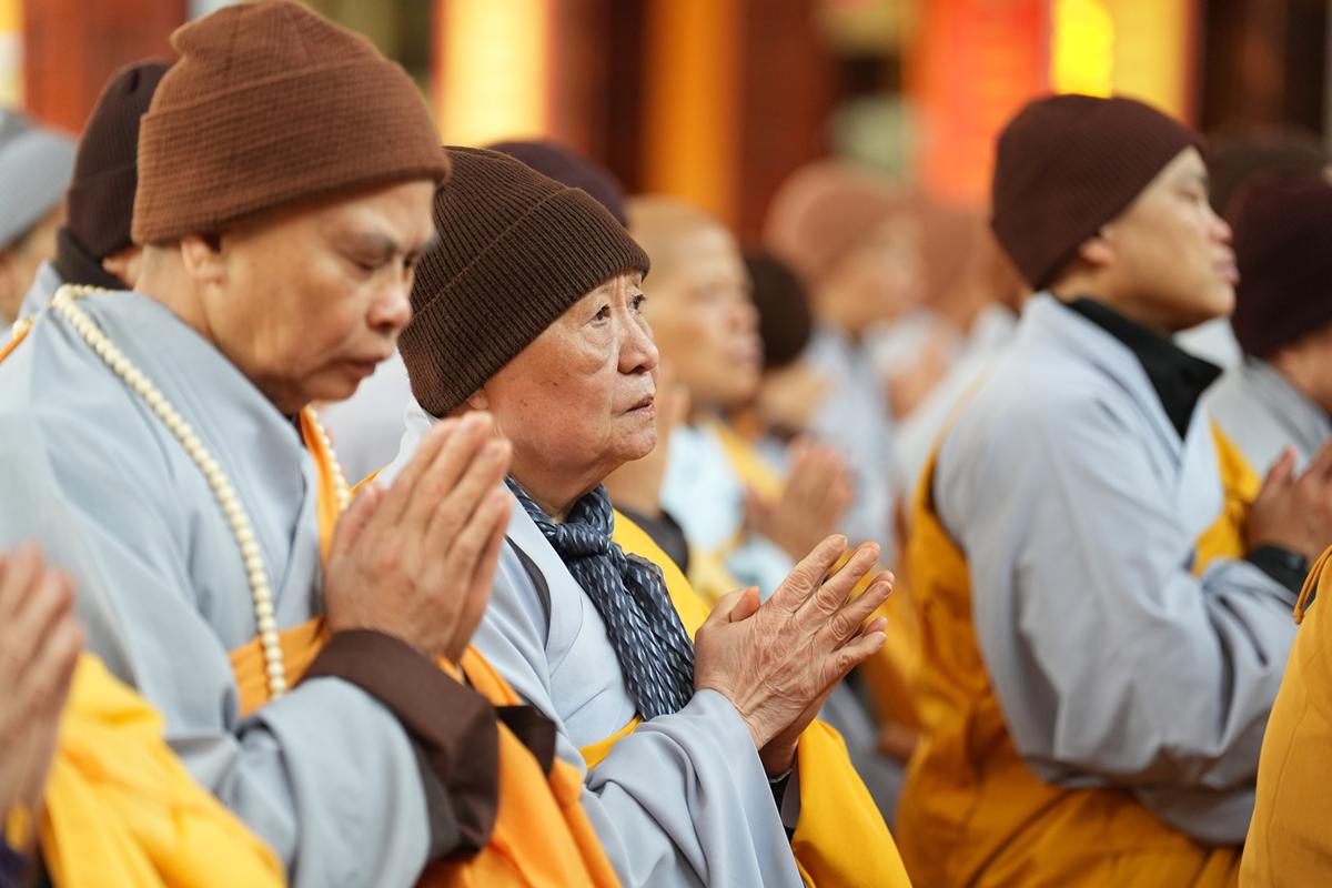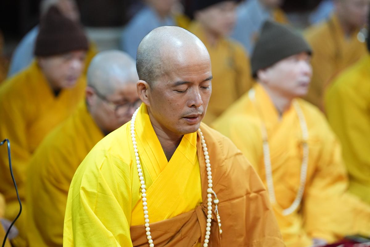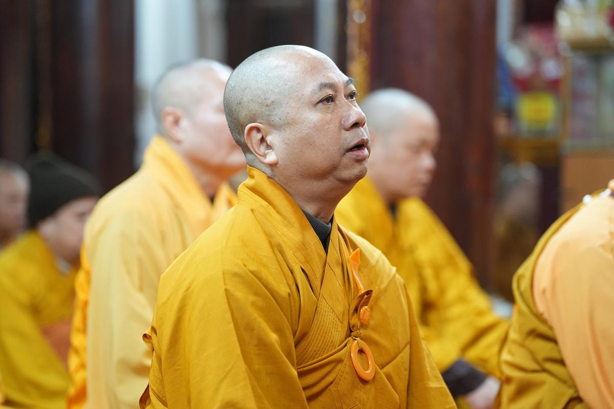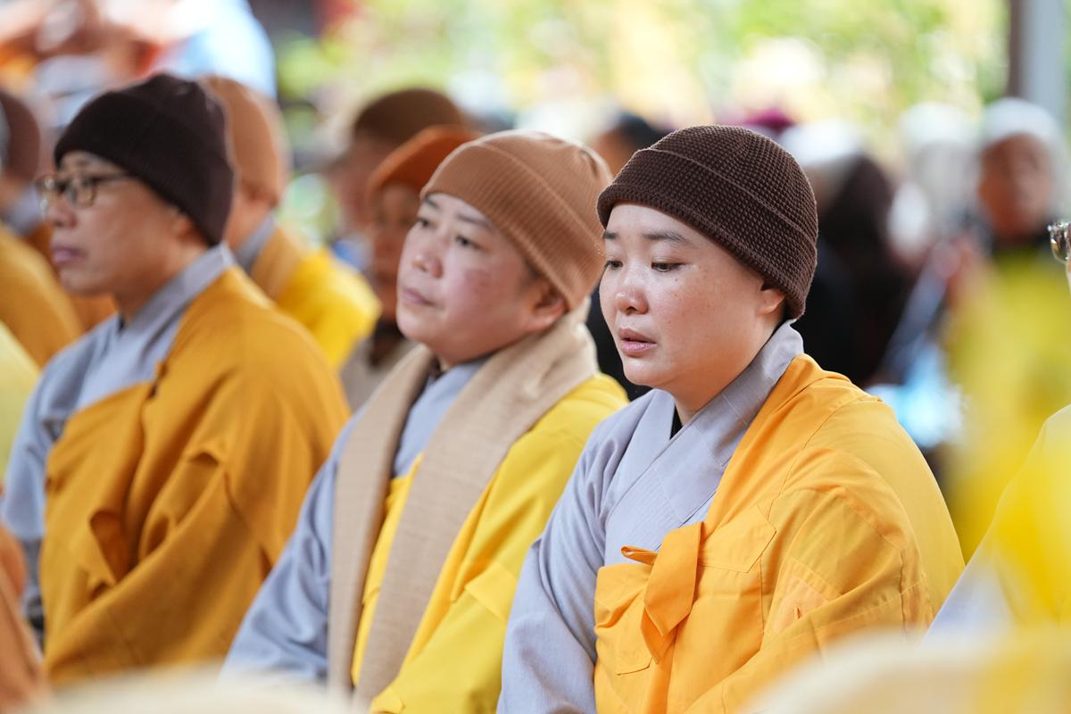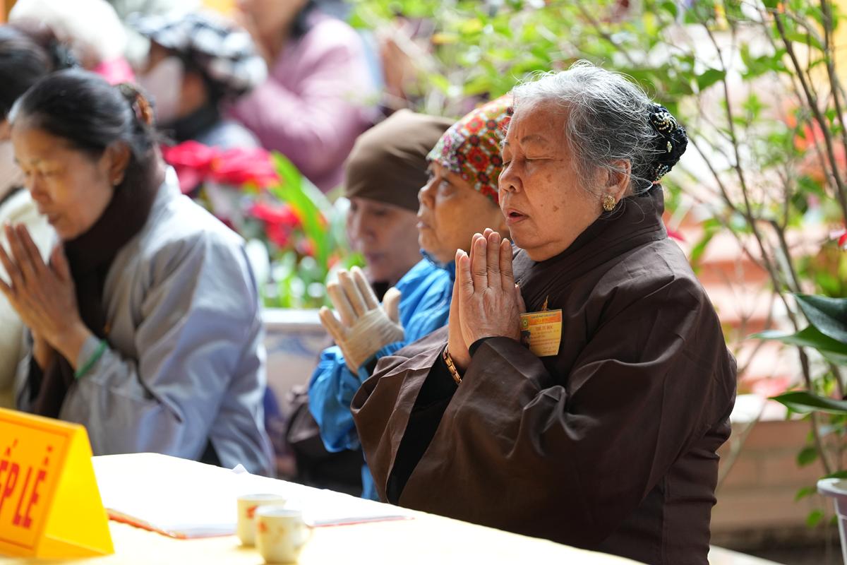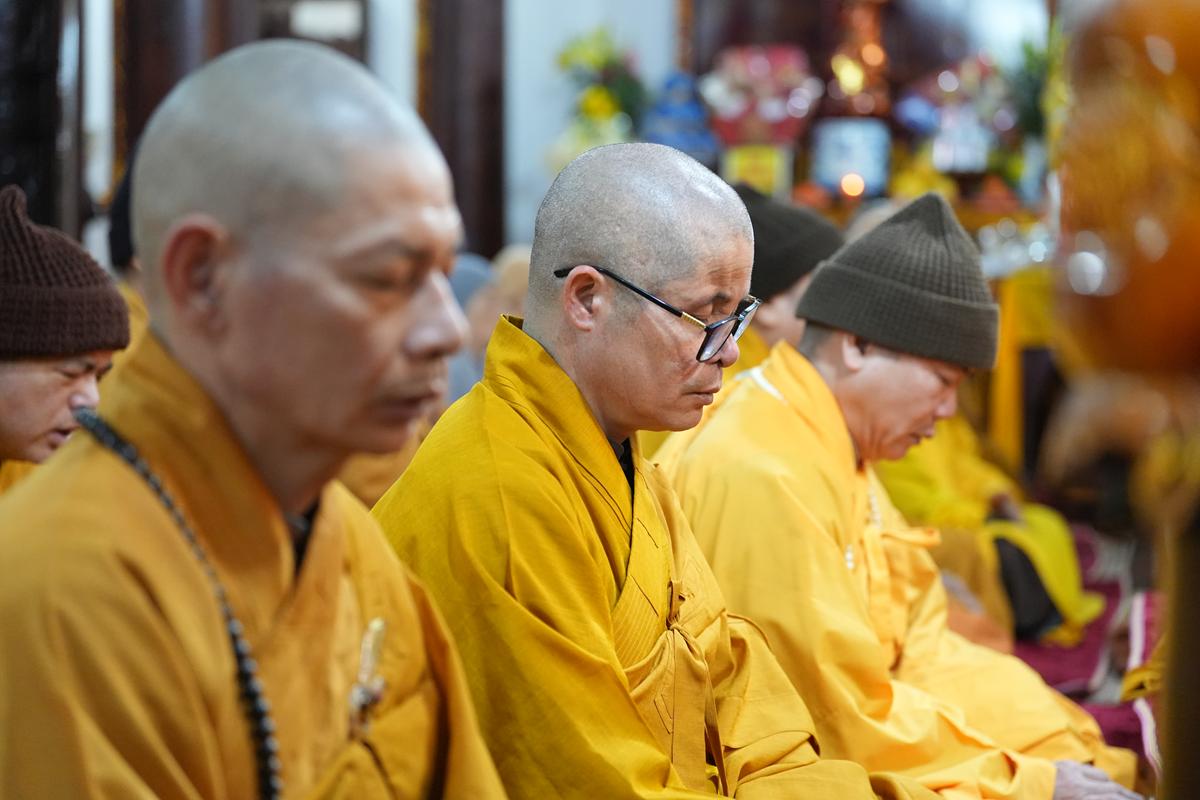 Tại chính điện và Tổ đường, chư Tôn đức đã trang nghiêm cử hành nghi thức cúng Phật và cúng Giác linh. Tiếp đó, chư Tôn đức Tăng Ni đã quang lâm Đại Hùng Bảo Điện, đồng tâm cử hành thời kinh A Di Đà, nhất tâm cầu nguyện cho Giác linh cố Ni trưởng cao đăng thượng phẩm, quả chứng vô sinh, sớm hồi quy Tịnh cảnh.