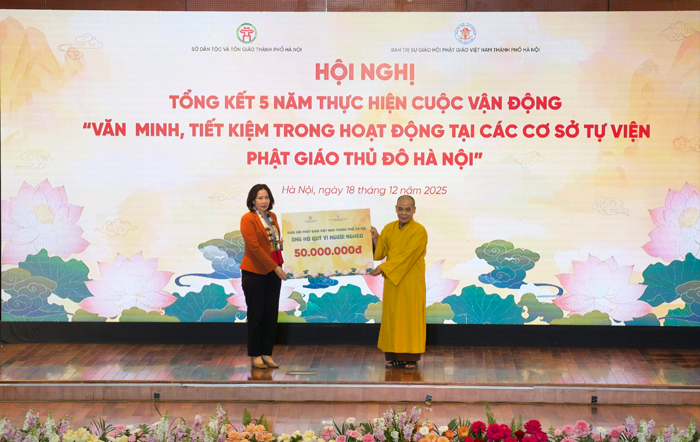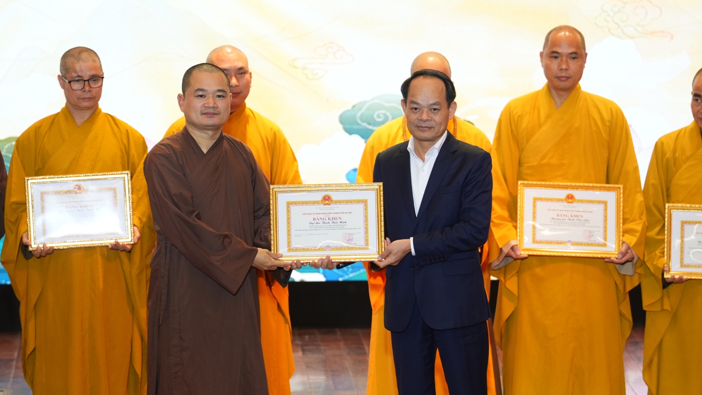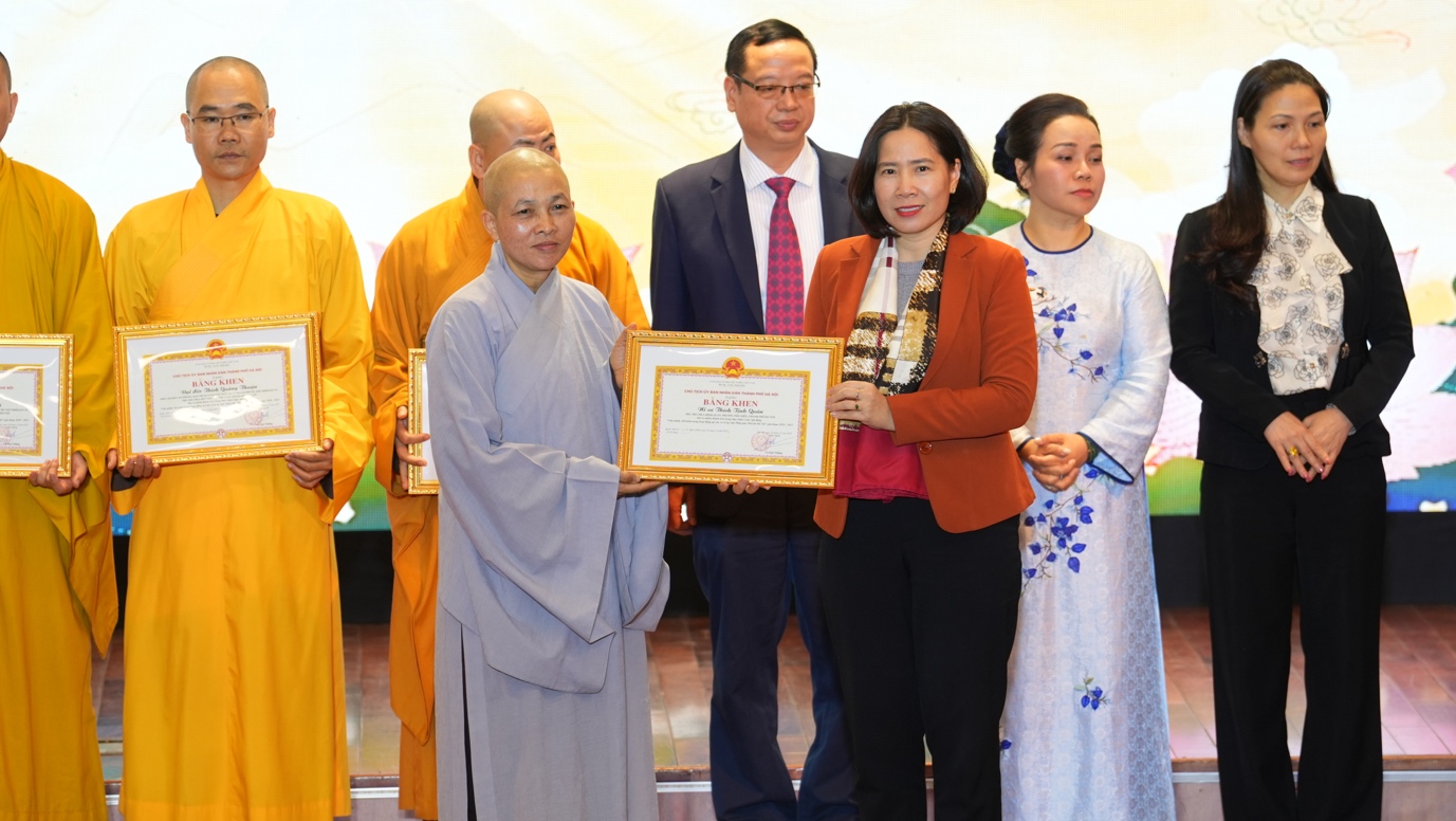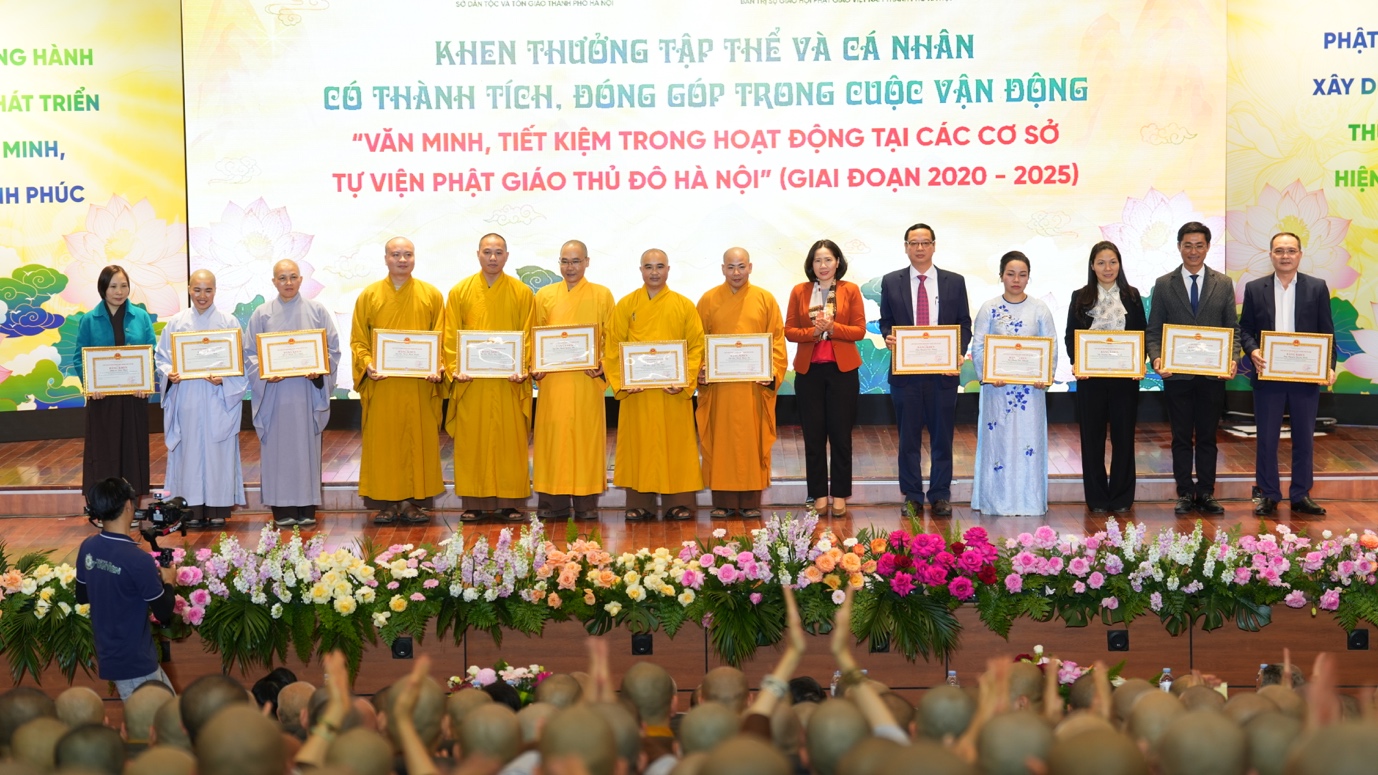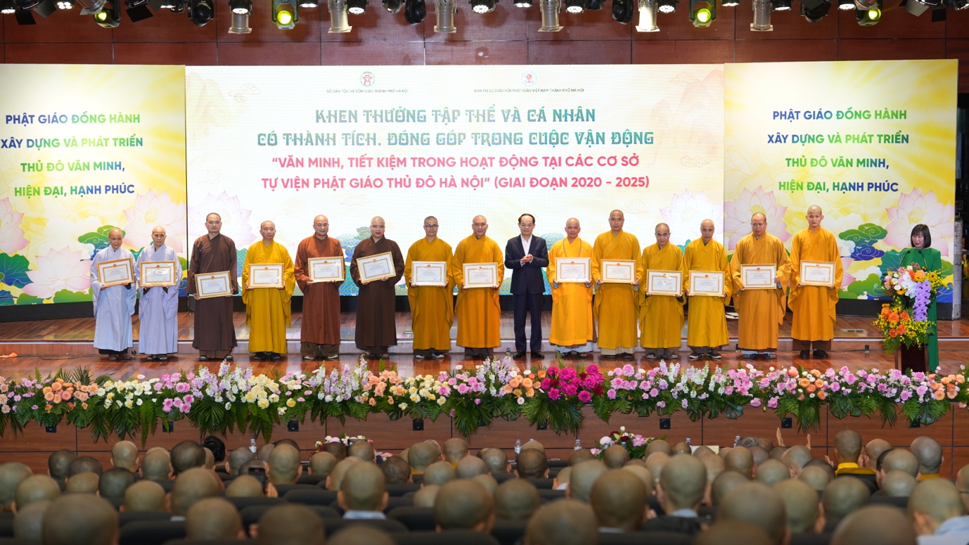 Đặc biệt, để ghi nhận những đóng góp tích cực của GHPGVN thành phố Hà Nội, của chư tôn đức, Tăng Ni, Phật tử Thủ đô trong Cuộc vận động “Văn minh, tiết kiệm trong hoạt động tại các cơ sở tự viện Phật giáo Thủ đô Hà Nội” giai đoạn 2020-2025, UBND Thành phố Hà Nội đã quyết định tặng Bằng khen cho các tập thể và cá nhân có nhiều đóng góp, thành tích.