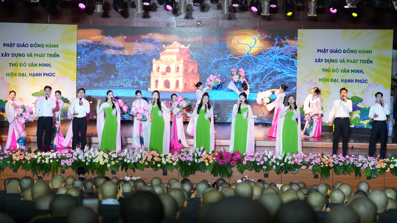 Mở đầu là chương trình nghệ thuật “Phật giáo Thăng Long đồng hành xây dựng thủ đô”, đưa quý đại biểu hòa cùng dòng chảy của âm nhạc, của ánh sáng, của những tiết mục nghệ thuật mang tâm hồn Việt Nam, thấm nhuần tinh thần từ bi – trí tuệ và hòa hợp của đạo Phật.