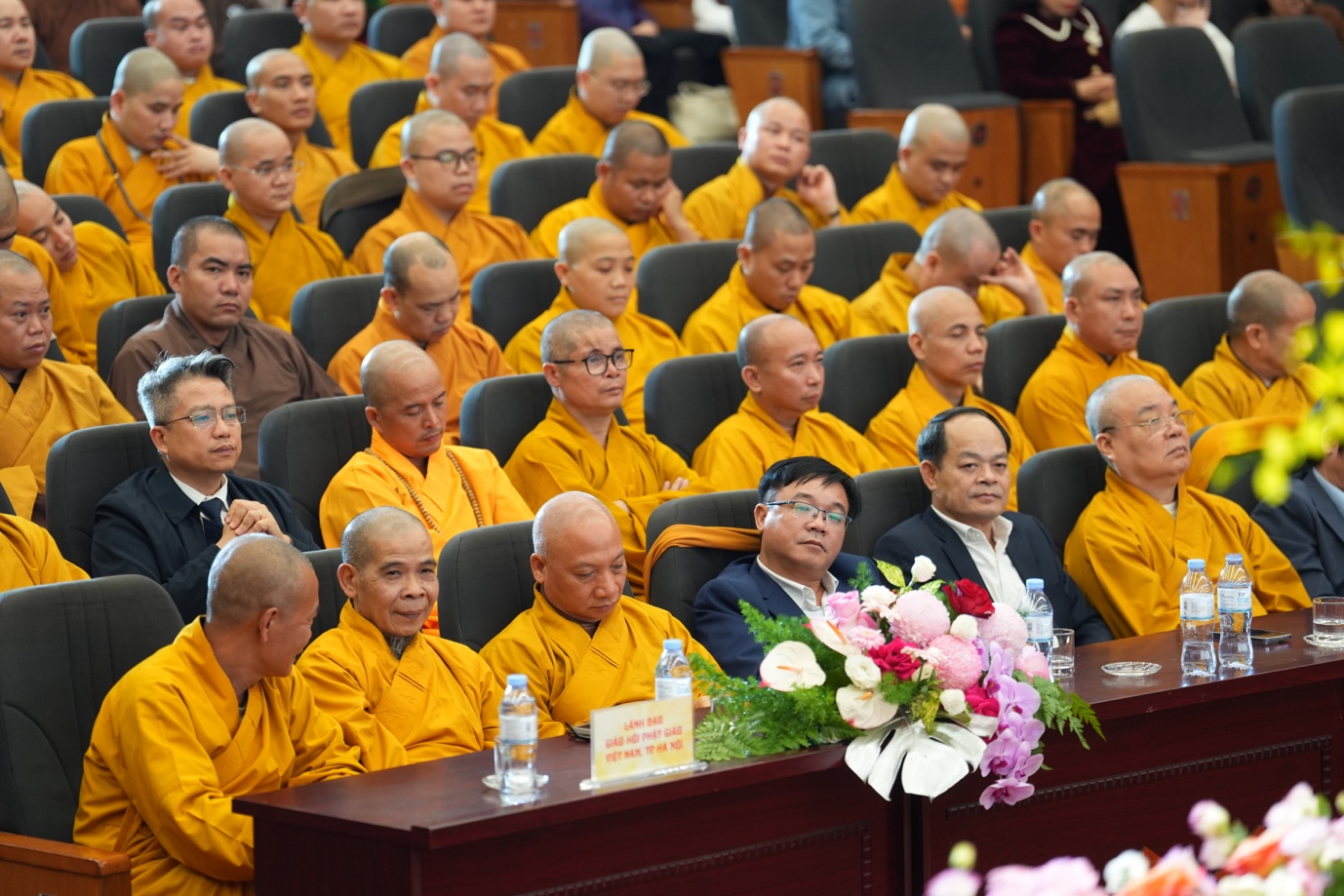 Về phía GHPGVN có: Trưởng lão Hòa thượng Thích Thanh Nhiễu – UVTT HĐCM, Phó Chủ tịch thường trực HĐTS GHPGVN; Thượng tọa Thích Minh Trí – UV HĐTS, Phó Trưởng BTS GHPGVN TP. Hà Nội; Thượng tọa Thích Đạo Phong – UV HĐTS, Phó Trưởng ban kiêm Chánh Thư ký BTS GHPGVN TP. Hà Nội; Thượng tọa Thích Chiếu Tuệ – Ủy viên HĐTS, Phó Trưởng BTS GHPGVN TP. Hà Nội; Thượng tọa Thích Tiến Thông – Ủy viên HĐTS, Phó Trưởng BTS GHPGVN TP. Hà Nội cùng sự hiện diện của quý chư tôn đức Tăng Ni, quý Phật tử trên địa bàn Thủ đô.