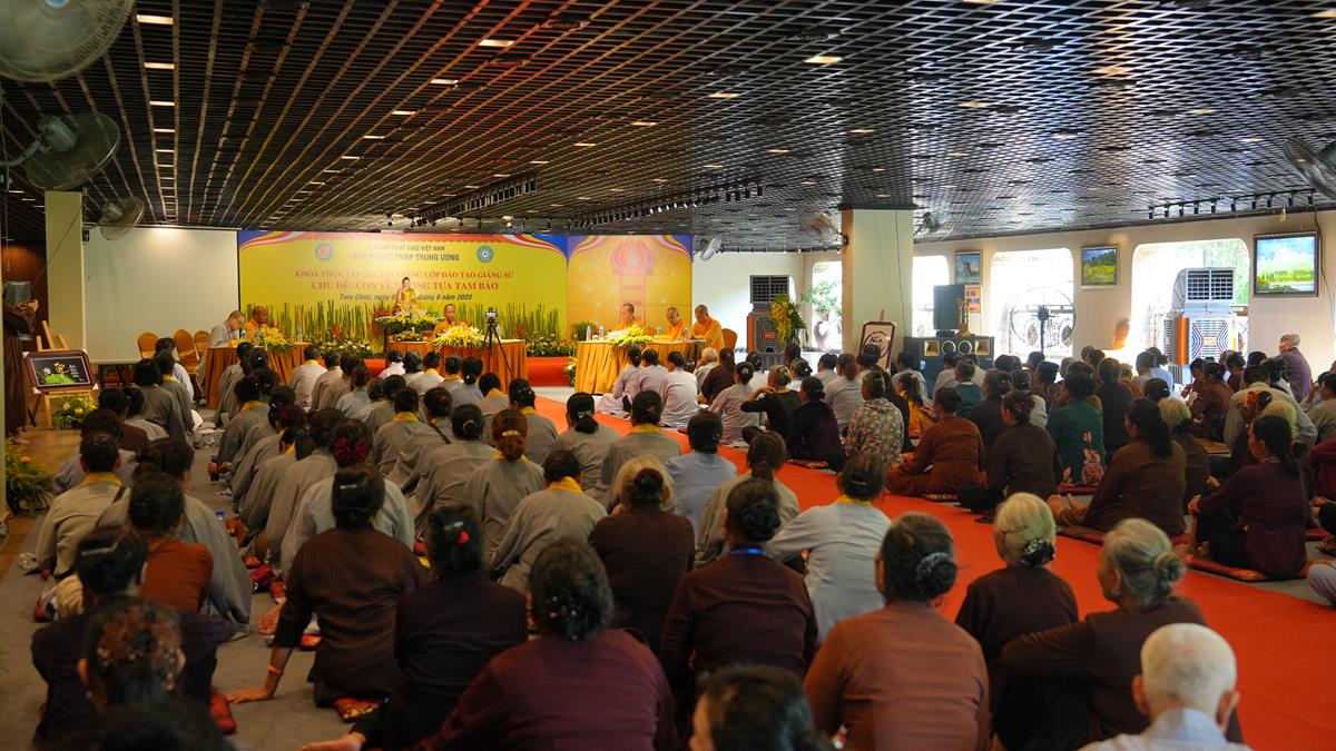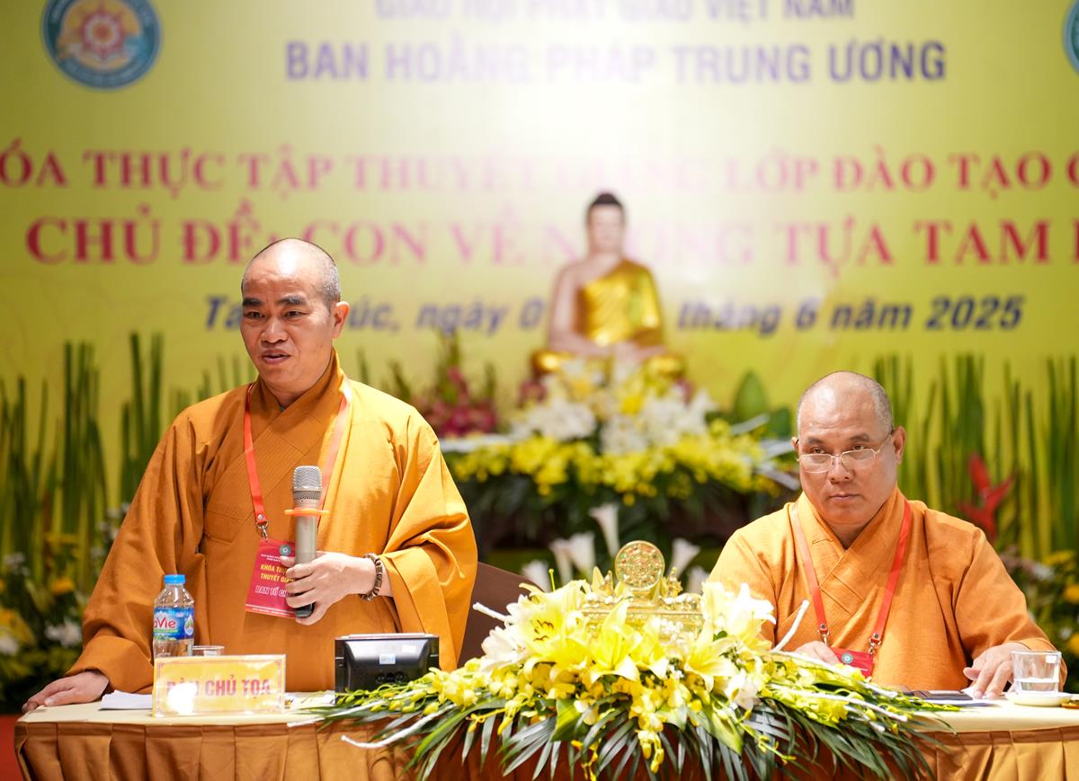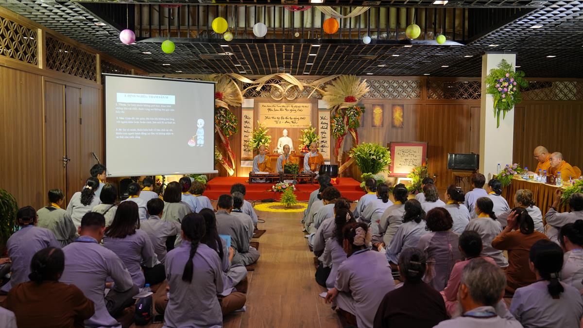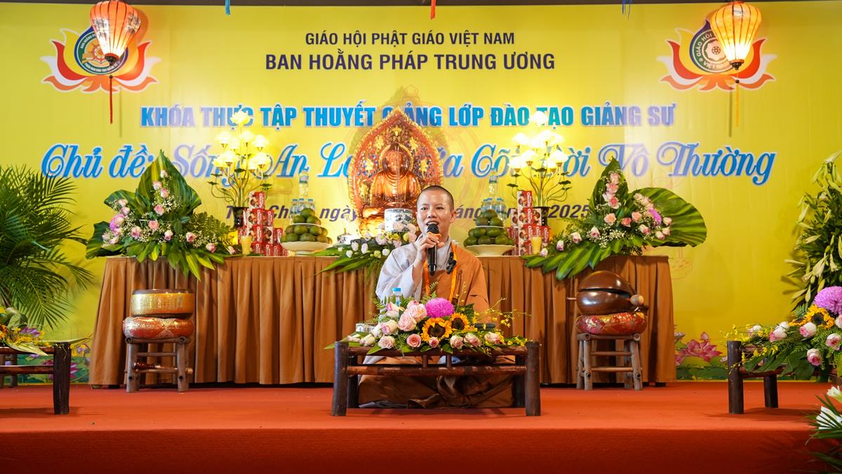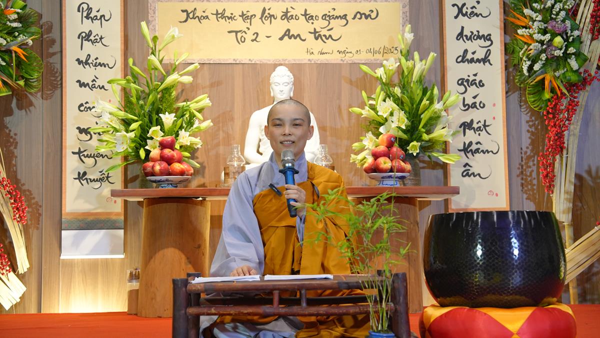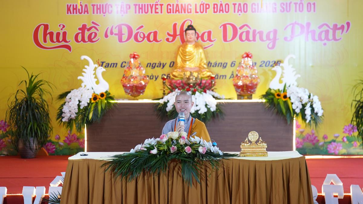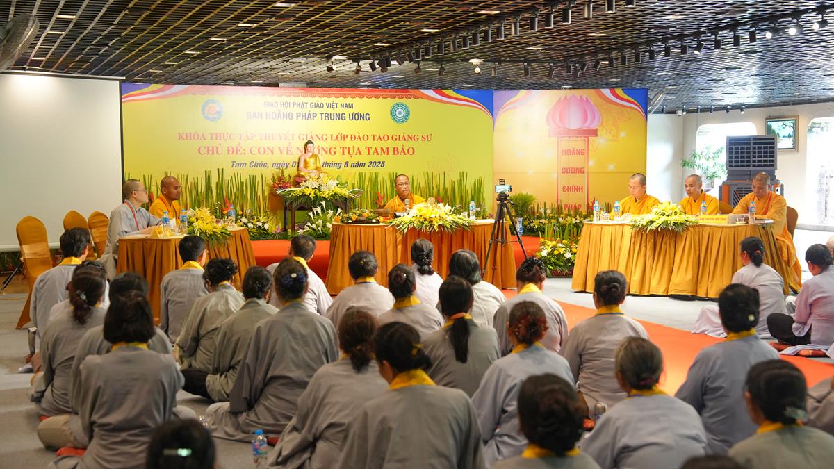 Buổi chiều, không khí tu học tại Chùa Tam Chúc tiếp tục lan toả trong sự trang nghiêm và tinh tấn. Những đóa sen trí tuệ lại nở rộ qua các thời thuyết giảng thực hành của chư vị giảng sinh khóa II lớp Đào tạo Giảng sư khu vực phía Bắc – mỗi bài pháp không chỉ là sự kết tinh của kiến thức, mà còn là thành quả của quá trình nội quán và hành trì.